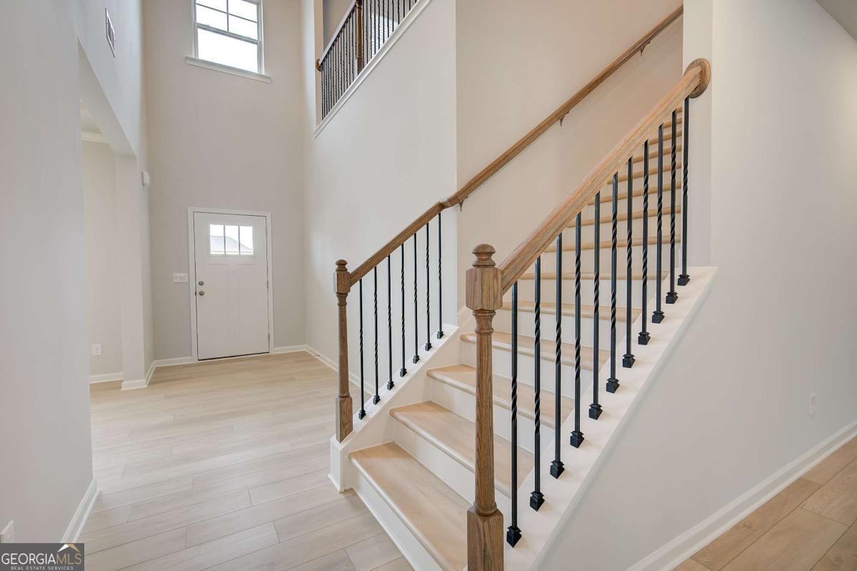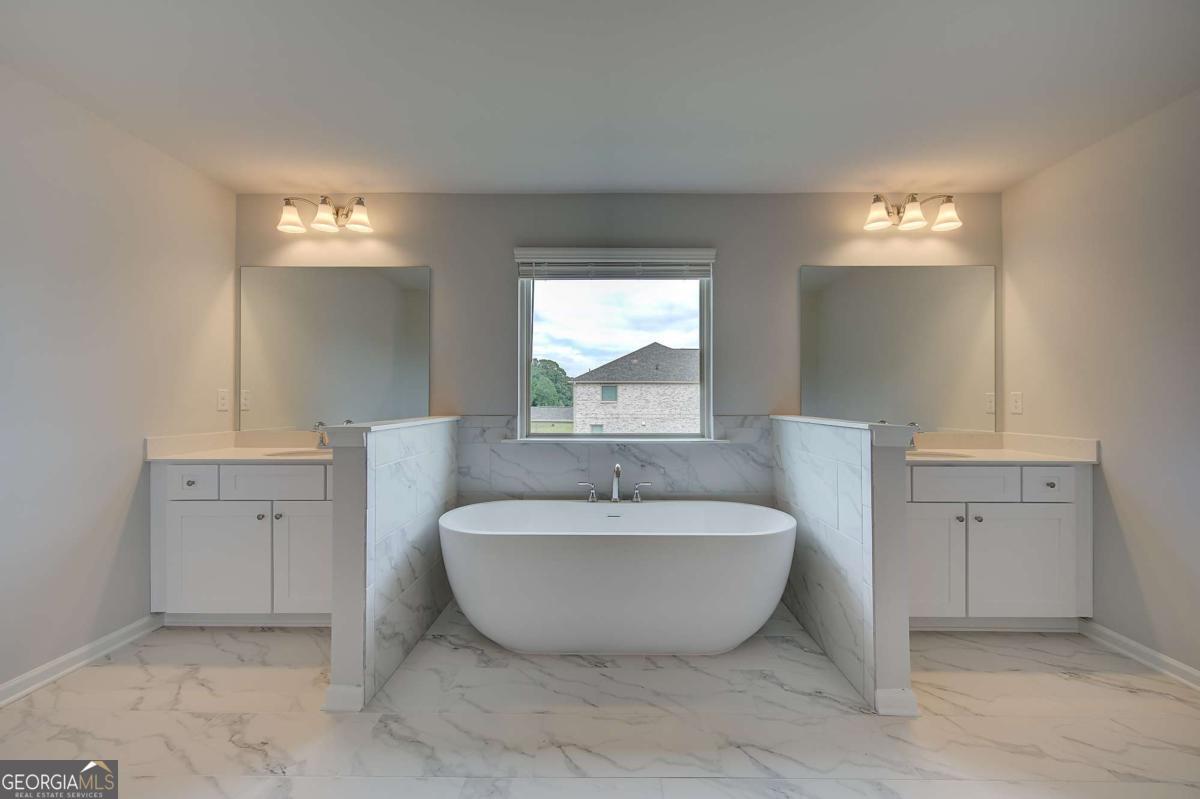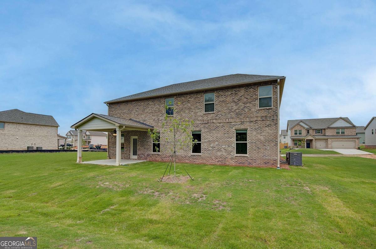 The Rosemary floor plan on Homesite 201 is an exceptional 5-bedroom, 4.5-bath residence that blends timeless architectural elegance with modern comfort. A welcoming covered front porch sets the tone as you enter into an open-concept layout designed for both everyday living and memorable entertaining. At its heart, the gourmet kitchen features an oversized island with seating, a walk-in pantry, and a butler's pantry that seamlessly connects to the formal dining room accented by dramatic coffered ceilings. The kitchen opens effortlessly into a bright breakfast area and expansive family room, creating a warm and cohesive living space. The first floor also includes a private guest suite with its own full bath, offering an ideal arrangement for visitors or multigenerational living. Upstairs, the luxurious primary suite provides a serene retreat complete with a spacious sitting area, dual walk-in closets, and a spa-inspired bathroom with double vanities, a soaking tub, a separate tiled shower, and generous linen storage. The upper level continues with a versatile loft suitable for a media room, office, or play area, along with well-appointed secondary bedrooms that offer direct access to bathrooms. This stunning home is set within Brighton-Locust Grove's only new home community offering estate-sized homesites paired with an unmatched amenity package. Brighton features thoughtfully designed single-family homes with open-concept layouts and creative spaces such as lofts, media rooms, and primary-suite sitting areas, providing flexibility for modern lifestyles. Residents enjoy a lagoon-style pool with a clubhouse, a disc golf course, playgrounds, a grilling station with fire pit, and scenic golf cart paths, creating a resort-like environment that caters to relaxation and recreation. Located just 3 miles from I-75, Brighton offers an ideal blend of convenience and charm, with quick access to downtown Atlanta or Warner Robins, and close proximity to Tanger Outlets and a variety of dining and boutique shopping options that define Locust Grove's unique appeal. Please note: If the buyer is represented by a broker/agent, DRB REQUIRES the buyer's broker/agent to be present during the initial meeting with DRB's sales personnel to ensure proper representation.