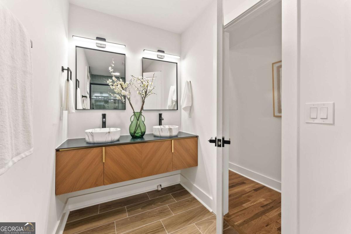 Welcome home to this beautifully fully remodeled 3 bedroom / 2 bathroom ranch in the heart of Decatur, where virtually everything is brand new and thoughtfully updated for modern living. A charming covered front porch offers a warm welcome and sets the tone for what awaits inside. Step into the open-concept living spaces, highlighted by hardwood floors, accent walls, and a fireside family room that flows seamlessly into the dining area-perfect for everyday living and entertaining. The brand new kitchen is the heart of the home, featuring crisp white cabinetry, stone countertops, a center island with seating, and a full stainless-steel appliance package, all designed with both style and functionality in mind. The primary suite is a relaxing retreat with vaulted ceilings and a spa-like ensuite bathroom showcasing double vanities and a sleek glass-enclosed shower. Two generously sized secondary bedrooms share a beautifully renovated full bathroom in the hall. Outdoor living is just as inviting with a spacious rear deck overlooking the fully fenced backyard greenspace, ideal for gatherings, pets, or quiet evenings at home. Additional upgrades include a new roof, new gutters, new driveway, new electrical system and panel, new water lines, new hot water tank, and a new gas connection for the HVAC system, offering peace of mind for years to come. A large crawl space provides excellent storage options. This move-in-ready Decatur gem blends timeless charm with modern upgrades-don't miss the opportunity to make it yours.