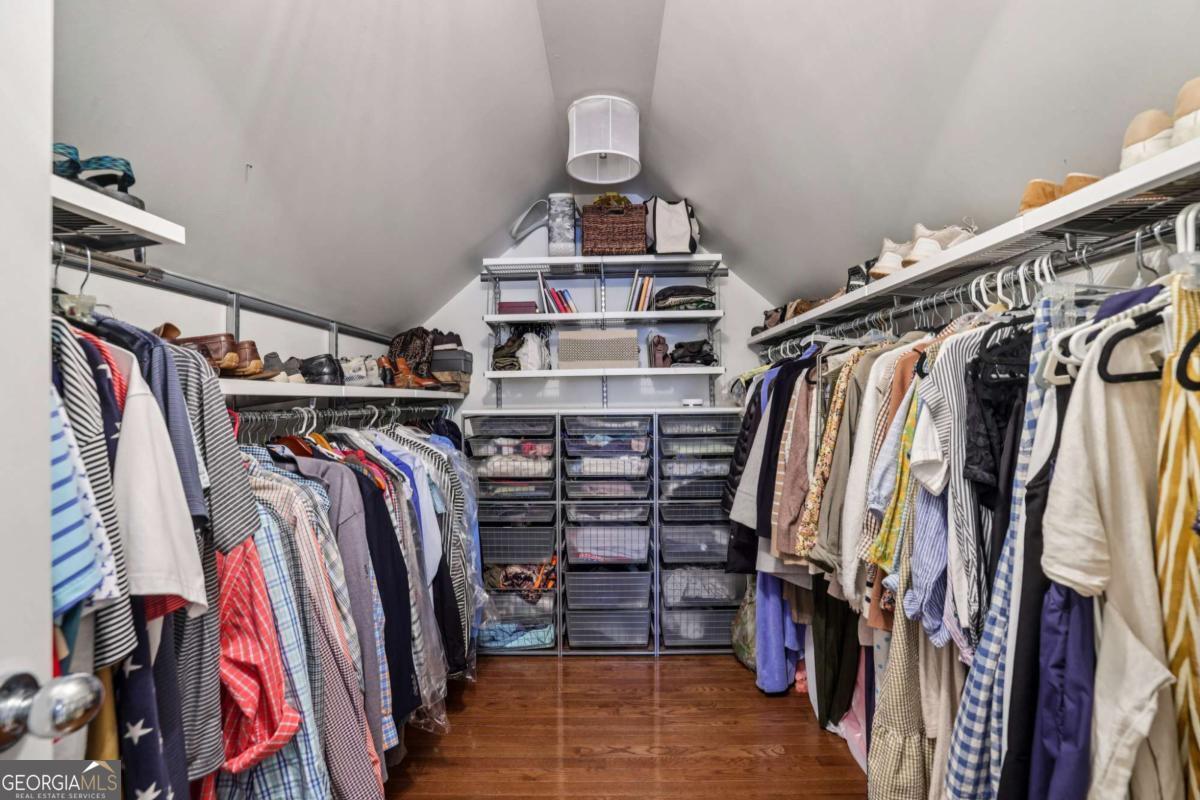 - Interior FeaturesBeamed Ceilings, Bookcases, Double Vanity, High Ceilings, Vaulted Ceiling(s), Walk-In Closet(s)