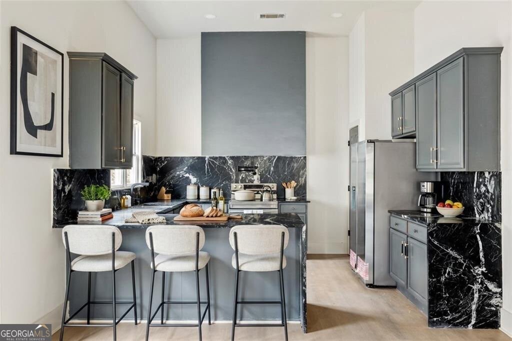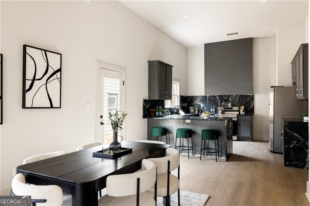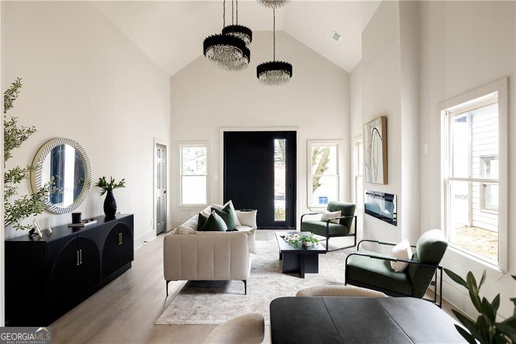 Scale changes everything. The ceilings rise, the rooms expand, and suddenly a classic home feels bold, architectural, and entirely reimagined. A front door that makes a statement usually tells you something about the home behind it. In this case, it hints at a space that feels deliberate, expansive, and thoughtfully put together from the moment you step inside. The first impression is the volume of the main living space. Vaulted ceilings and custom lighting that serves as a centerpiece rise overhead and immediately change the scale of the room, giving the central living area a sense of openness that feels both comfortable and impressive at the same time. Hardwood floors run throughout the home, grounding the space with warmth and continuity. The living room anchors the front portion of the home with generous proportions. Large windows line the walls, bringing in natural brightness throughout the day. Just beyond the living room, the dining area sits comfortably between the living space and the kitchen, creating a layout that supports everyday living as easily as it does entertaining. The connection between these spaces feels natural and intuitive, allowing conversation and activity to move easily throughout the main portion of the home. The kitchen is positioned to remain connected to the main living areas while still having its own defined footprint. Dark cabinetry pairs with striking stone surfaces that wrap the counters and backsplash, creating a bold visual moment that contrasts beautifully against the lighter tones throughout the home. A large peninsula island with seating becomes the natural place for morning coffee, casual meals, or gathering with guests while meals are being prepared. The bedroom layout is thoughtfully arranged at the other side of the home, offering separation from the main living areas while still maintaining an easy sense of accessibility. The primary suite stands apart as one of the most impressive spaces in the home. Vaulted ceilings continue here, reinforcing the sense of scale while giving the room a calm and private atmosphere. The bedroom itself is notably large and includes a dedicated sitting area that can easily function as a reading space, workspace, or quiet retreat within the suite itself. Dual walk in closets add practical storage while the primary bathroom delivers a true spa like environment, complete with a freestanding soaking tub, oversized glass enclosed shower, and a dual vanity with ample counter space. Each secondary bedroom offers good space and comfort, making them flexible for guests, home offices, or additional living needs. Throughout the home, the layout reflects a balance between openness and structure. Rooms feel connected without sacrificing definition, creating a floorplan that works well for everyone The location adds another layer of appeal. Positioned a short distance from the spur trail that connects directly to the Southside BeltLine Trail, outdoor recreation and some of Atlanta's most exciting redevelopment energy are nearby. Grant Park and the Chosewood Park neighborhood are also close by, placing restaurants, green space, and neighborhood destinations within easy reach while still allowing this home to feel tucked into its own residential setting. 1056 Lester Avenue offers the kind of scale, layout, and finish level that buyers consistently look for but do not always find in this part of the city. It is a home that feels intentional, well designed, and ready for the next chapter the moment you walk through the door.