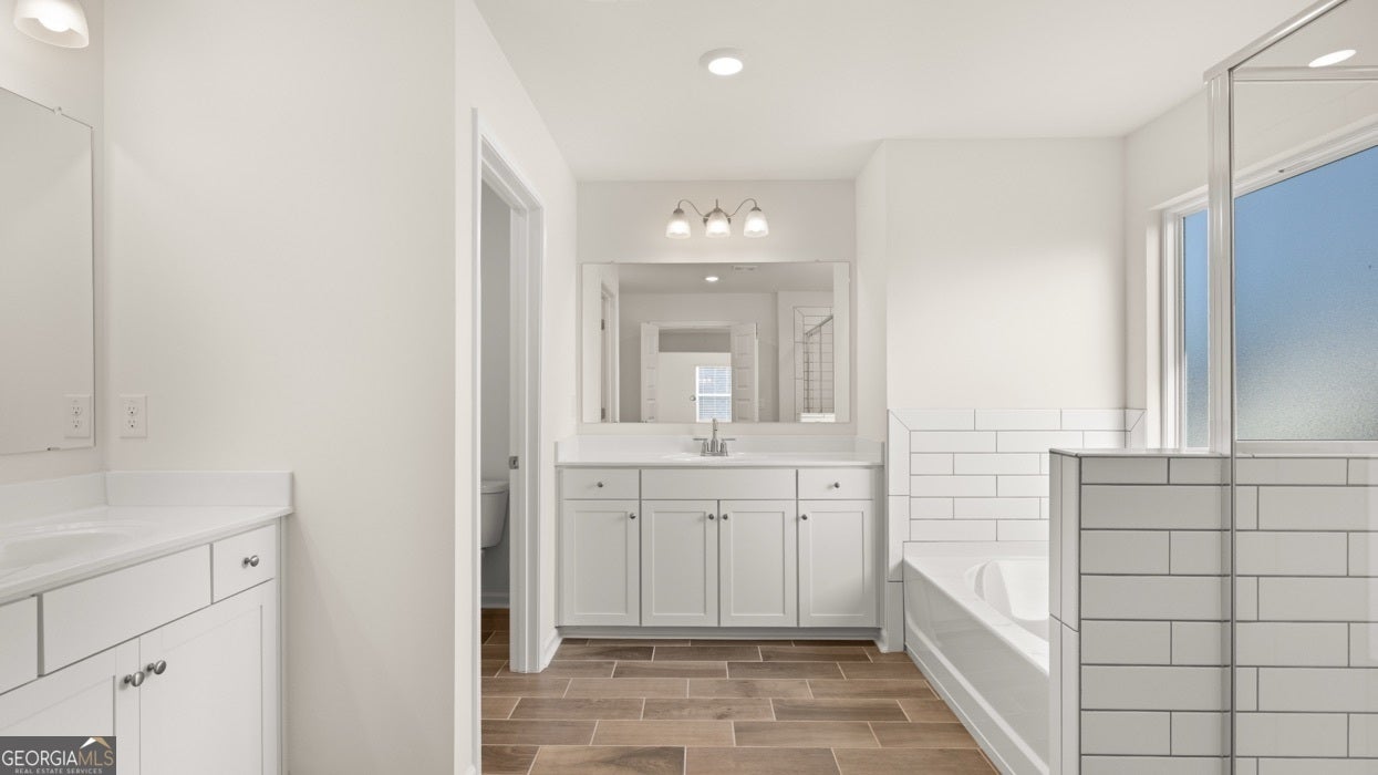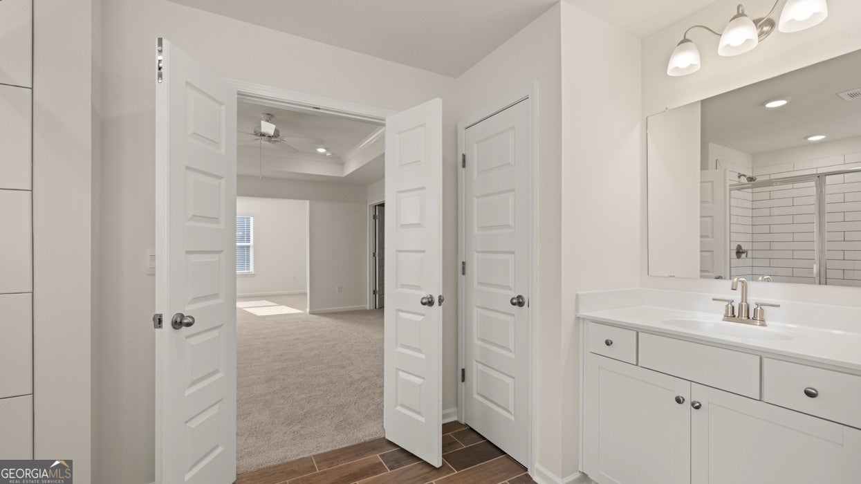 - Interior FeaturesDouble Vanity, High Ceilings, Pulldown Attic Stairs, Separate Shower, Soaking Tub, Split Foyer, Tile Bath, Tray Ceiling(s), Two Story Foyer, Walk-In Closet(s)