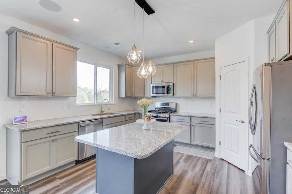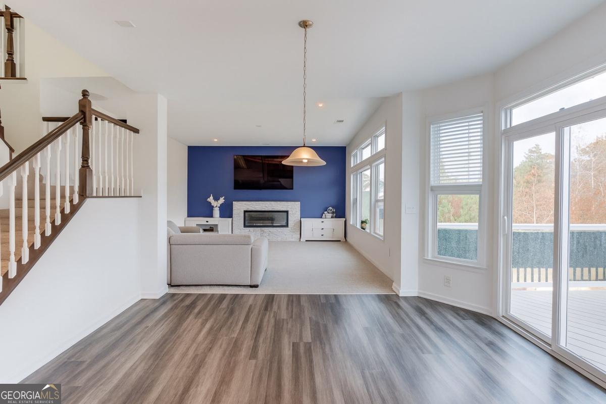 CLOSING COST OFFERED! Primary suite includes a separate sitting area with great lighting, two walk-in closets, an electric fireplace, and double vanities. This home offers a fenced in flat backyard & a basement with big windows, exterior entry, a full finished bathroom, and an extra 1,296 sq ft with electricity in place-ready for future customization. The main floor offers a full laundry room with a closet inside & each bedroom in the home includes a spacious walk-in closet. Neighborhood is minutes from Downtown Sugar Hill with quick access to parks, restaurants, and local entertainment - Do not miss it!