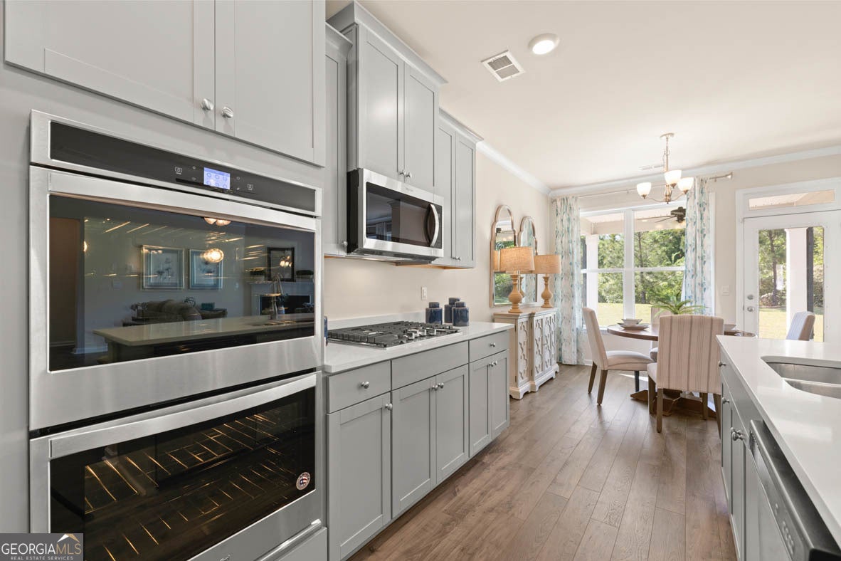 - AppliancesCooktop, Dishwasher, Gas Water Heater, Microwave, Stainless Steel Appliance(s), Oven (Wall)