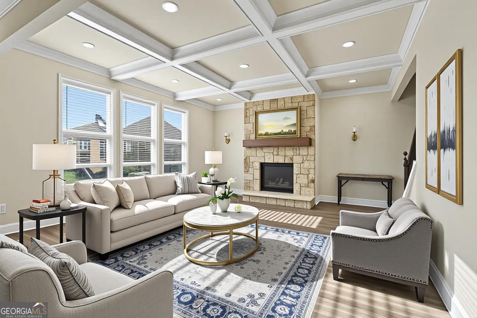 Welcome to refined living in this stunning 4-bedroom, 2.5-bath residence built in 2022, where thoughtful design and upscale finishes create an exceptional living experience. Step inside to an expansive open-concept layout anchored by a chef-inspired kitchen featuring a large center island, granite countertops, gas range, and newer stainless appliances. Designed for both entertaining and everyday living, the kitchen flows seamlessly into the spacious family room highlighted by a striking coffered ceiling and abundant natural light. A dedicated study or office on the main level provides the perfect work-from-home space or private retreat for guests. Upstairs, you'll find three generously sized secondary bedrooms along with a luxurious primary suite designed to impress. The spa-like primary bath features an oversized double shower and an immense walk-in closet that truly sets this home apart. Outdoor living is just as impressive. Enjoy evenings on the screened-in back porch complete with its own fireplace - a true extension of the home's living space. The extended patio overlooks a fully fenced backyard, offering privacy and room to entertain. An in-ground sprinkler system services the front, back, and side yards, ensuring beautifully maintained landscaping year-round. With nearly 3,000 square feet of elevated design, exceptional outdoor features, and modern construction, this home perfectly blends comfort, style, and sophistication.