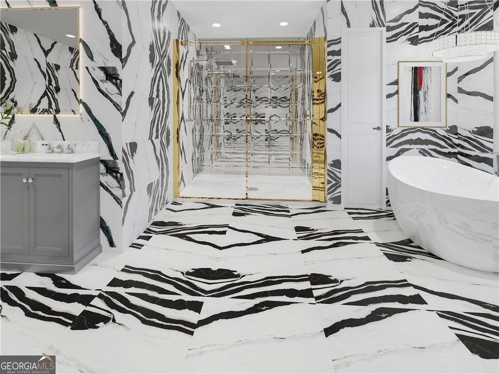 - Interior FeaturesDouble Vanity, High Ceilings, Separate Shower, Soaking Tub, Tile Bath, Two Story Foyer, Walk-In Closet(s)