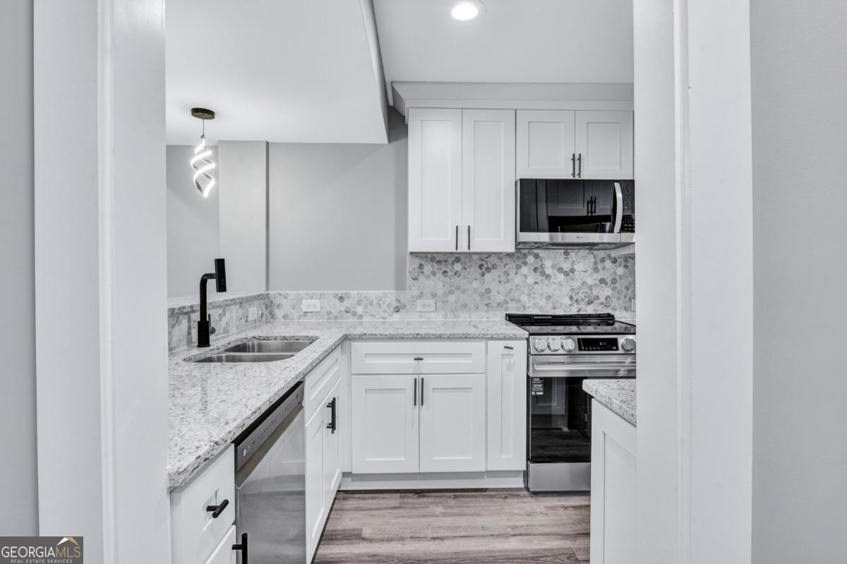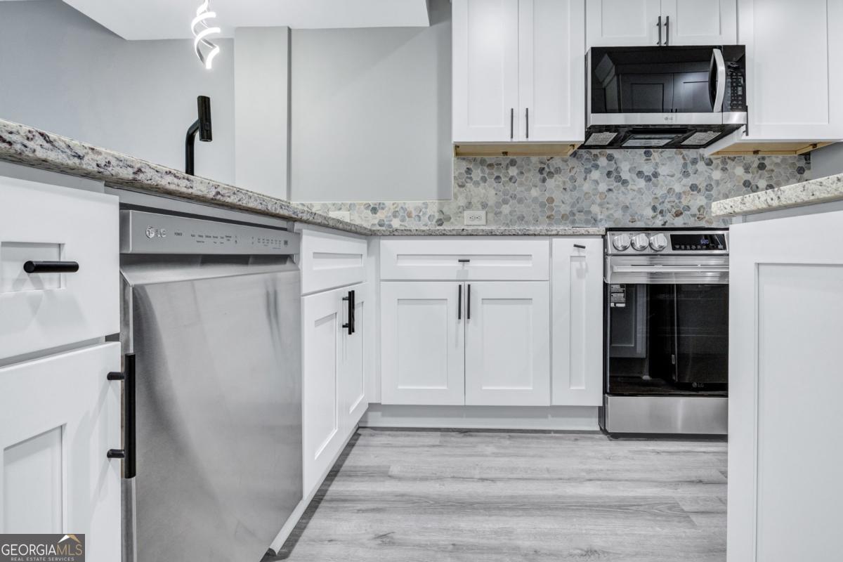 Prime Location. Modern Design. Truly Move-In Ready. Beautifully renovated 2-bedroom, 2-bath home in the heart of East Point, just minutes from Hartsfield-Jackson Airport, Downtown Atlanta, major interstates, parks, and Tri-Cities High School. Step inside to a bright, open-concept layout that flows seamlessly into a stylish kitchen featuring granite countertops, white shaker-style cabinetry, and brand-new LG stainless steel appliances. Real hardwood stairs and durable luxury vinyl flooring add warmth and sophistication throughout. French doors lead to a private patio, perfect for morning coffee, relaxing evenings, or entertaining guests. Major upgrades provide peace of mind, including a brand-new HVAC system and water heater. Modern finishes, smart layout, and an unbeatable location. This East Point gem won't last long. Schedule your showing today.