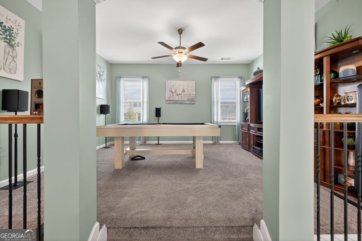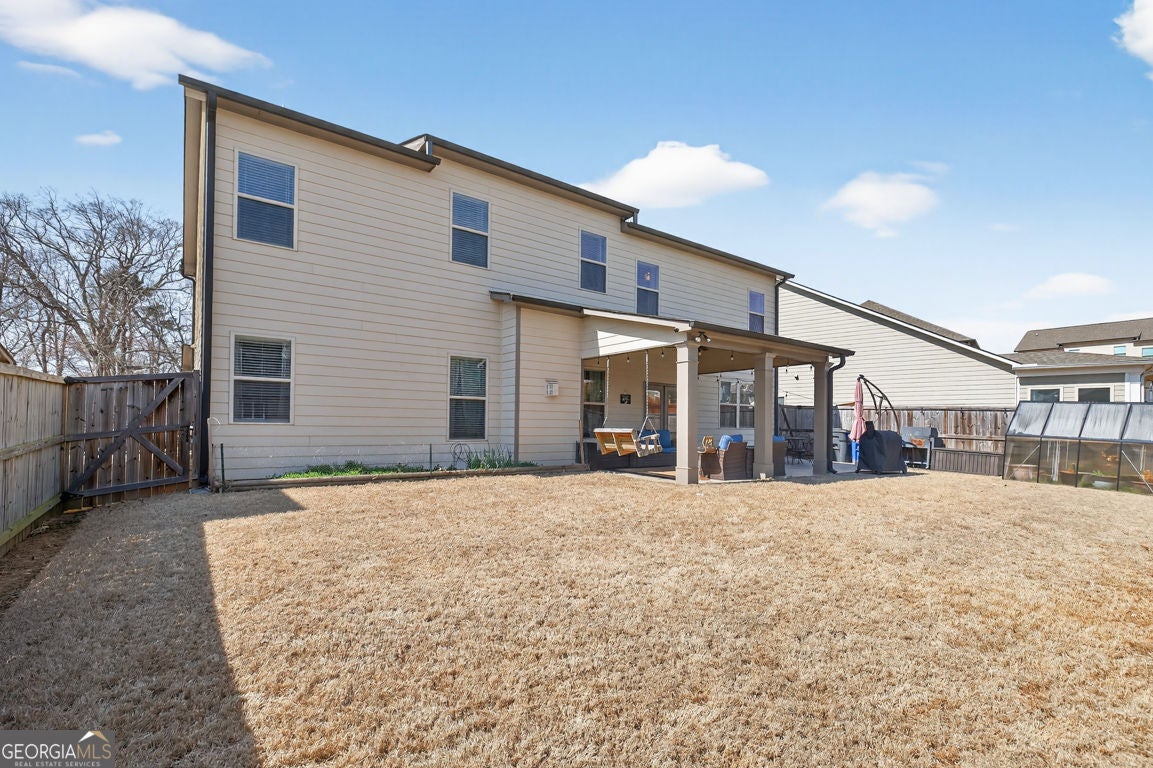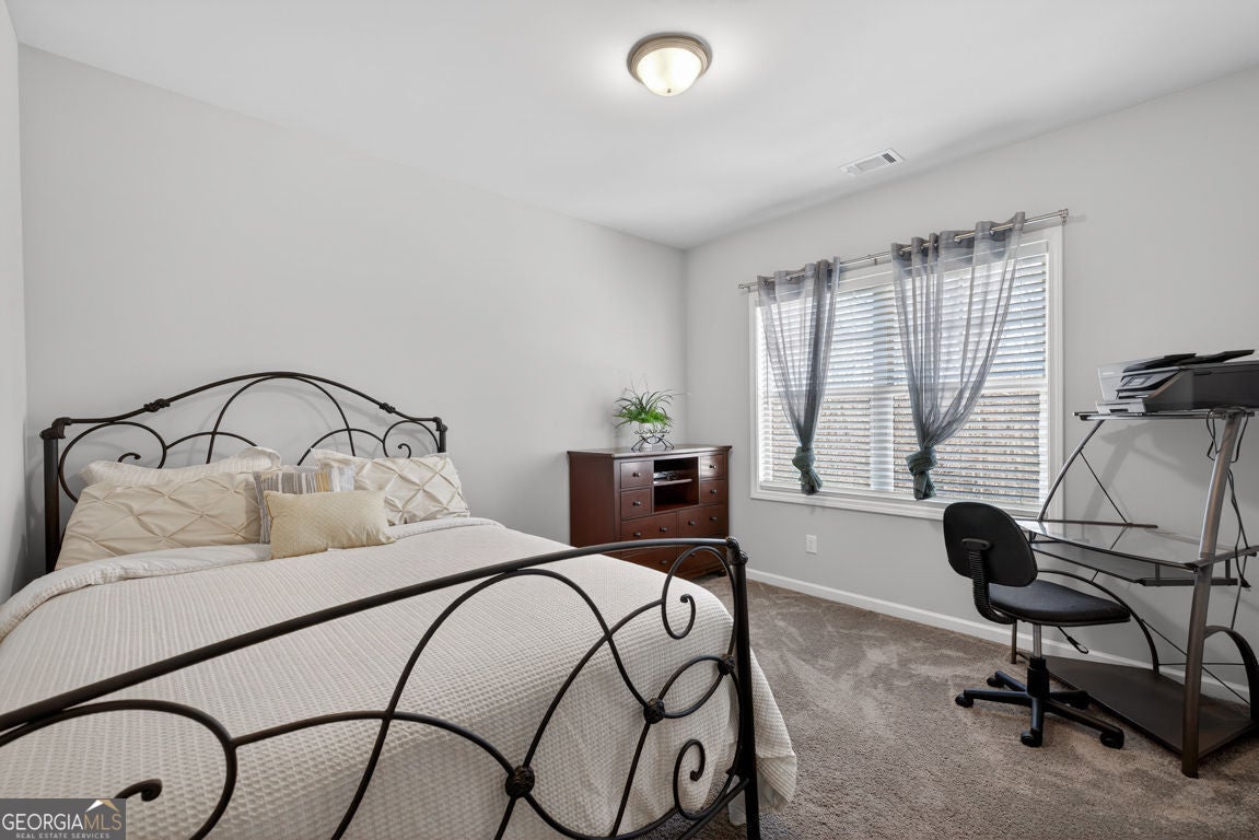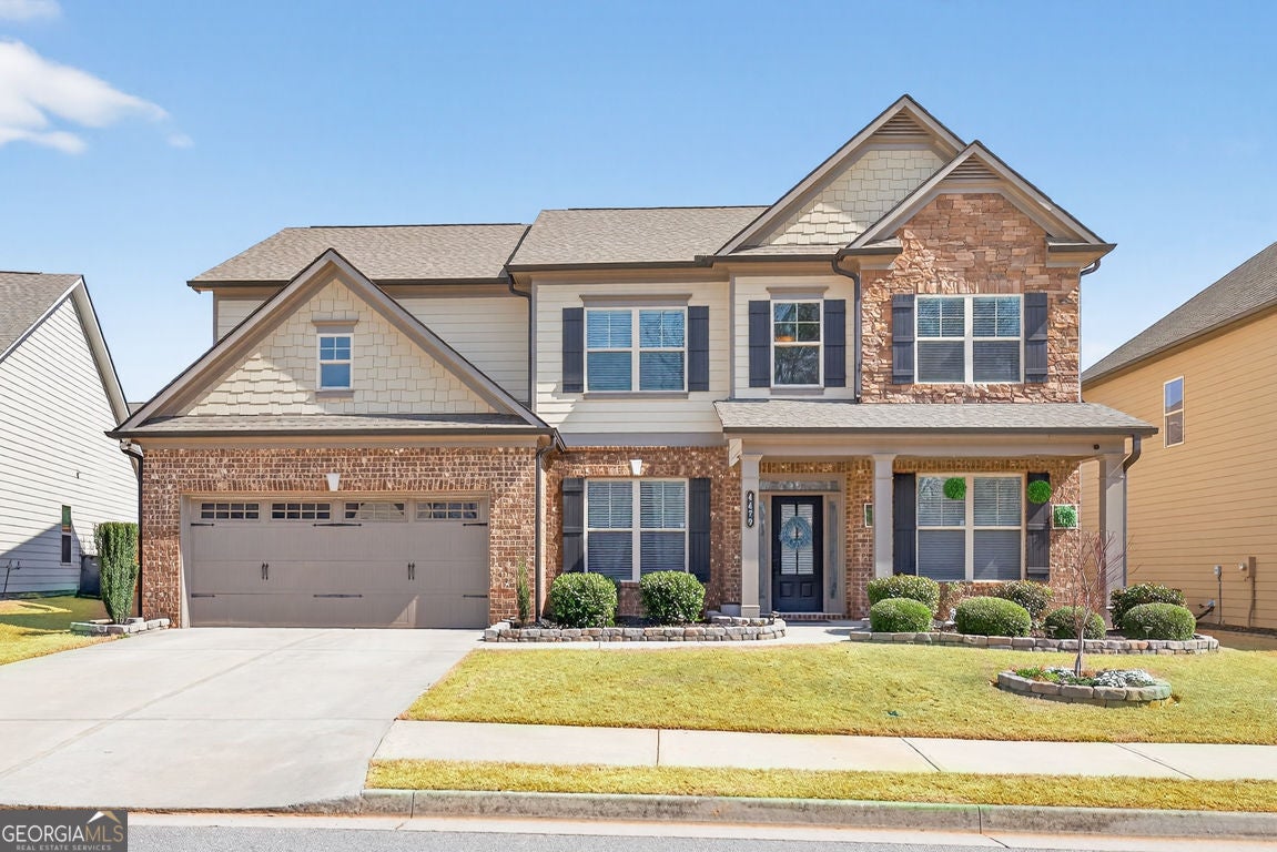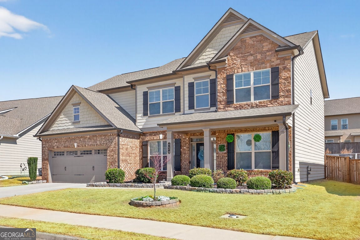 One of the largest floor plans in Mundy Mill, the Brunswick offers many options for the busy expansive family. A convenient guest suite on the main floor perfect for multi generational living. Office and formal dining room featuring a butlers pant and The heart of the home features an open-concept kitchen with an oversized island with bar seating and eat in kitchen perfect for casual meals or gatherings with family and friends. Open to the Great room equipped with surround sound, creating the perfect space for entertaining or relaxing. Step outside to enjoy the covered private fenced backyard offering comfort and privacy Upstairs, you'll find an oversized peaceful primary suite retreat, along with 3 additional spacious bedrooms, each with ample closet space and a Open Media Room providing additional flexible living space ideal for movie nights, gaming or a a playroom.