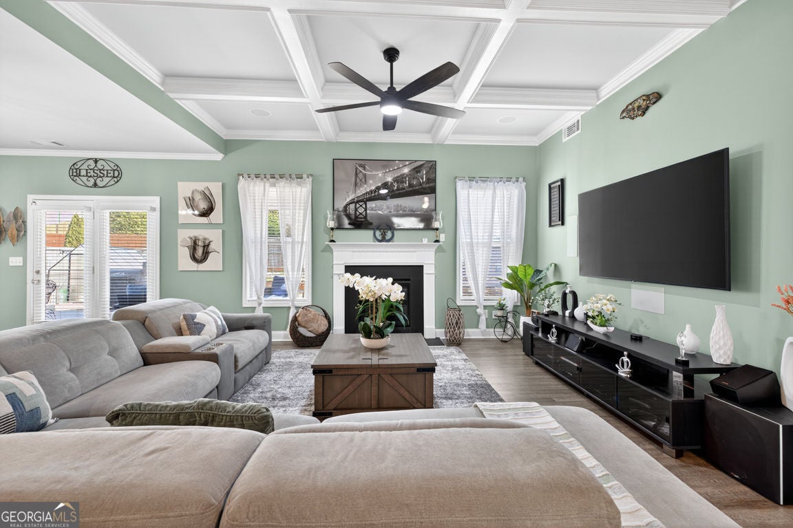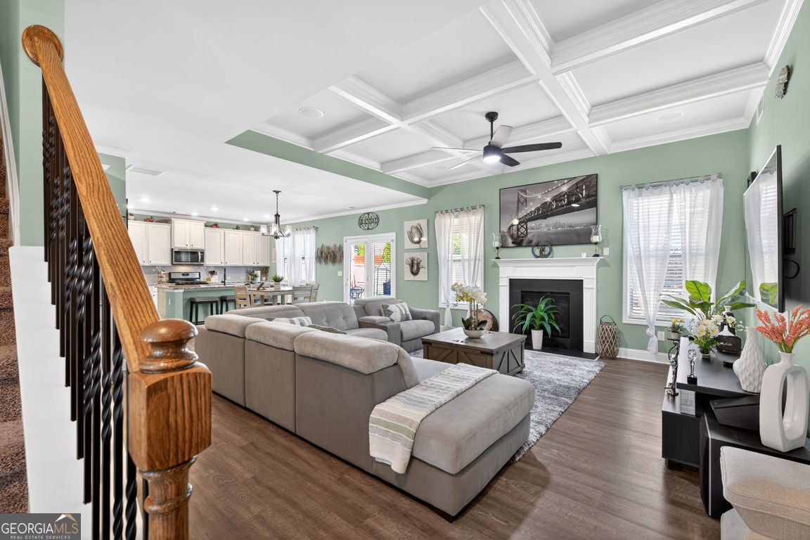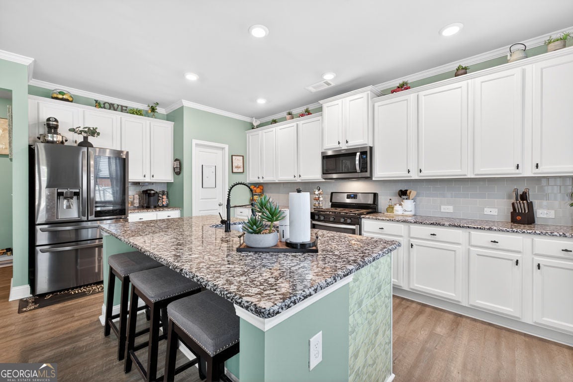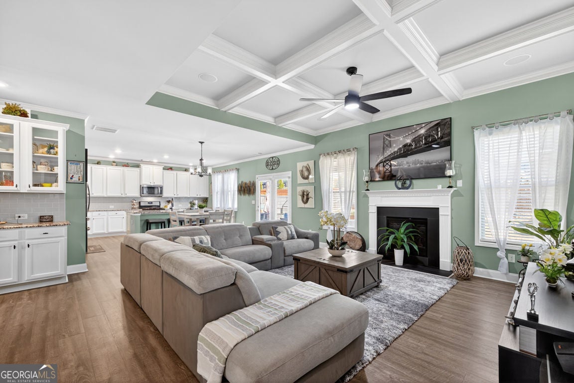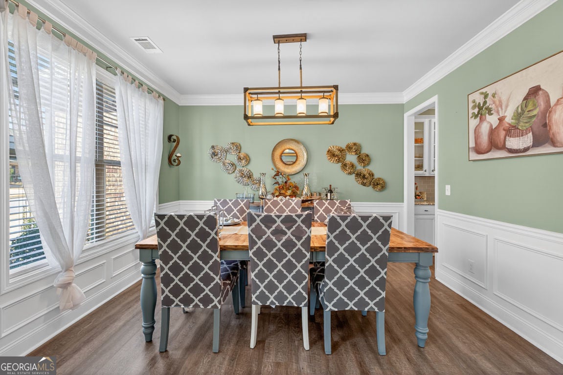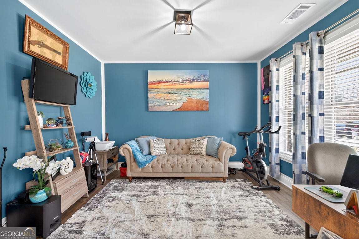 One of the largest floor plans in Mundy Mill, the Brunswick offers many options for the busy expansive family. A convenient guest suite on the main floor perfect for multi generational living. Office and formal dining room featuring a butlers pant and The heart of the home features an open-concept kitchen with an oversized island with bar seating and eat in kitchen perfect for casual meals or gatherings with family and friends. Open to the Great room equipped with surround sound, creating the perfect space for entertaining or relaxing. Step outside to enjoy the covered private fenced backyard offering comfort and privacy Upstairs, you'll find an oversized peaceful primary suite retreat, along with 3 additional spacious bedrooms, each with ample closet space and a Open Media Room providing additional flexible living space ideal for movie nights, gaming or a a playroom.