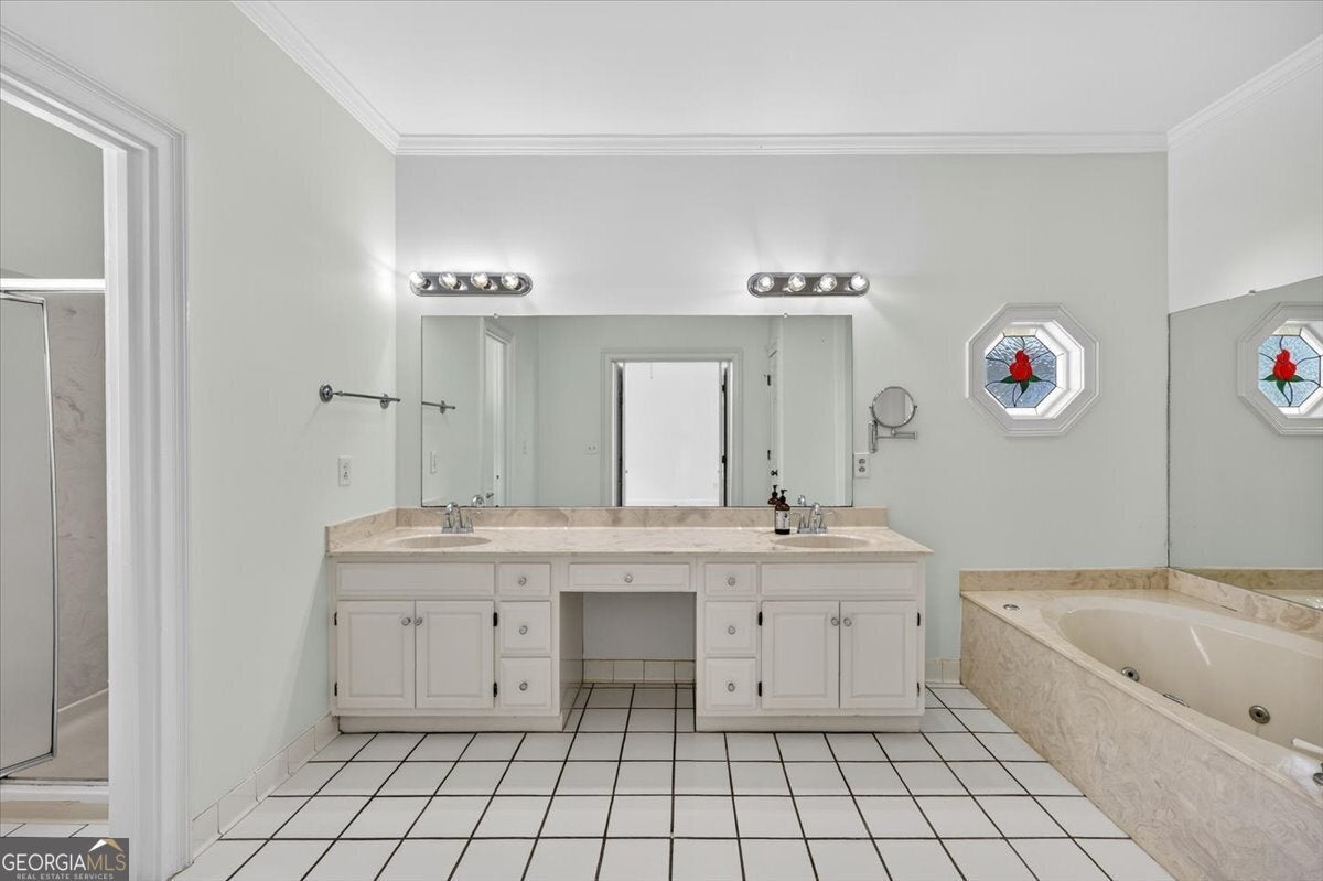 - Interior FeaturesAttic Expandable, Bookcases, Double Vanity, Master On Main Level, Separate Shower, Split Bedroom Plan, Tile Bath, Two Story Foyer, Walk-In Closet(s), Whirlpool Bath