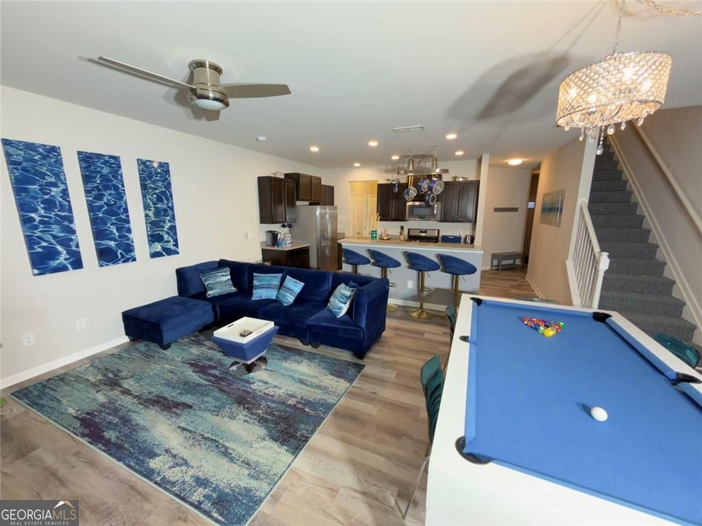 Move-in ready - literally! This beautifully maintained 3-bedroom, 2.5-bath townhome in Woodstock is offered FULLY FURNISHED with a FULL PRICE OFFER, including a custom pool table with dining table conversion (valued at over $3,000) and a 4-person hot tub. Just bring your boxes and start living! The thoughtfully designed layout offers comfortable, functional living spaces perfect for both relaxing and entertaining. All bedrooms come fully furnished and include wall-mounted smart TVs, with five mounted TVs included throughout the home. Conveniently located just minutes from shopping, dining, and entertainment, with easy access to I-575 and I-75, this home provides the perfect blend of comfort, convenience, and value. This property is also a top-rated Airbnb in Woodstock, offering excellent potential for investors or buyers seeking a turnkey opportunity. Additional features include a 240-volt receptacle in the garage for electric vehicle charging. This turnkey property truly checks all the boxes - schedule your showing today!