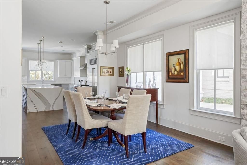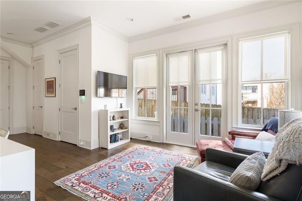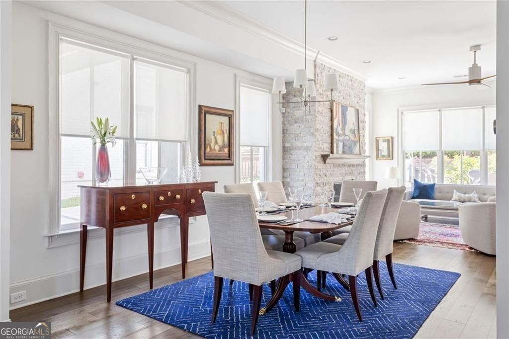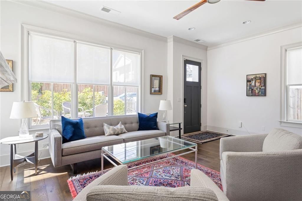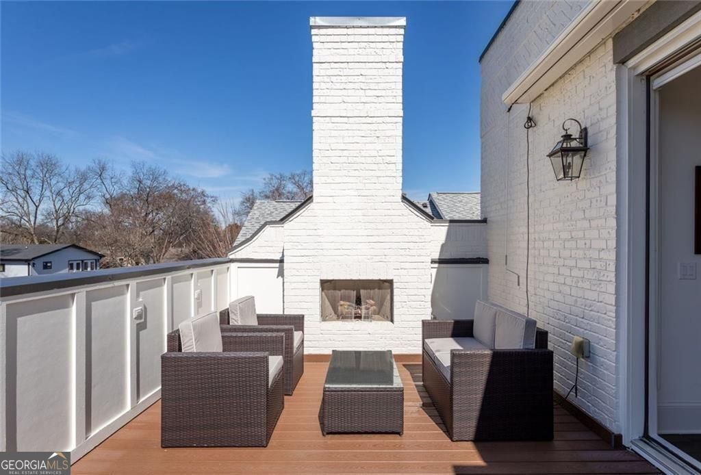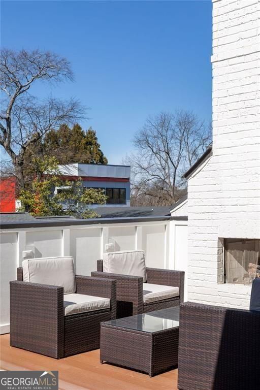 Set in the heart of Old Fourth Ward, this impeccably maintained newer construction home delivers elevated city living with every modern convenience thoughtfully in place. Just steps from the Atlanta BeltLine and moments from the energy of Inman Park's dining and nightlife scene, the lifestyle here is as walkable as it is refined. Spanning three stories and complete with an elevator, the home is designed for effortless living. Front and back patios extend the living space outdoors, while a low maintenance turfed and fenced yard makes everyday dog outings refreshingly easy. A two car garage and pristine condition throughout underscore the care and intention behind the home. The main level is flooded with natural light and anchored by a gas fireplace, creating a warm yet elevated setting for entertaining. A dedicated dining area flows seamlessly into an expansive chef's kitchen featuring a grand island, abundant storage, walk-in pantry, and top of the line appliances including Miele dishwasher, 6 burner Wolf range and Sub-zero refrigerator. A cozy keeping room offers the perfect backdrop for slow mornings, quiet reading time, or an afternoon reset. The primary suite is a true retreat, oversized and thoughtfully appointed with its own fireplace, built-in bookshelves, a Juliet balcony, and a generous custom California closet system. The en suite bath completes the experience with spa-like ease. A secondary bedroom on this level offers a private and well separated space with its own en suite bath, ideal for guests or extended stays. The top level is where the home truly shines as an entertainer's dream. A spacious lounge with wet bar opens through panoramic doors, inviting the city inside and framing sweeping skyline views of Midtown Atlanta. The rooftop patio with almost 300 additional square feet sets the stage for unforgettable evenings, fire glowing as the city hums below. A third bedroom with en suite bath offers flexibility for a home office, gym, or long term guests. Outside your door, the neighborhood delivers. Walk to favorites like Ladybird Grove and Mess Hall, Rathbun Steak, Ponce City Market, Drybar Inman Park, Pure Barre, and bartaco, with endless dining, fitness, and everyday conveniences just moments away. This is intown living at its most elevated, connected, and effortless.