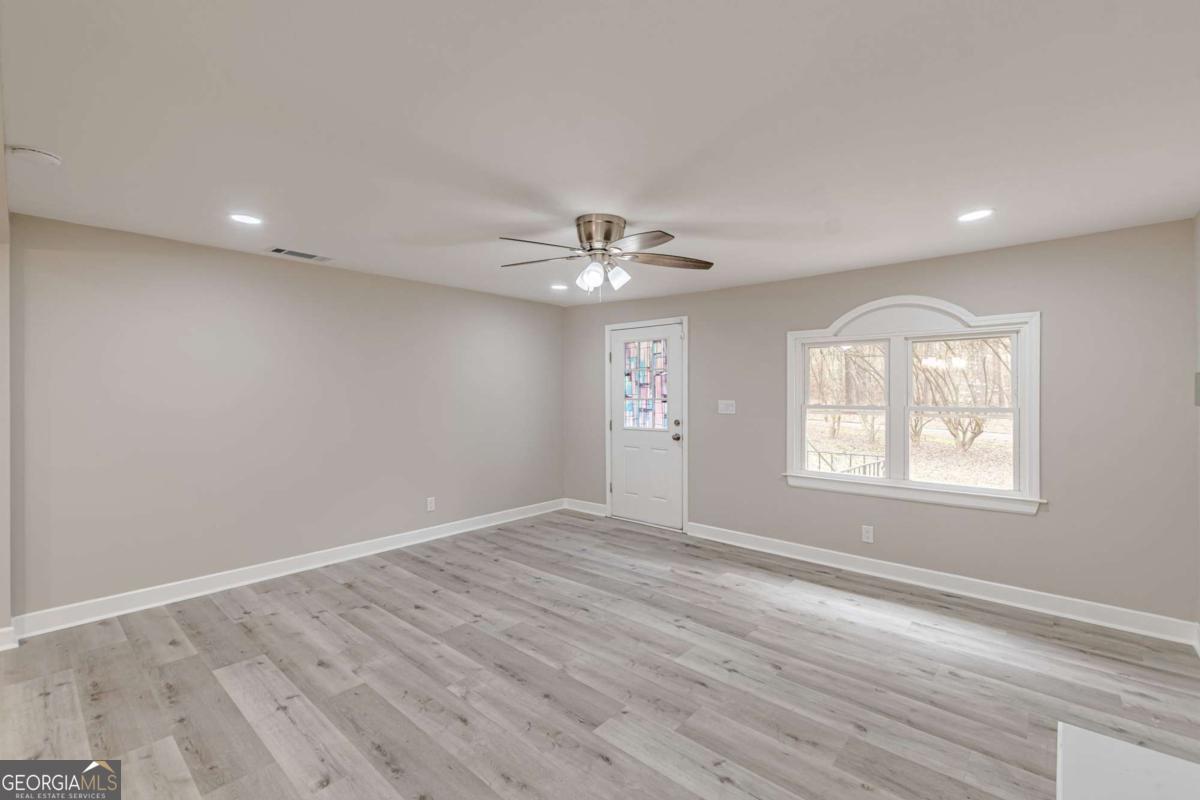 Completely Reimagined & Move-In Ready on a Private Acre in the Whitewater District. Welcome to a beautifully renovated retreat tucked away on a quiet private (County maintained) road in the sought-after Inman Elementary, Whitewater Middle, and Whitewater High school district. Situated on a full acre, this thoughtfully updated home blends modern comfort with functional design and room to breathe. Step inside to discover a new roof, fresh paint, new flooring, and plush new carpet throughout. The main living spaces have been opened up to create an airy, connected flow between the family room, dining area, and kitchen - perfect for both everyday living and effortless entertaining. The fully remodeled kitchen shines with updated finishes, improved functionality, and seamless sightlines into the heart of the home. Bathrooms have been beautifully redesigned with today's lifestyle in mind, offering clean, modern comfort. Natural light pours in, while outdoor access invites you onto the deck - ideal for morning coffee, weekend gatherings, or simply enjoying peaceful wooded views. The level yard offers endless possibilities for play, gardening, or future enhancements, and the outbuilding provides convenient storage for tools and lawn equipment. If you've been searching for privacy, land, and turnkey updates in one of Fayette County's most desirable school zones - this is it.