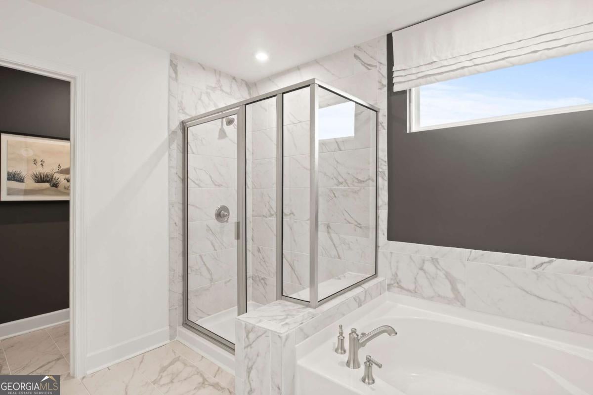 Welcome to Anderson Point Estates! This beautiful new construction home offers a thoughtfully designed layout with stylish upgrades throughout. The primary bathroom features a luxurious stand-alone soaking tub, creating a spa-like retreat. Entertain in the elegant dining room accented by a coffered ceiling, or relax in the gathering room beside a cozy fireplace. The home includes a complete appliance package and provides plenty of space to fit your lifestyle with an open loft and additional flex room. Situated on a large, private lot with a side-entry garage, this home offers both privacy and curb appeal-perfect for comfortable everyday living and entertaining alike. Conveniently situated just minutes from Downtown McDonough Square, Anderson Point offers easy access to premier recreational destinations such as the Georgia National Country Club and Golf Course, Tanger Outlets, Jackson Lake, Heritage Park, and more. Photos are representative of a similar, professionally staged floor plan.