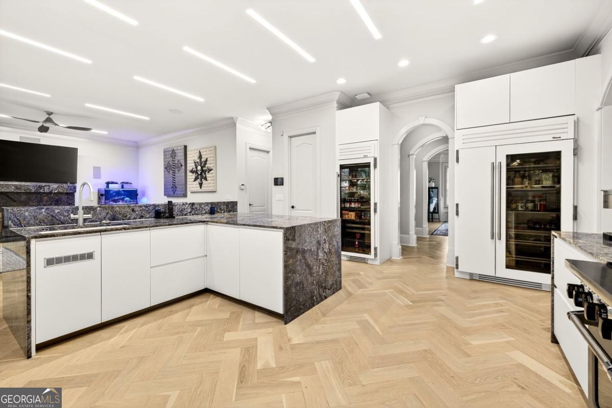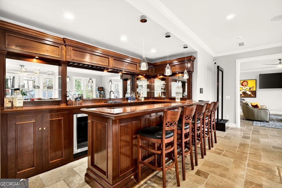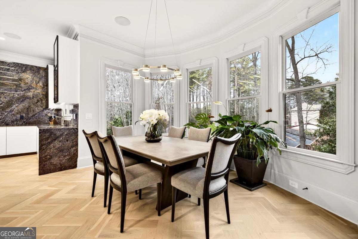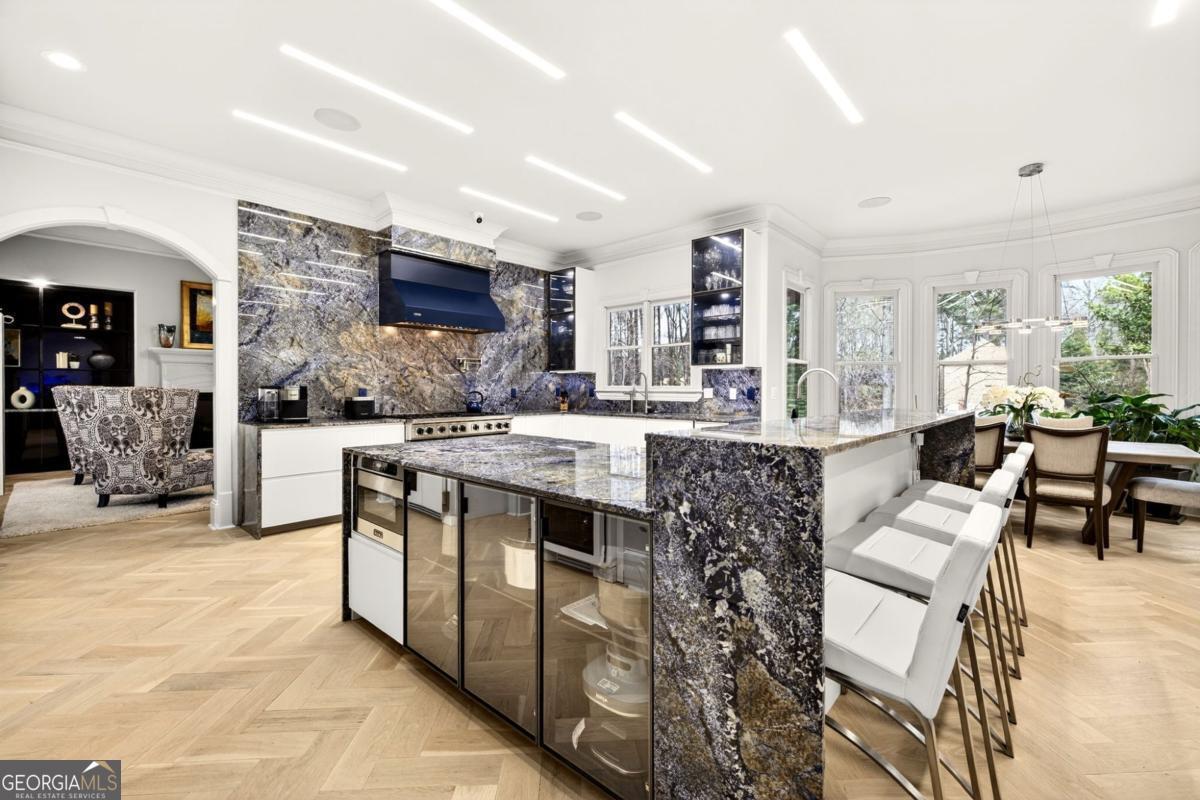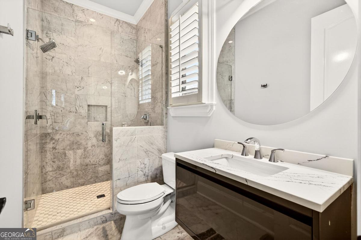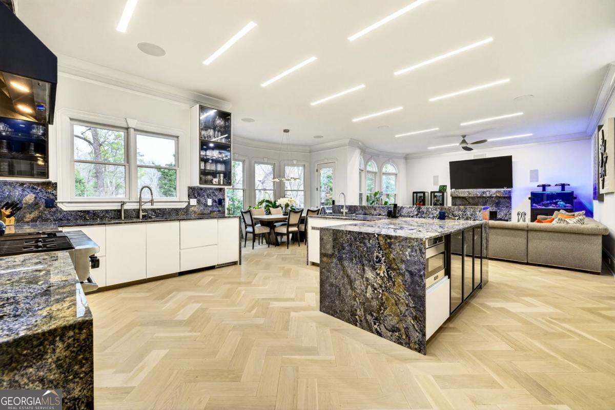 Stunning all-brick estate nestled in a prestigious enclave along the sought-after Briarcliff corridor, offering an exceptional intown location just minutes from Emory, Buckhead shopping and dining, and Downtown Atlanta, with nearby parks and access to a top-rated school district. This remarkable residence blends timeless architectural elegance with sophisticated modern living and includes a private elevator, whole-house generator, and comprehensive security system, delivering the highest level of comfort, convenience, and peace of mind. Designed for both grand entertaining and everyday living, the fully finished terrace level elevates the home's entertainment experience. It features two bedrooms and a half bath, a custom bar, media room, spacious living and game areas, and direct access to a screened porch, creating the perfect environment for unforgettable movie nights and gatherings. Outside, a gorgeous Gunite saltwater pool with attached spa offers a private resort-style oasis ideal for relaxing afternoons, sunset swims, or vibrant gatherings with family and friends. Upon entering, a dramatic two-story foyer welcomes you with white oak hardwood flooring that flows seamlessly throughout the home. The formal living room features custom built-in bookcases, an elegant fireplace, and serene tree-lined views. A separate private office provides an ideal workspace, while the formal dining room, complete with a butler's pantry, creates the perfect setting for sophisticated dinners and entertaining. At the heart of the home is a showstopping, recently renovated custom chef's kitchen, highlighted by breathtaking Blue Bahia marble countertops that create a bold and unforgettable focal point. Designed for culinary excellence and large-scale entertaining, the kitchen features professional Viking appliances, dual custom-fitted True refrigerators, a premium water filtration system, and an expansive island with seating for six. Two generous walk-in pantries provide exceptional storage and prep space, while the adjoining keeping room with a second fireplace offers a warm and inviting place for everyday gathering. The luxurious primary suite serves as a private retreat, complete with a marble fireplace, projector and wet bar, dual custom walk-in closets, and a spa-inspired bath showcasing dramatic Black Spider marble and dual showers for a truly indulgent experience. Spacious secondary bedrooms each feature en-suite baths and walk-in closets, ensuring exceptional comfort and privacy for family and guests. With its remarkable scale, extraordinary amenities, and beautifully designed living spaces, this one-of-a-kind estate offers a lifestyle of unparalleled luxury, where elegance, privacy, and entertainment come together in perfect harmony.