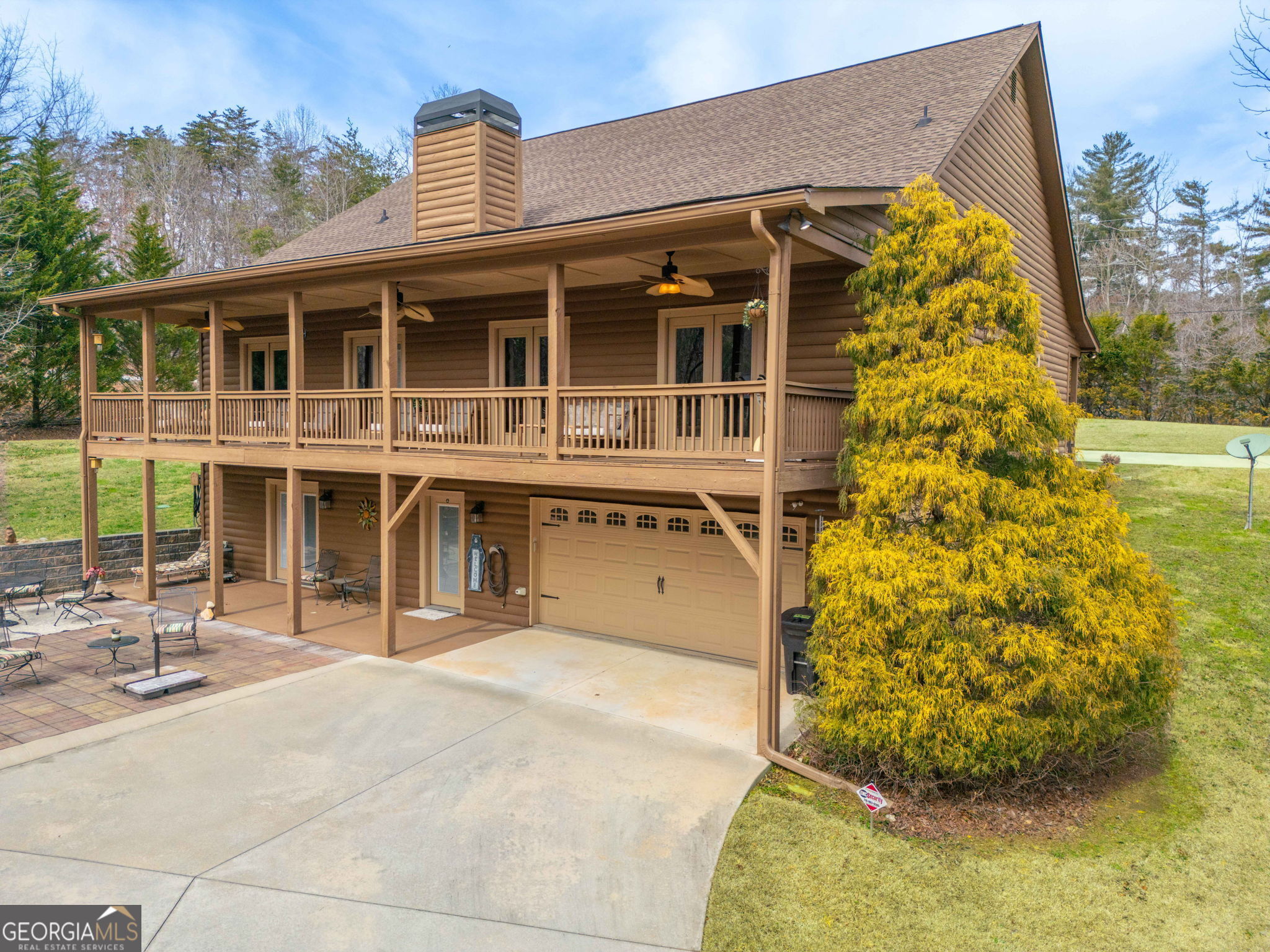 Double master bedrooms on the main level, custom-built log home, and stunning North Georgia mountain setting. This large, elegant custom-built log home is located in the beautiful North Georgia Mountains of Sautee Nacoochee and offers both privacy and convenience. Enjoy nearby hiking, fishing, wineries, festivals, and you're just minutes from dining, shopping, and medical facilities. The owners have meticulously maintained this home over the years with major recent upgrades including a new 4-ton heat pump with a 12-year transferable warranty and a new roof with a 50-year transferable warranty. The property offers incredible curb appeal with low-maintenance landscaping, a 28-head irrigation system, and an extra-wide circular driveway poured with 5000 PSI concrete. From the rear porch you can enjoy views of Mt. Yonah, while the backyard features a large paver patio with a fire pit, perfect for entertaining. Additional exterior features include a 16x20 storage building with insulated windows, architectural shingles, and a poured concrete slab, plus added pull-down attic storage. While the community provides private water, the owners installed their own private well producing 35 gallons per minute. A 500-gallon underground propane tank services the gas logs and a Generac 24k whole-home generator with transferable warranty. High-speed Trailwave internet is available, making this a great option for those who work from home. Inside, the home offers high-quality finishes while maintaining a warm cabin feel with modern touches. The main level features hardwood floors throughout, ceramic tile in the bathrooms, and a spacious kitchen with granite countertops, custom maple cabinetry, stainless steel appliances, and a large dining area. The family room showcases a masonry fireplace and vaulted tongue-and-groove ceilings. Two ensuite bedrooms on the main level each feature dual vanities with granite countertops, jetted tubs, and separate walk-in showers. An extra-wide staircase (with recently installed chair lift) leads to the terrace level, which includes a large living area and a third oversized ensuite bedroom and bathroom. This space also offers potential to add a small kitchen, creating a great guest or in-law suite. There are simply too many upgrades and details to list. Some furnishings may be negotiable. Shown by appointment only. The development currently does not allow short-term rentals, though policies may change in the future.