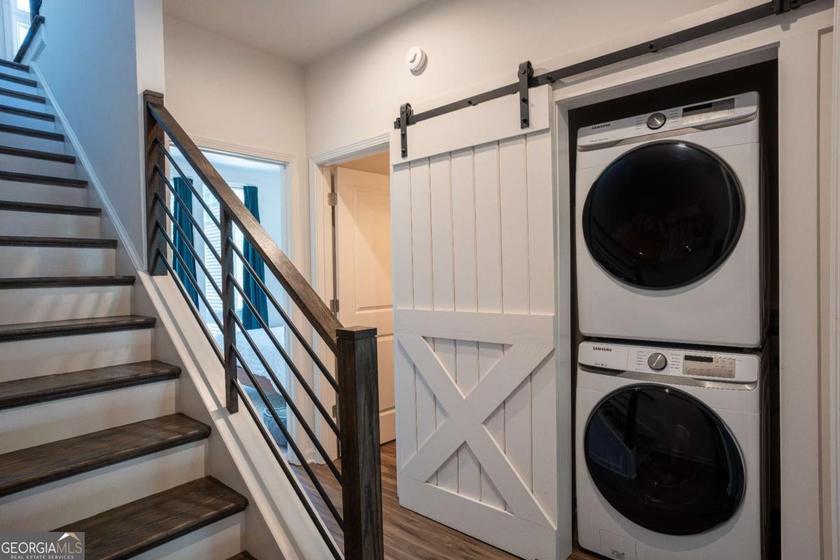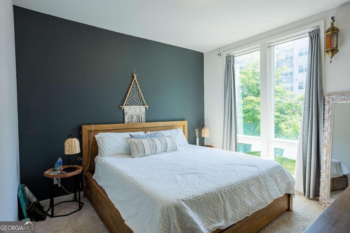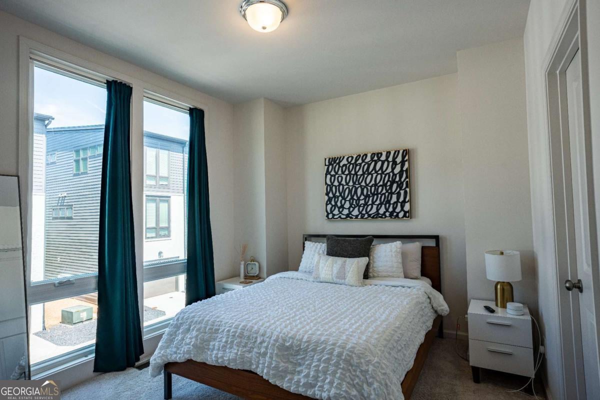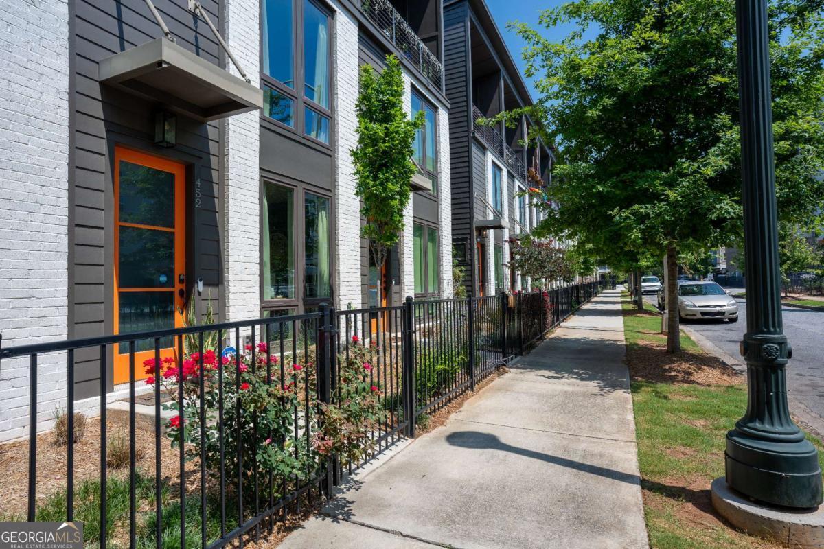 Location, location! Your modern, Old Fourth Ward townhome only a couple blocks away from Ponce City Market awaits. Upon entering, you are greeted by a staircase leading you to the 2nd and 3rd levels of this beautiful 3-level townhome. On the first floor, there is an office/flex space with access to the 1-car garage with ample storage space. As you head up the stairs to the 2nd floor you will find 2 bedrooms, 2 bathrooms and laundry room hidden by a beautiful sliding barn door. On the 3rd or top level, you will find your living area with city views, 14ft ceilings & kitchen that features a gorgeous 10 ft. waterfall edge island, white quartz countertops and floating shelves. All security hardware such as cameras, will remain in the property along with Google Smart Hub, smart lock front door entry, Nest doorbell and Bluetooth garage door opener- all you need to do is activate service. This property has so much to offer and in an unbelievable location as it is just a couple of blocks from Ponce City Market, the Beltline and easy access to major highways.