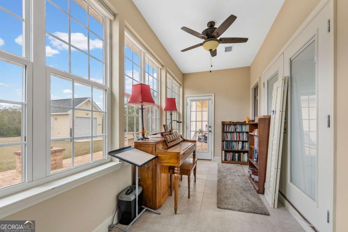 Located in the gated Bluffs of Satilla Subdivision, this beautiful home offers quality craftsmanship and comfortable living throughout. Inside, you'll find LVP flooring throughout most of the home, crown molding, and custom cabinets with granite countertops and an island bar area, along with all-electric appliances and high-efficiency heating and cooling. The spacious primary suite features a walk-in tile shower, jacuzzi tub, and a built-in makeup vanity area. Exterior features include durable Hardi Board siding, a 2412 back patio perfect for relaxing or entertaining, a custom-built 2012 workshop with accessible storage, a 2-car garage, paved driveway, and a sprinkler system for easy lawn maintenance. Residents also enjoy gated access, a community pool, and river access, making this property a great blend of comfort, convenience, and lifestyle.
