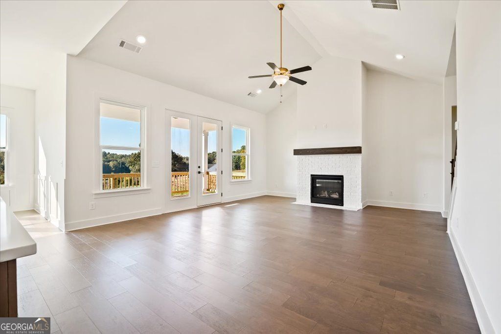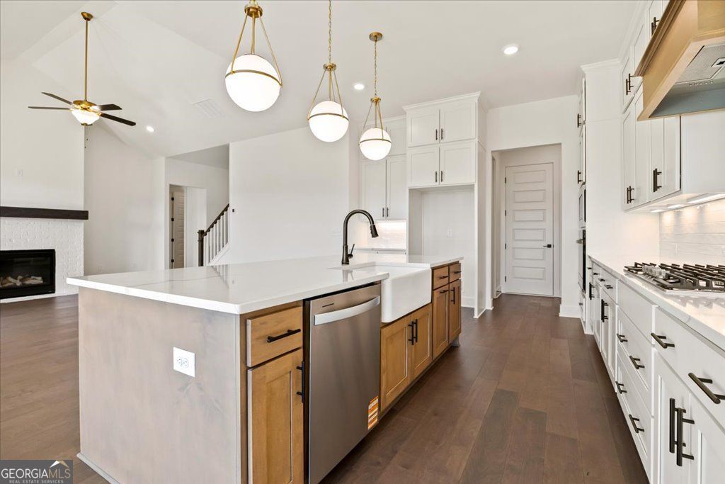 From the 2024 Community of the Year award winning builder, David Patterson Homes, this final opportunity in Brooks Pond offers a 2 acre lot with gorgeous views from the back deck. Seller is currently offering $10,000 in closing costs! If you love starting your day with a cup of coffee on your deck overlooking a beautiful 2-acre lot and community pond, this home might be your dream come true. The Scarlett Plan offers the perfect combination of space, quality, and style. The living room serves as the heart of the home, featuring a stunning fireplace beneath a soaring vaulted ceiling that creates an airy and inviting atmosphere-ideal for both relaxation and entertaining. The kitchen is a chef's delight, showcasing shaker-style double-stacked cabinets that extend to the ceiling, complemented by elegant quartz countertops, a stylish backsplash, and a custom range hood. A spacious island provides ample room for meal prep or casual dining, while a stovetop and double oven make cooking effortless. The adjacent kitchen bar invites family and friends to gather and enjoy the space together. This home includes four bedrooms and three and a half bathrooms, with each bedroom offering direct access to a bathroom for added comfort and convenience. The laundry room is thoughtfully located next to the owner's walk-in closet and private bath. Retreat to the spa-inspired owner's suite, featuring a soaking tub, tiled walk-in shower, and dual vanities for a touch of everyday luxury. With 3,043 square feet of open living space and a full basement, this home blends comfort, craftsmanship, and sophistication seamlessly. Brand new and move-in ready with no HOA.