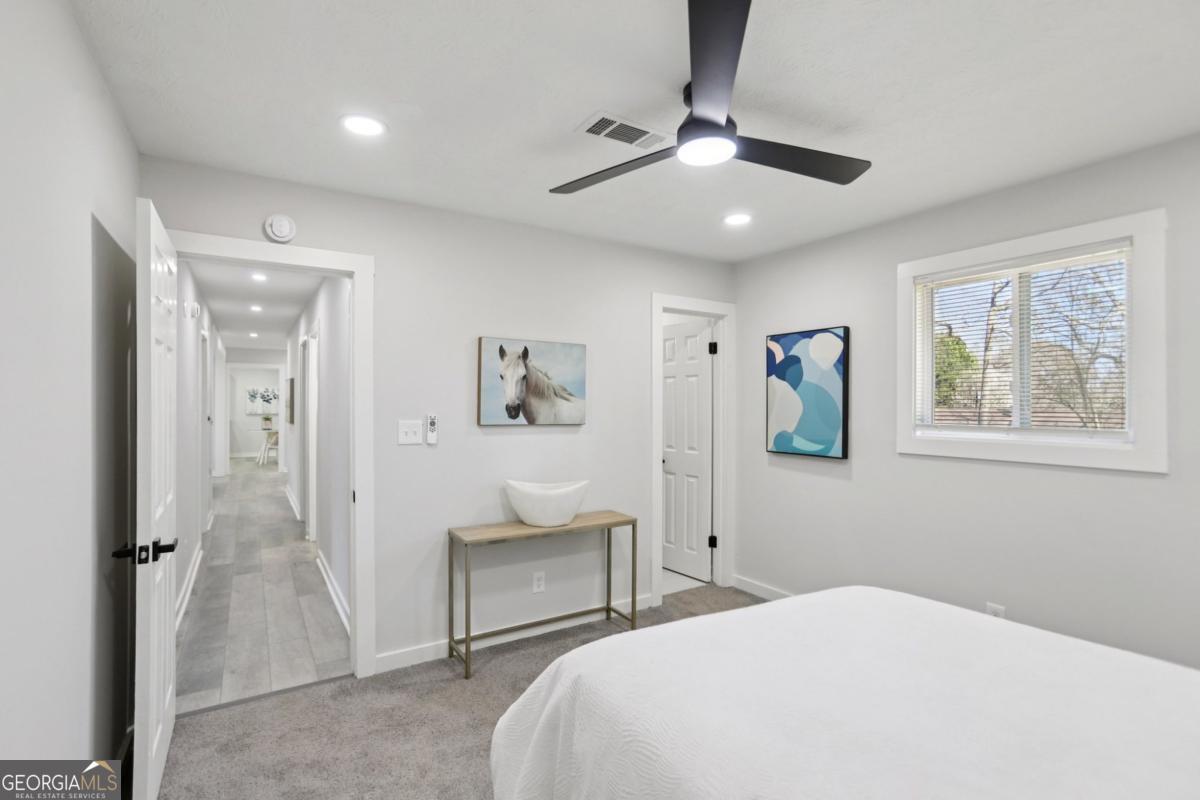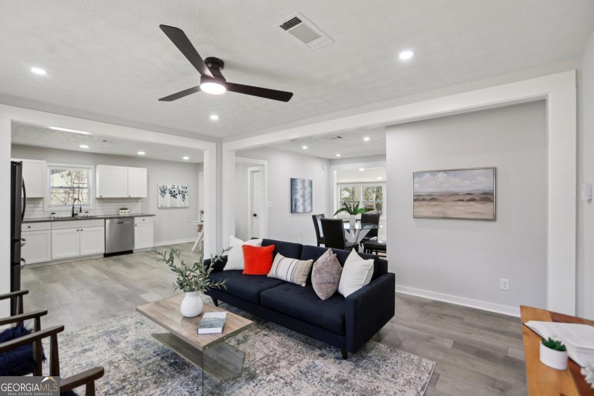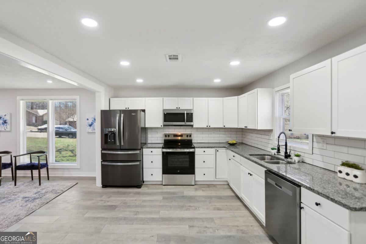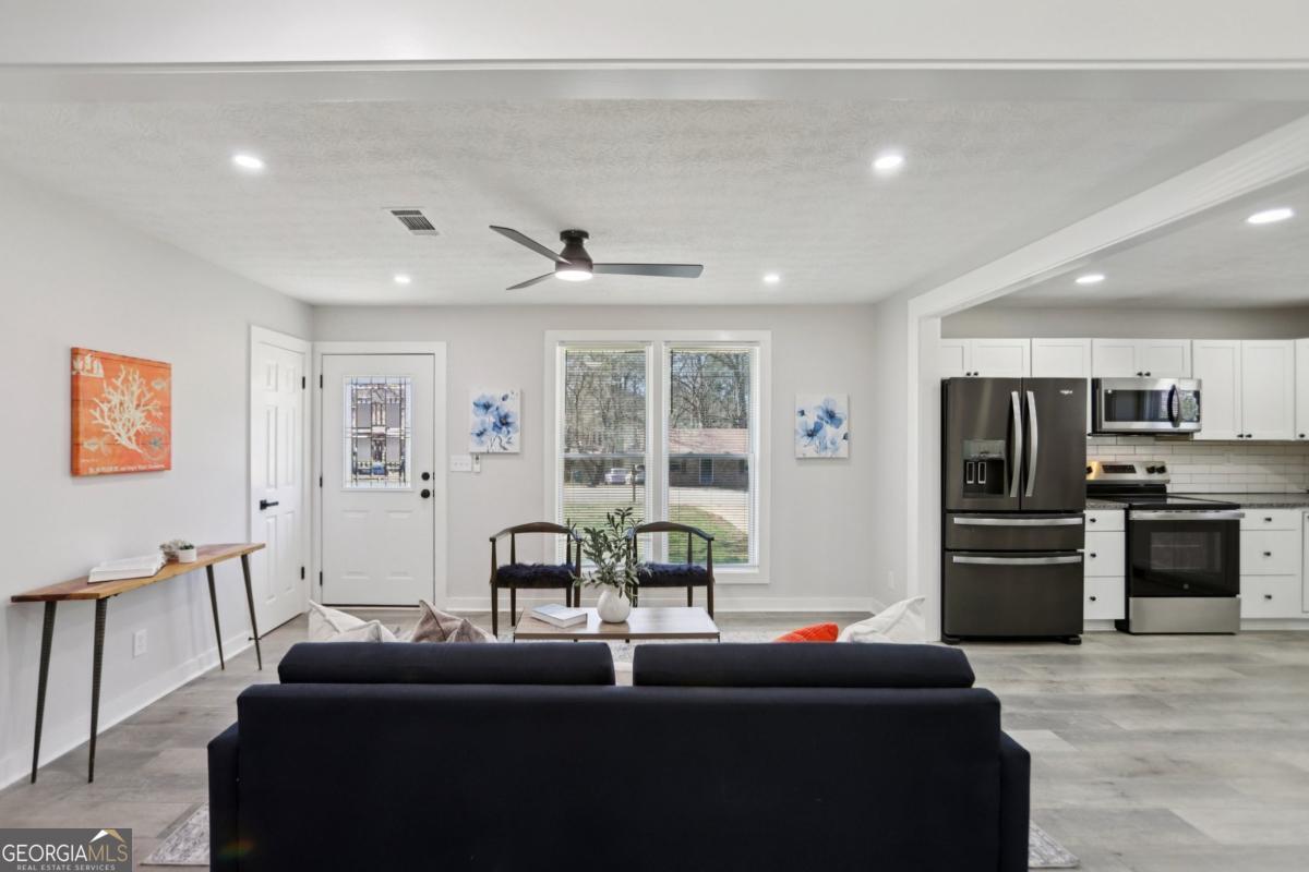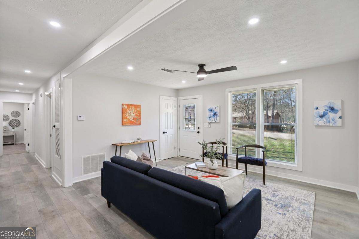 Beautifully renovated all-brick ranch offering the perfect blend of timeless construction, modern upgrades, and everyday comfort. This move-in-ready 3-bedroom, 2-bath home features a bright, open-concept layout filled with natural light, highlighted by an inviting family room with an electric fireplace and stylish updated lighting throughout. The spacious kitchen is designed for both cooking and entertaining, showcasing granite countertops, a tile backsplash, stainless steel appliances, and a generous eat-in dining area. The primary suite includes a private bath, while two additional well-sized bedrooms provide flexibility for guests, family, or a home office. Recent updates include new flooring, designer vanities, modern tile bathrooms, and upgraded fixtures throughout, creating a fresh and contemporary feel. Outdoor living is just as impressive with a fenced backyard, a brand-new deck accessible from both the living room and primary bedroom, and a fully enclosed sunroom patio ideal for relaxing or hosting gatherings year-round. Situated in a well-established neighborhood with no HOA, this property offers exceptional convenience just minutes from I-75 and I-675, schools, parks, shopping, dining, and less than 20 minutes to Hartsfield-Jackson International Airport. Perfect for homeowners or investors alike, this turnkey property delivers style, comfort, and outstanding location in one exceptional opportunity.