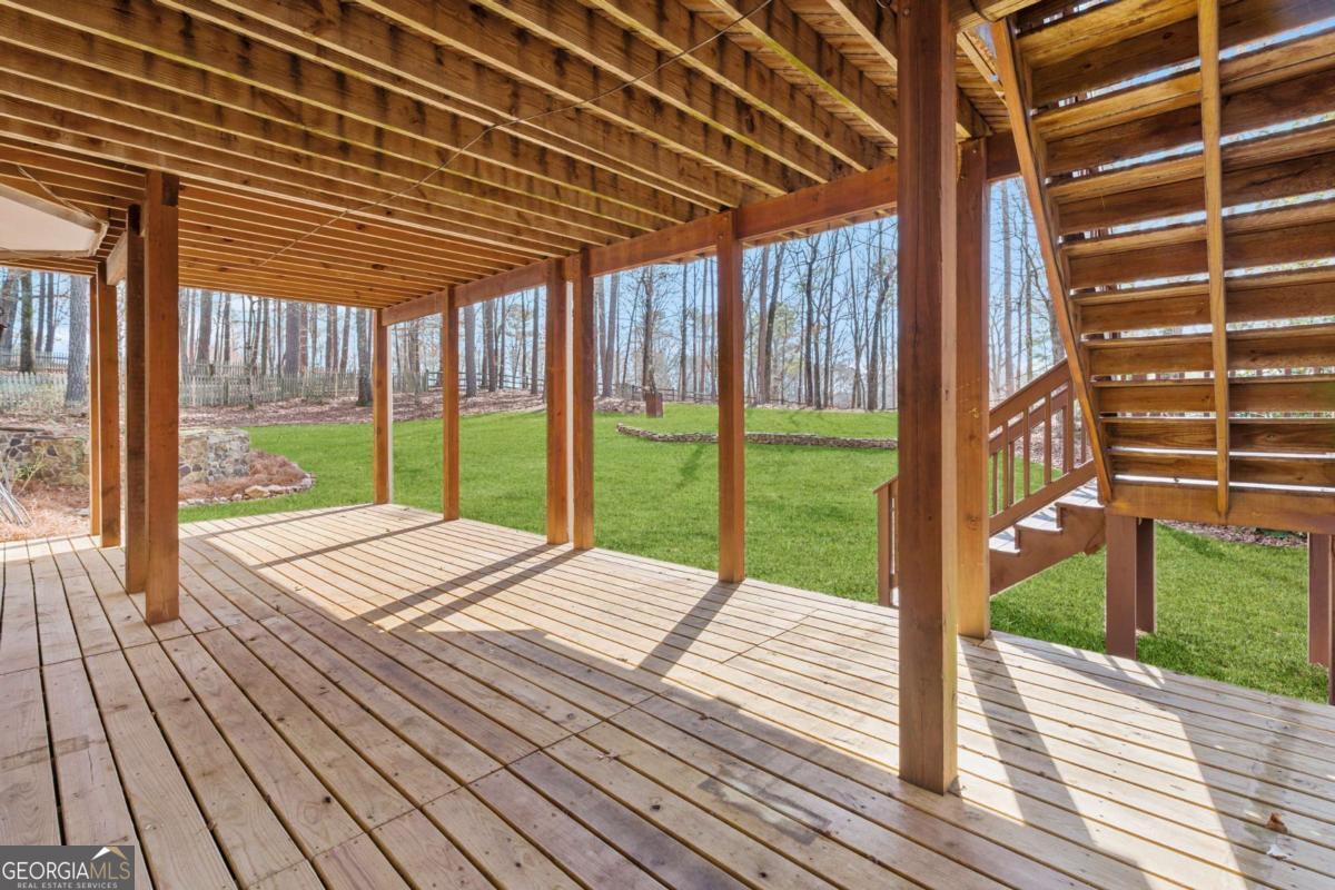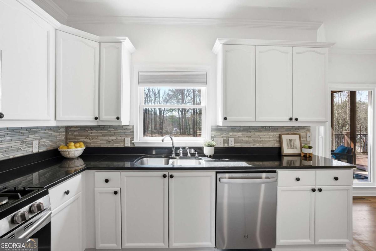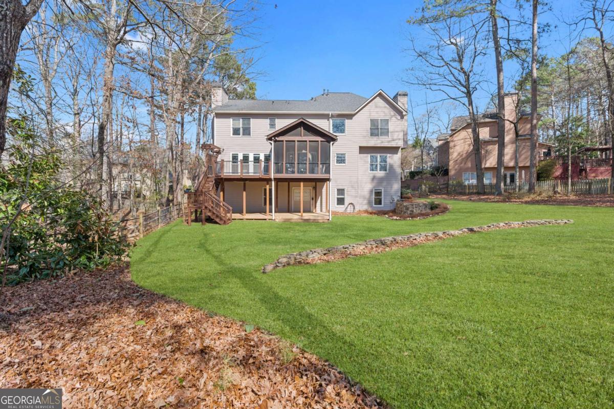 Welcome to this exceptional brick estate in the highly desirable Towne Lake Hills Golf Community, perfectly positioned on a private cul-de-sac lot with approximately one acre and a massive fenced backyard overlooking the golf course. With three full levels of finished living space and incredible indoor-outdoor entertaining areas, this home offers the lifestyle buyers are searching for. From the moment you step inside, rich hardwood floors, extensive crown molding, and fresh neutral paint create a bright and inviting atmosphere. The formal dining room features a trey ceiling and elegant lighting, while the private main-level office is filled with natural light from oversized windows. The updated kitchen is both timeless and functional, showcasing white cabinetry with updated hardware, sleek black countertops, stainless steel appliances including a gas range, a modern tile backsplash, and a generous center island perfect for gathering. Pendant lighting and an open layout flow seamlessly into the breakfast area and spacious family room. The family room is anchored by a classic white fireplace and surrounded by a wall of windows that overlook the wooded backyard and deck. Upstairs, the oversized primary suite is a true retreat featuring vaulted ceilings, hardwood floors, and a large sitting room centered around a beautiful brick fireplace. A modern sliding barn door adds architectural interest and leads into the completely renovated spa-inspired primary bathroom. This stunning space includes a freestanding soaking tub, frameless glass shower with designer tile, matte black fixtures, dual vanities with quartz countertops, statement mirrors, custom lighting, and a spacious walk-in closet. Every detail was thoughtfully designed for both style and comfort. Secondary bathrooms are beautifully updated with quartz countertops and designer finishes. Spacious secondary bedrooms offer ample natural light and room to grow. The terrace level provides expansive finished space ideal for a media room, game room, fitness area, or multi-generational living. Built-in shelving adds functionality and character, while recessed lighting keeps the space bright and inviting. Outdoor living is truly exceptional. The screened-in porch features a stunning vaulted wood ceiling with skylights, exposed beams, and ceiling fan - creating the perfect year-round retreat overlooking the lush backyard. The upper grilling deck offers open-air entertaining space with pergola accents and decorative privacy lattice. Below, a large covered lower entertainment deck provides even more space for hosting. The expansive fenced backyard is beautifully maintained with level green lawn, stone accents, and wooded privacy - a rare find in Towne Lake Hills. Major updates include a new HVAC system, newer roof, all new carpet, and fresh paint throughout. Located in the top-rated Cherokee County school district and within one of Woodstock's most sought-after golf communities, this home combines luxury, space, and lifestyle in one extraordinary package. Golf course living, privacy, modern updates, and three levels of finished space - this one truly has it all. Towne lake Hills subdivision has top-of-the-line amenities for all ages, including a restaurant, golf shop, golf, pro prestigious, golf course, huge playground, Olympic size, pool, pickle ball, lighted tennis courts, Alta tennis Teams and lessons, swim team, clubhouse, and fitness center.
