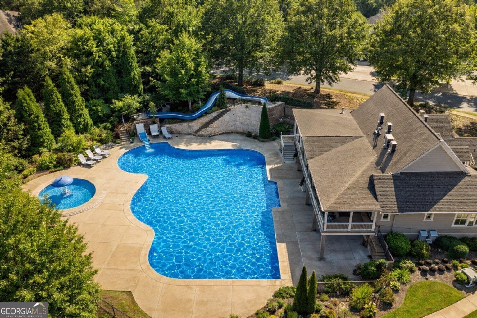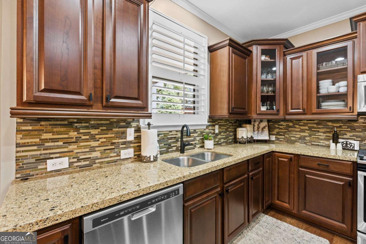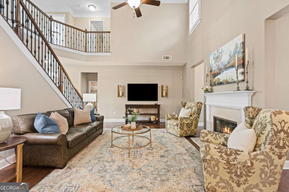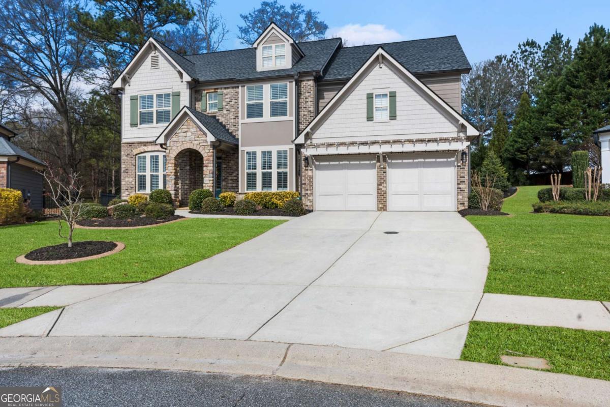 Welcome to 340 Spotted Ridge Circle, a beautifully maintained home tucked away on a quiet cul-de-sac lot in one of Woodstock's most desirable locations. This home blends thoughtful design, comfortable living, and an incredible outdoor setting that is hard to find. Step inside to a bright, open interior highlighted by soaring ceilings and abundant natural light that create an airy, welcoming feel throughout the main living spaces. The heart of the home features a spacious living area with a double-sided fireplace, adding warmth and character while connecting multiple living spaces that are perfect for both everyday living and entertaining. A notable feature of the home is the full bedroom and bathroom on the main level, offering excellent flexibility for guests, multi-generational living, or a private home office. The kitchen flows beautifully into the living areas and overlooks the backyard, making it easy to stay connected whether hosting friends or enjoying a quiet evening at home. Upstairs, generously sized bedrooms and a spacious primary suite provide comfortable retreats, while the thoughtful layout balances privacy and functionality. Step outside to one of the home's most special features, an expansive, flat backyard oasis. The professionally landscaped yard showcases a beautiful water feature, creating a peaceful focal point and a truly relaxing setting. The covered deck provides the perfect place to enjoy morning coffee, unwind in the evenings, or host gatherings while taking in the view of the spacious yard. Location is another highlight. Just minutes away, you'll find the vibrant restaurants, boutique shopping, and community events of Downtown Woodstock, along with easy access to I-575 for convenient commuting. Outdoor enthusiasts will love being close to Olde Rope Mill Park and the scenic Noonday Creek Trail. The home is also conveniently located near Twin Creeks Softball Park, and an exciting new pickleball facility coming soon, adding even more recreational options nearby. With its cul-de-sac setting, flexible floor plan with main-level bedroom and bath, soaring ceilings, inviting living spaces, and an exceptional backyard retreat, this home offers the perfect blend of comfort, convenience, and lifestyle. Come experience everything 340 Spotted Ridge Circle has to offer.