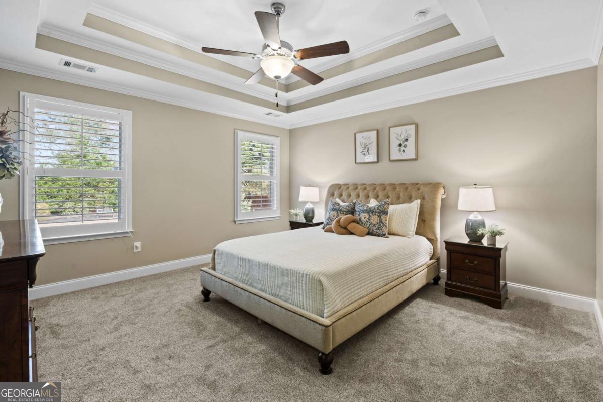 - Interior FeaturesDouble Vanity, High Ceilings, Pulldown Attic Stairs, Separate Shower, Soaking Tub, Split Bedroom Plan, Tile Bath, Tray Ceiling(s), Walk-In Closet(s), Two Story Foyer