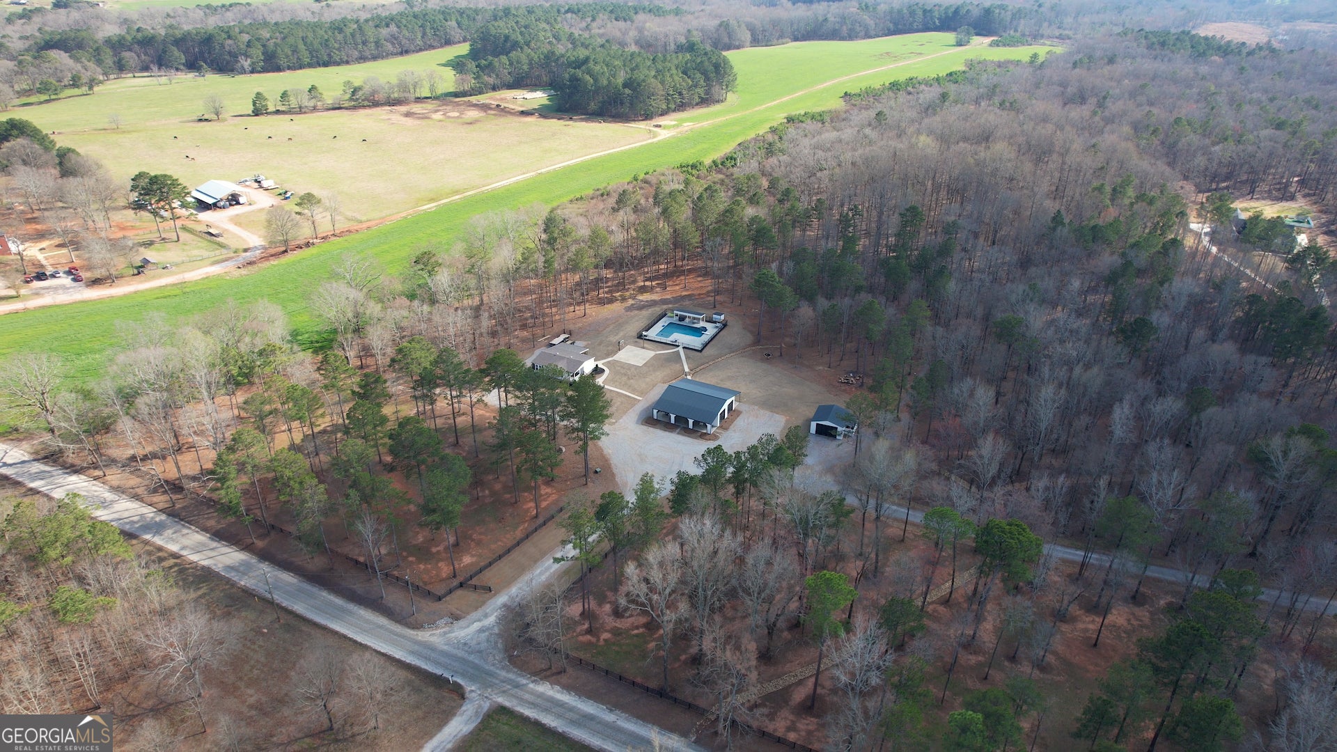 Welcome to a truly exceptional private estate offering space, versatility, and luxury across an incredible 42 acres!! A long, private drive leads you to the stunning main residence, a beautifully appointed 3,700 square foot home featuring 5 bedrooms and 4.5 bathrooms. Inside, soaring vaulted ceilings create a bright and open atmosphere while high-end finishes can be found throughout. The gourmet kitchen is a centerpiece of the home, showcasing elegant quartz countertops and premium Cafe Edition appliances designed for both style and function. The spacious layout offers generous living areas and a luxurious owner's suite, while the three-car garage with dual entrances provides both convenience and ample storage. Adding even more flexibility to the property is a recently installed 1,200 square foot additional residence, perfect as an in-law suite! Designed with charming farmhouse-inspired finishes, this 3 bedroom, 2 bath home offers comfortable, modern living with its own very private gravel driveway and 600 sqft garage, making it ideal for extended family, guests, or potential rental opportunities. Another unique living space is offered elsewhere at approximately 1,400 square feet! This 1 bedroom, 1 bath residence includes a welcoming living room and open kitchen layout, along with beautiful wood interior finishes that create a warm and rustic character. A two-car garage and additional attic space provide extra functionality and storage. The property itself is just as impressive as the homes it holds. Spread across 42 peaceful acres, the land offers endless possibilities for recreation, farming, or simply enjoying the privacy and beauty of nature. Outdoor amenities include a heated in-ground saltwater pool perfect for year-round enjoyment and your very own basketball court! With multiple homes, extensive acreage, and resort-style amenities, this rare estate provides a unique opportunity to create a true family compound, private retreat, or multi-generational living experience with room for everyone.