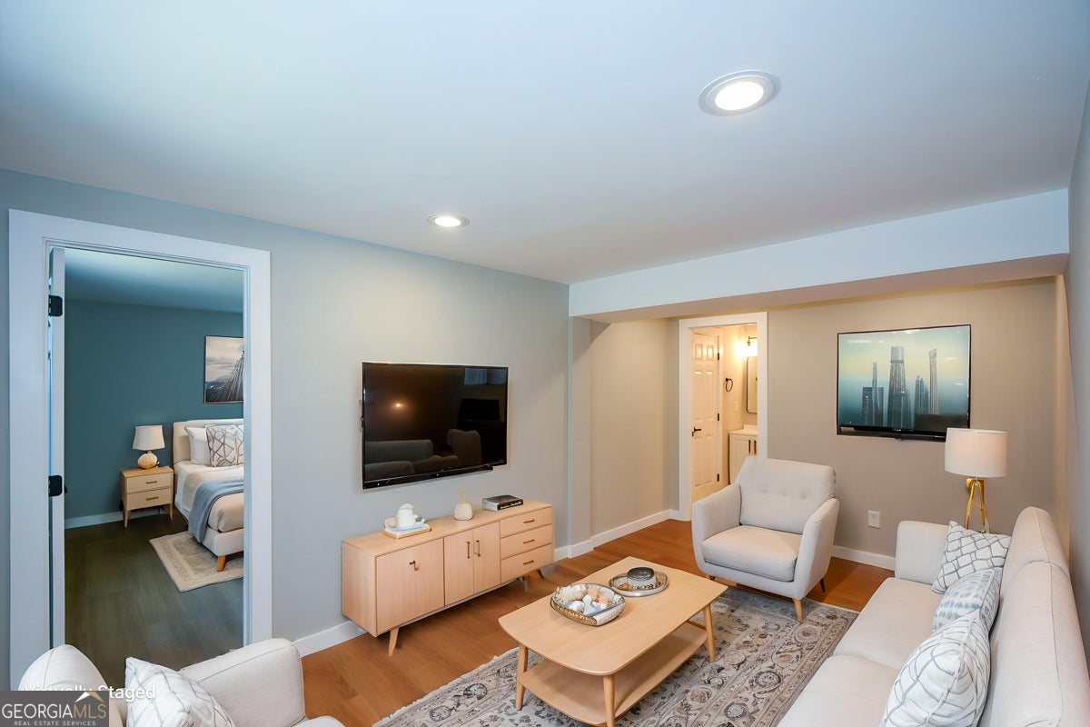 Welcome to where modern elegance meets historic charm in sought-after Collier Heights. This beautifully renovated home has been updated to perfection - and fully up to code - offering peace of mind and stylish living at every turn. Enjoy a brand-new roof, new windows, and an upgraded electrical system. The bright, light-filled kitchen shines with new appliances, quartz countertops and cabinetry, while the bathrooms have been thoughtfully redesigned with modern fixtures and hardware. New lighting throughout enhances every space, and the original upstairs hardwood floors have been expertly refinished to preserve the home's timeless character. Major systems have already been taken care of - the HVAC, A/C, and water heater were all replaced in 2022. The fully finished main level features durable LVP flooring, a full bath, an oversized bedroom, and expansive living space. Whether you envision a private primary suite, teen or in-law suite, entertainment zone,or potential rental opportunity, this flexible layout offers endless possibilities. Step outside to a covered patio overlooking a serene natural setting - perfect for relaxing or entertaining guests. Conveniently located just minutes from I-20, I-285, and Metropolitan Atlanta Rapid Transit Authority (MARTA), this home is also only a few miles from Westside Reservoir Park and the Atlanta BeltLine, placing some of Atlanta's best outdoor recreation and amenities right at your doorstep. This is the perfect blend of modern upgrades, flexible living space, and unbeatable location - ready for you to call home.