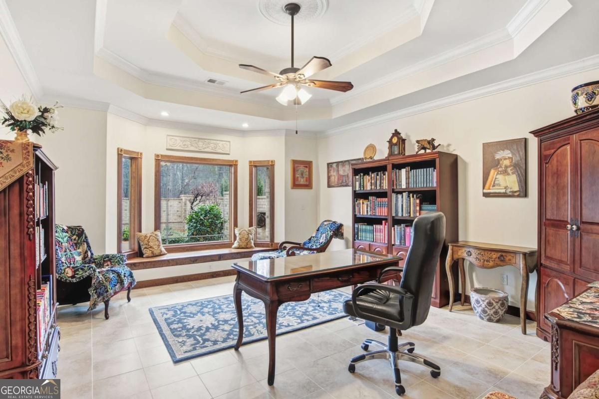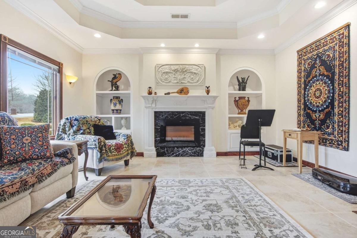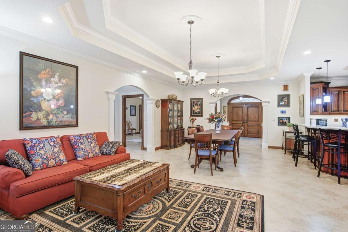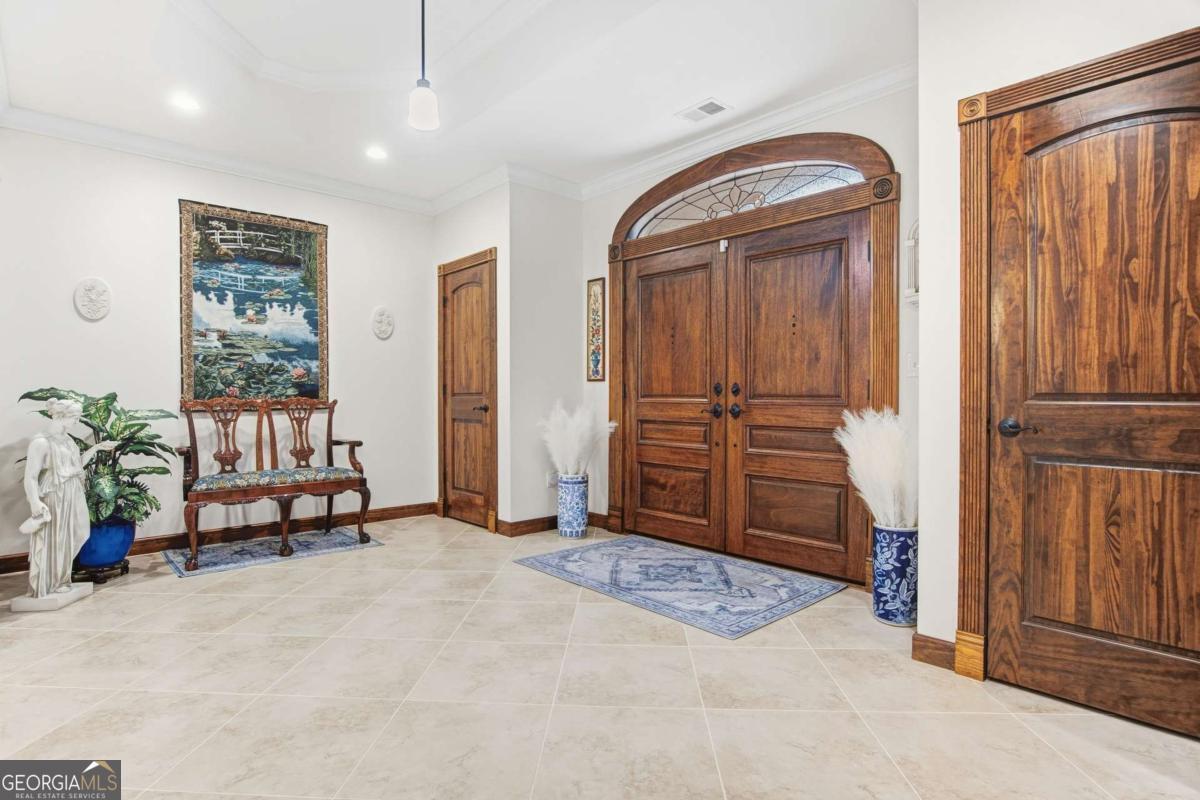 Designed for comfort and effortless living, this home showcases quality craftsmanship, upscale finishes, and exceptional attention to detail throughout. Expansive windows and a generous sunroom open to a private walled patio garden. The level lot offers manicured lawn and wooded acreage that extends to the Oconee River, creating a serene and private retreat. A pair of double wood front doors opens to a gracious foyer with a long, welcoming sightline through the main living spaces, the sunroom, and out to the secluded brick-walled garden...an ideal setting for morning coffee or relaxed evening gatherings. Porcelain tile flooring flows throughout the main level, while trey ceilings in every room add architectural depth and understated elegance. The main level is thoughtfully arranged for both everyday comfort and entertaining, featuring a welcoming living room anchored by a fireplace, a flexible room currently serving as a private office, and a serene primary suite. Two additional bedrooms and three full baths complete the main floor, offering convenience and privacy for family or guests. Upstairs, hardwood floors extend through two spacious bedrooms and a full bath, providing inviting accommodations for guests, hobbies, or additional workspace. The kitchen and all baths are finished with custom cabinetry and quartz countertops, creating spaces that are both beautiful and highly functional. Marvin windows throughout the home bring in abundant natural light while delivering exceptional energy performance, complemented by LED lighting throughout the house for bright, efficient illumination. Spray foam insulation, a passive radon system, and a central vacuum system further enhance year-round comfort and efficiency. Outdoor living is thoughtfully integrated, with a zoned irrigation system and landscape lighting that highlight the grounds from day to night. The third-car garage, with a 14-foot ceiling, offers added flexibility, and a 15' x 20' garden shed provides generous storage for tools and hobbies. Located just minutes from the energy of University of Georgia, enjoy game days at Sanford Stadium, evenings at the Georgia Theatre, and dining in Downtown Athens...then return home to the privacy and serenity of your own retreat. A rare harmony of vibrant college-town energy and refined everyday living.