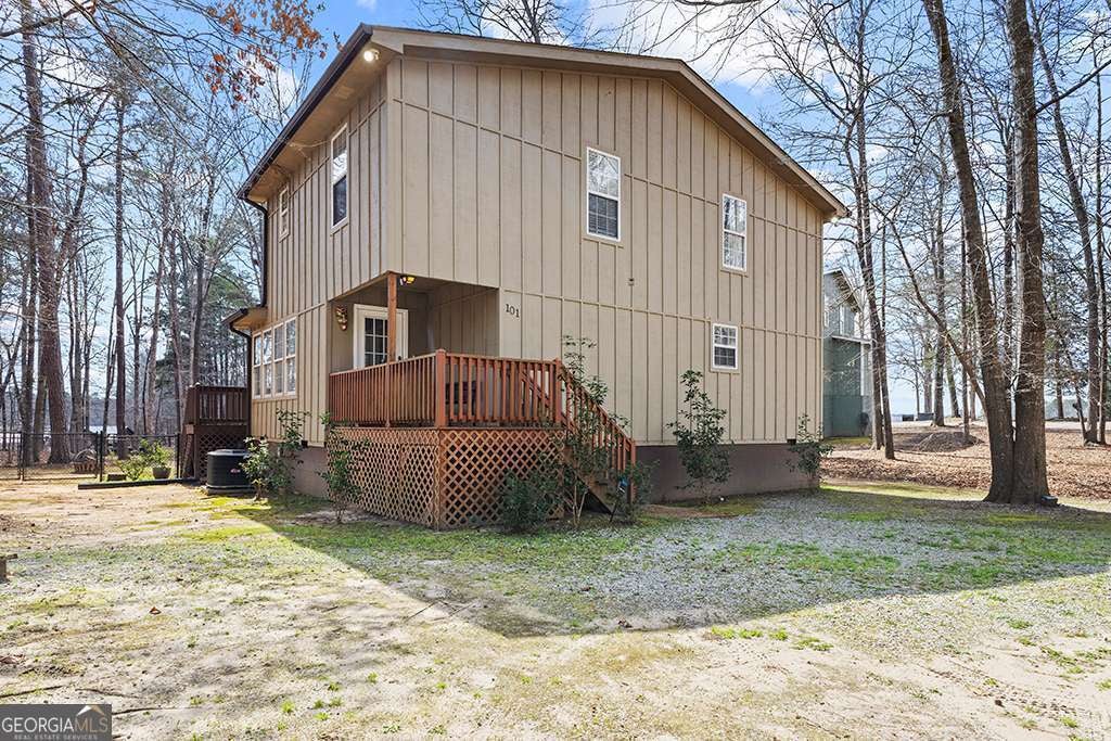101 Allens Alley, Eatonton, GA Your Lake Sinclair Sanctuary Welcome to the ultimate Lake Sinclair retreat. Nestled in a serene, quiet cove, this charming home offers the perfect blend of relaxation and recreation. Whether you are looking for a turnkey short-term rental, a weekend getaway, or a peaceful full-time residence, this property delivers the quintessential lake lifestyle. The open-concept living area features a stunning wall of windows that floods the space with natural light and offers framed views of the water. Convenience meets comfort with a spacious primary suite located on the main level. Upstairs, you will find additional guest bedrooms, a full bath, and a versatile loft area that currently provides ample sleeping space for a large group. The kitchen comes ready for entertaining with stainless steel appliances, a breakfast bar for casual dining, and a walk-in pantry. Step outside to an entertainer's dream featuring an expansive back deck and a fenced-in backyard ideal for pets and play. Head down to your private waterfront to find a well-maintained dock and a single-stall boathouse, providing the perfect spot to launch your boat, fish, or soak in the sunset. You can move in with peace of mind thanks to a newer roof and a well-maintained exterior. Located just minutes from Twin Bridges and a short drive to the heart of Eatonton and Milledgeville, this home offers the perfect balance of secluded living with quick access to local amenities. Schedule your viewing today!