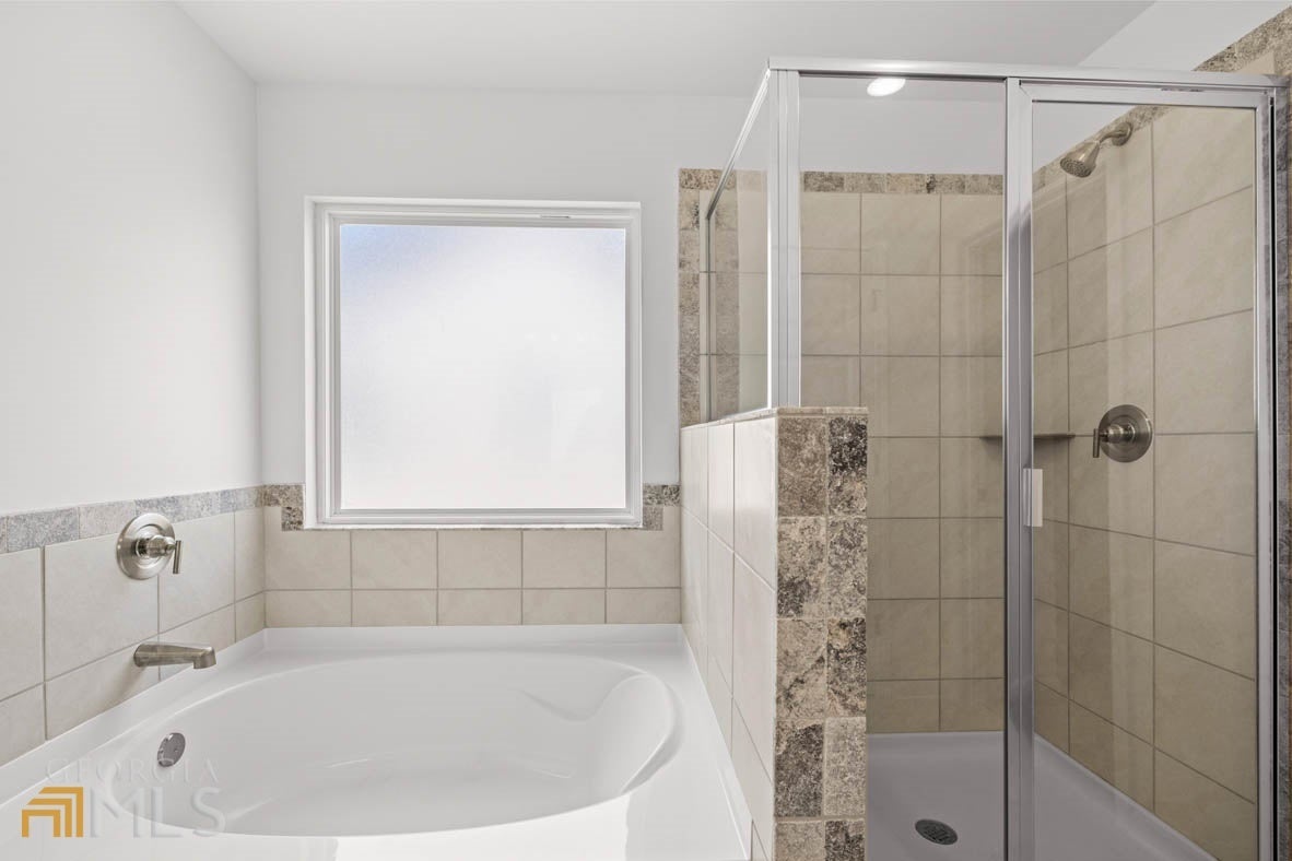 - Interior FeaturesDouble Vanity, Separate Shower, Soaking Tub, Tile Bath, Tray Ceiling(s), Walk-In Closet(s)