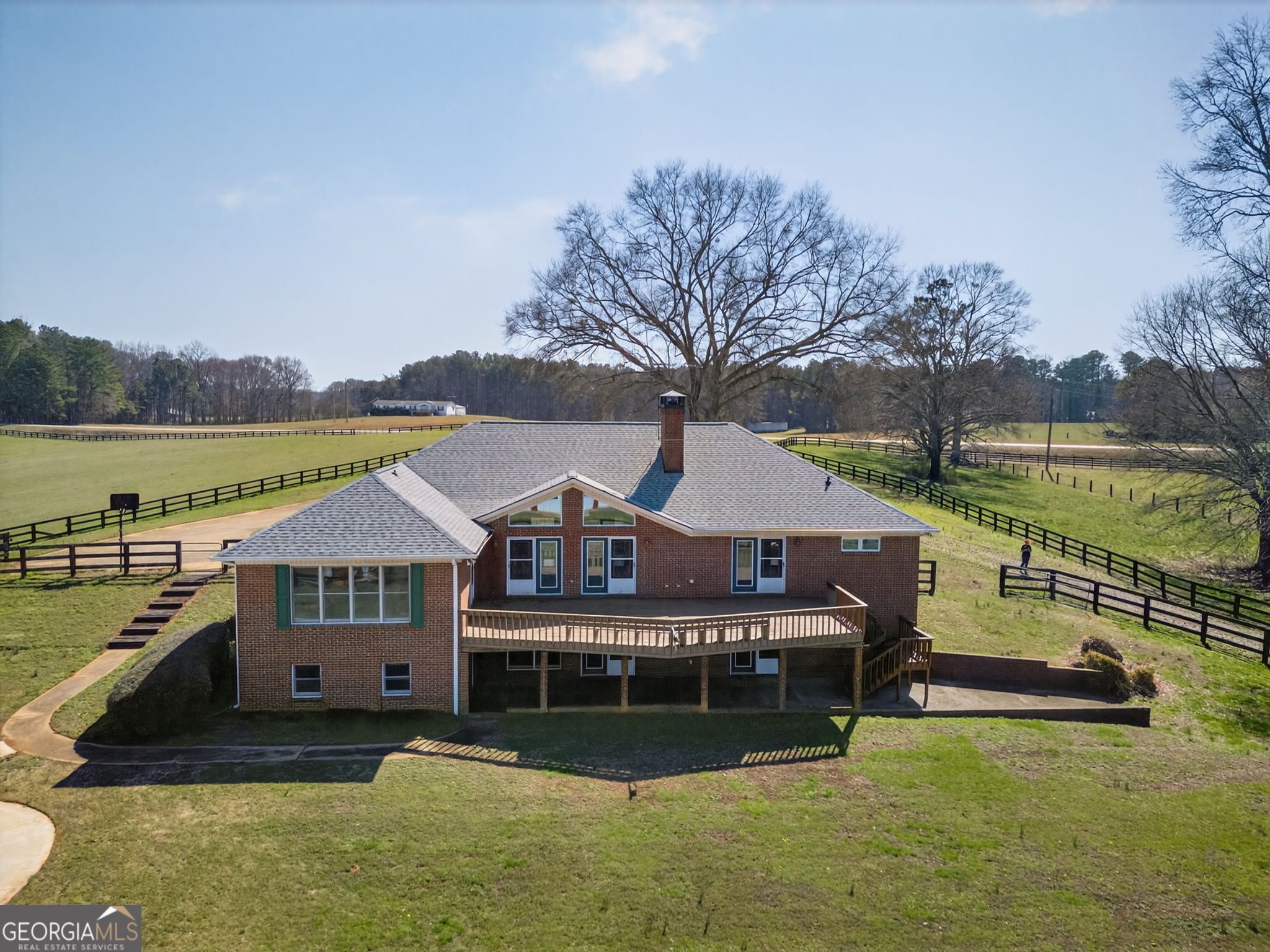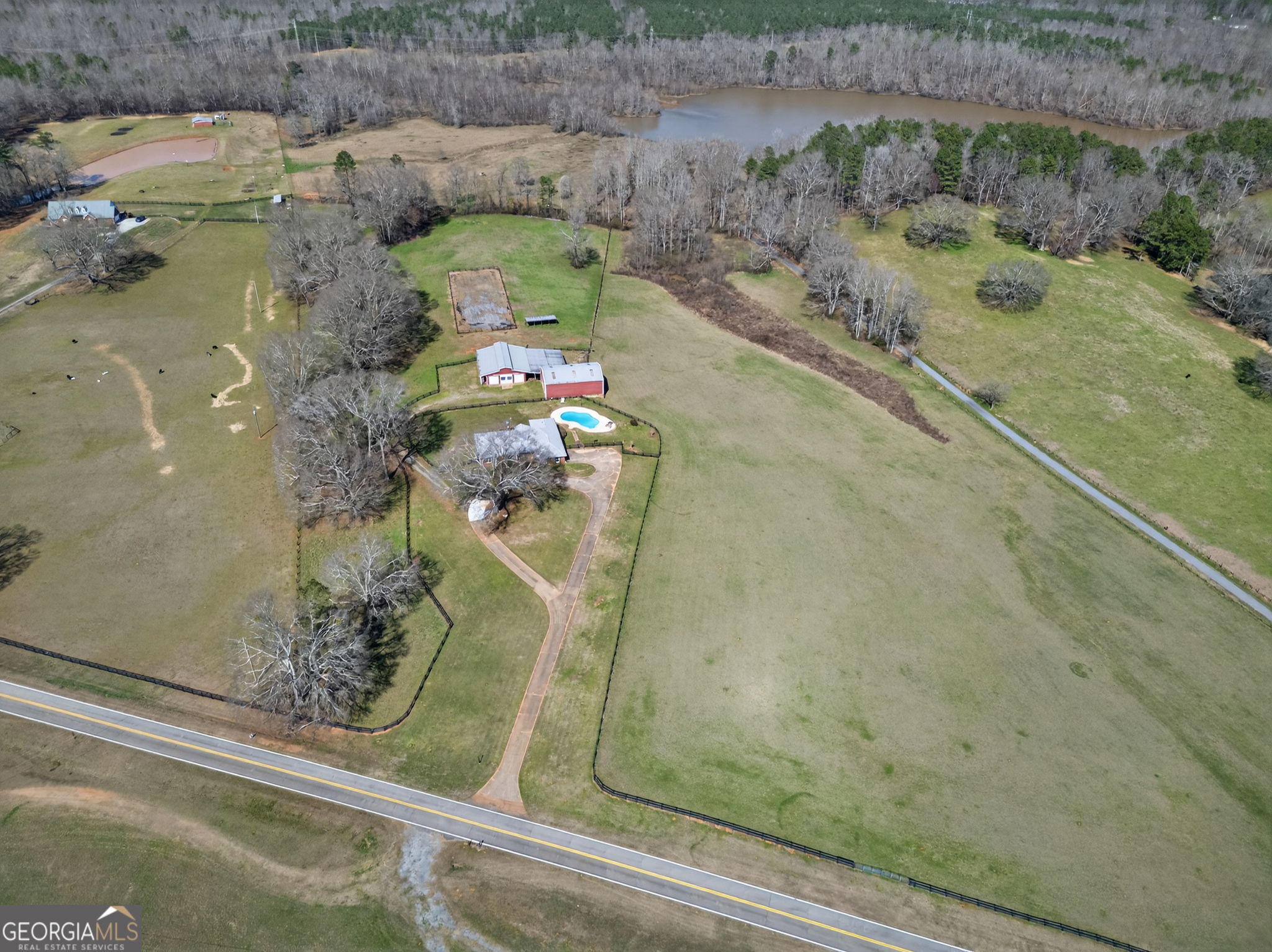 Experience serene country living on 20.24 breathtaking acres with this exceptional 5,000+ square foot brick ranch estate, thoughtfully designed for luxury, functionality, versatility, and an unparalleled equestrian/farm lifestyle. The main residence offers a spacious and inviting layout featuring three bedrooms on the primary level, including a private owner's suite with direct access to an expansive deck and the perfect place to enjoy peaceful mornings overlooking the pool and rolling pastureland. Two additional bedrooms are connected by a convenient Jack-and-Jill bath, creating a comfortable and functional space for family or guests. The oversized main level kitchen is designed for both everyday living and entertaining, offering generous workspace and seamlessly opening to the large outdoor deck, where stunning views of the property, barn, and pool create the ultimate setting for gatherings and relaxation. Did I mention the 2 car garage and the two laundry rooms on both the main level and terrace level? The fully finished terrace level offers a private apartment-style living space complete a huge country kitchen, with two bedrooms and one and a half baths, making it ideal for multigenerational living, guest accommodations, or income-producing potential such as Airbnb or long-term rental. Downstairs is also a huge concrete block storage and storm shelter space. Equestrian/Farm enthusiasts will appreciate the impressive approx. 2400 sq.ft. six-stall horse barn, thoughtfully equipped with premium features including stall mats, water at every stall, a wash rack, tack room, and dedicated feed and shavings rooms with large roll-up doors for easy access. Outside top Dutch doors with bars provide both ventilation and safety, ensuring comfort even for spirited horses like Trigger. The fully fenced and cross-fenced property includes three separate pastures, a large finished riding arena, outside equipment pole barn, and an outdoor shelter for horses during changing weather. Beyond the barn, the property continues to impress with a sparkling inground pool perfect for warm summer days and a massive fully insulated shop approx. 2400 sq.ft, with 2 large roll up doors that can fit multiple equipment, semi's, RV's, ATV's etc. offering incredible flexibility for hobbies, equipment storage, business use, or recreational space. Combining luxury living, fully functional farm living, equestrian excellence, and unmatched beauty and convenience, this remarkable estate offers a rare opportunity to enjoy the best of country life. Guess what? It is still within reach of nearby towns and conveniences! Perfect location close to I-20, convenient to Carrollton, and close to what is considered the Trifecta of locations to Atlanta, Birmingham, and Chattanooga. This is more than a home-it is an obtainable dream life. There is a 10 Year Land Covenant 1/1/2023 that expires 12/31/32