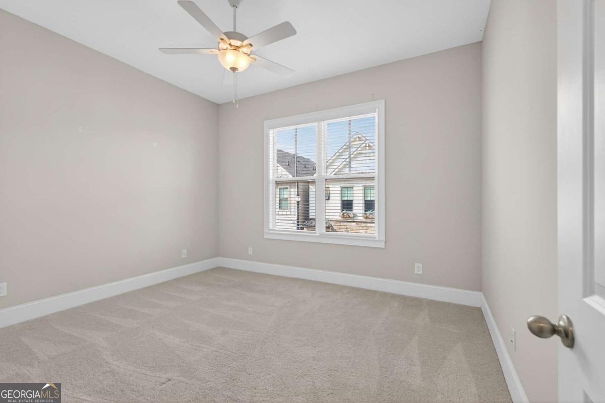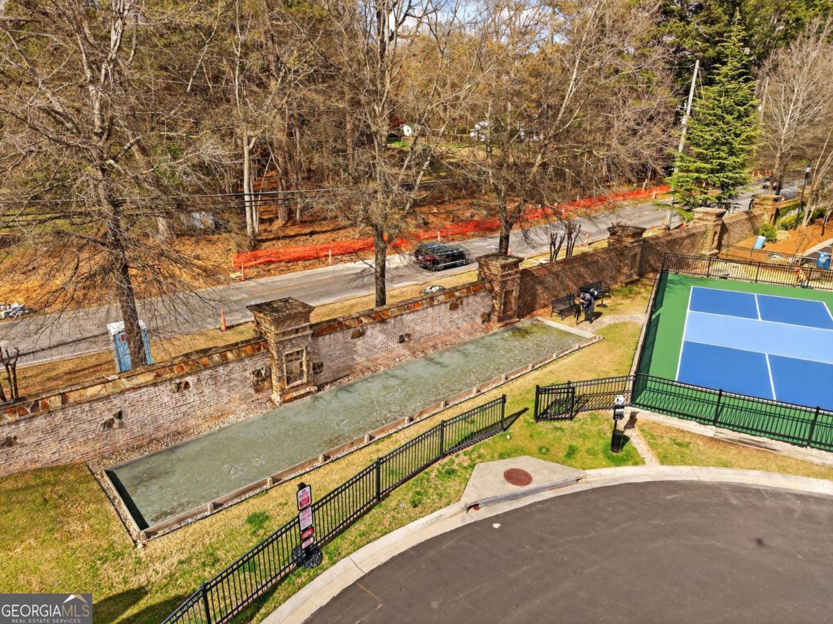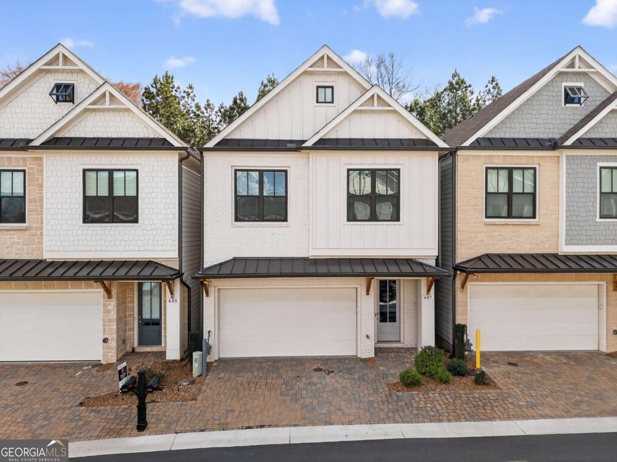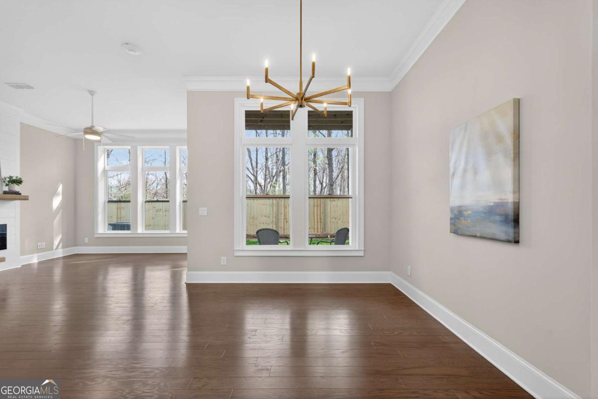 Welcome home to one of the best values in the area, where nearly new construction meets elevated design and exceptional amenities. Built in 2023, this stylish modern home delivers high-end finishes and thoughtful details rarely found at this price point. From the moment you arrive, the clean exterior sets the tone with crisp board-and-batten siding, black-trim windows, and warm natural wood accents that create a look both modern and welcoming. Inside, the open-concept floor plan is bright, airy, and designed for the way people live today. The stunning kitchen is the centerpiece of the home, featuring quartz countertops, a large accent island with seating, soft-close white cabinetry, under-cabinet lighting, and a stainless gas cooktop with statement vent hood. A built-in wall oven and spacious walk-in pantry add both convenience and style. The kitchen flows seamlessly into the dining and living areas where soaring ceilings and hardwood floors create an inviting space for gathering, entertaining, or simply relaxing. Outdoor living is just as impressive. Step onto the covered back porch for morning coffee or evening gatherings, while a second private porch just off the primary suite offers a peaceful retreat. The primary suite feels like a boutique hotel getaway, complete with a spa-inspired bath featuring a large walk-in shower, double vanity, and an oversized custom closet designed to keep everything beautifully organized. Upstairs, two additional bedrooms, a full bath, and a conveniently located laundry area provide the perfect layout for family, guests, or work-from-home flexibility. Beyond the home itself, the gated community lifestyle truly shines, offering resort-style amenities including a pool, clubhouse with fitness center, fire pit gathering space, tennis and pickleball courts, bocce ball, and three dog parks, all securely within the gates. Located just minutes from the vibrant energy of Downtown Woodstock, you'll enjoy easy access to popular restaurants, boutique shopping, festivals, and year-round community events. Modern, move-in ready, and packed with upgrades, this is the one buyers have been waiting for.