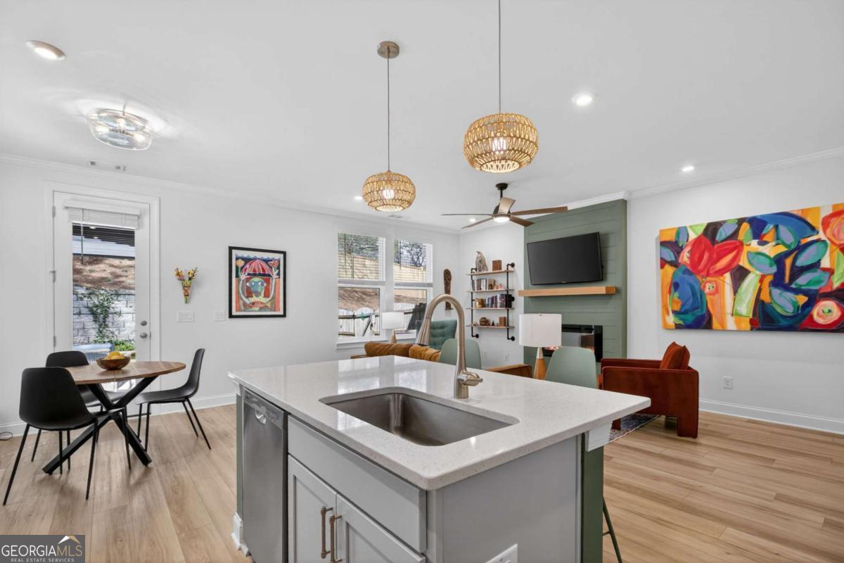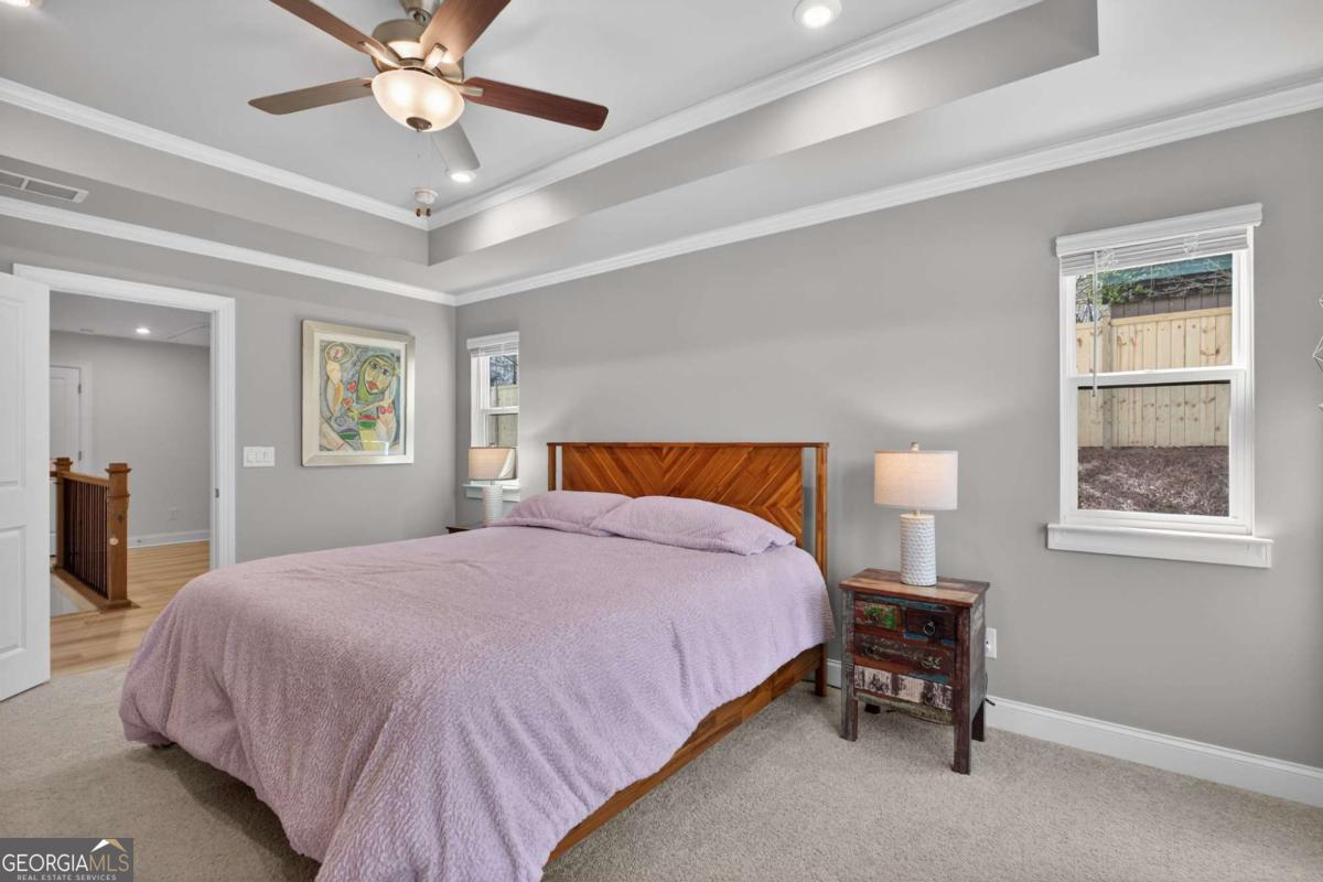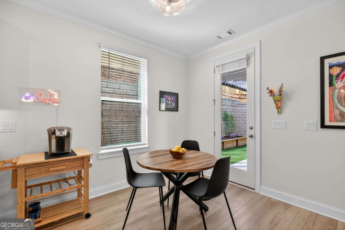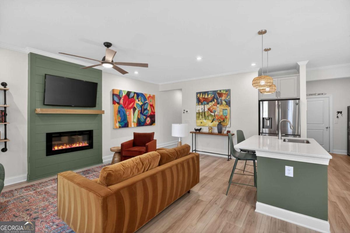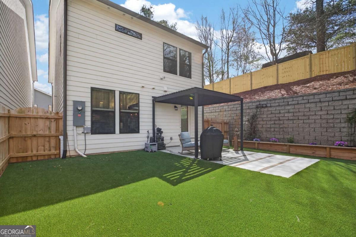 Welcome to luxury living just moments from the heart of Woodstock, recognized by Money Magazine as one of the best places to live. This better than new 2024 home offers the perfect blend of modern design and privacy with its highly pursued and perfectly positioned end location providing rare privacy within a desired gated community. The sought-after Washington floorplan features a bright open layout with soaring ceilings and upgraded LVP flooring throughout the main level. The designer kitchen showcases 42" cabinets, quartz countertops, stainless steel appliances, and generous prep space, flowing seamlessly into the living area highlighted by an electric fireplace with floor-to-ceiling shiplap. Step outside to your professionally upgraded backyard retreat-complete with an extended patio, pergola, artificial turf, two custom 20-foot planter boxes, and a fully fenced yard-creating the perfect space for entertaining, relaxing, or gardening. Upstairs, the spacious primary suite offers a spa-like bath with dual vanities, glass shower, and a large walk-in closet, along with two additional bedrooms, secondary bathroom with dual vanities, and oversized laundry. Thoughtful upgrades throughout include Sherwin-Williams Greek Villa interior paint, upgraded LVP flooring, RainSoft whole-home water filtration system, new light fixtures throughout, and a Fleximount garage storage system. The Village At Towne Lake residents enjoy upscale amenities including gated entry, clubhouse, resort-style pool, fitness center, tennis courts, bocce ball, and a dog park-all within gated community. This meticulously maintained home offers modern luxury, exceptional upgrades, and an unbeatable location.