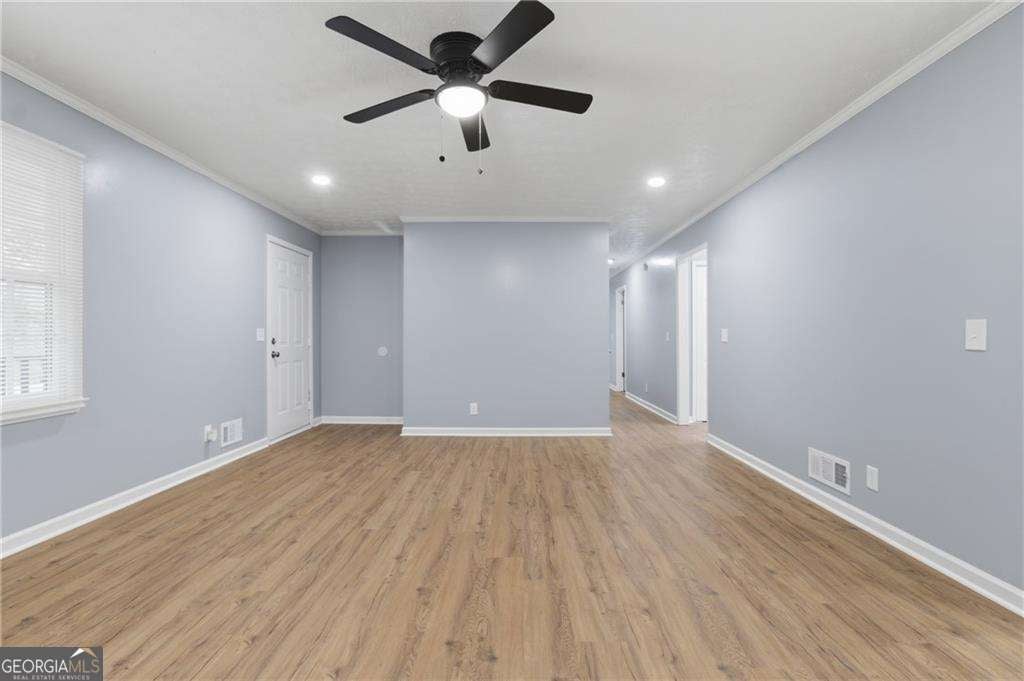 A stunning fully renovated 3-bedroom, 2-bathroom home in the heart of Lawrenceville. This move-in ready gem features a spacious open-concept layout with luxury vinyl flooring, elegant crown molding, and fresh modern tones throughout. The updated kitchen boasts quartz countertops, subway tile backsplash, white shaker cabinets, and stainless steel appliances. Both bathrooms shine with contemporary finishes, including sleek vanities and designer tile. The bright living room centers around an electric fireplace with white stone detail, perfect for relaxing or entertaining. Enjoy a private fenced backyard with a large deck, mature trees, and space to gather. The home also offers a two-car garage with epoxy floors, a long driveway, and a dedicated laundry room. Conveniently located near Downtown Lawrenceville's dining and entertainment, Sugarloaf Mills, Tribble Mill Park, and top Gwinnett County schools - this beautifully upgraded home is the complete package. Seller is eager to make a deal! Please inquire for further details on how you may benefit.