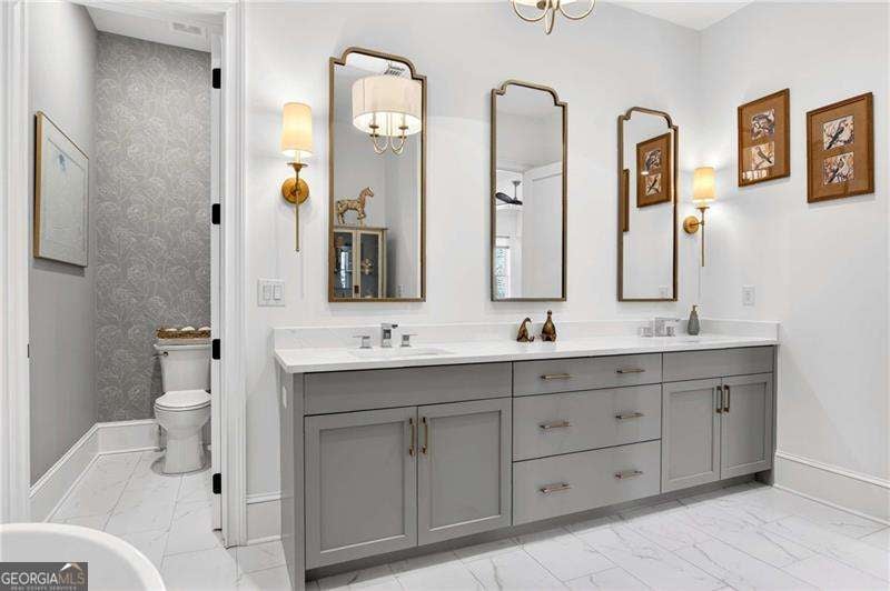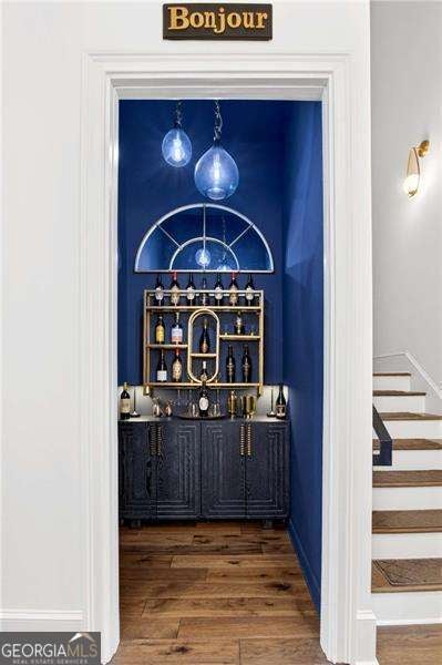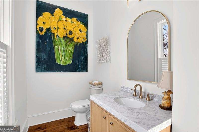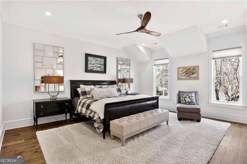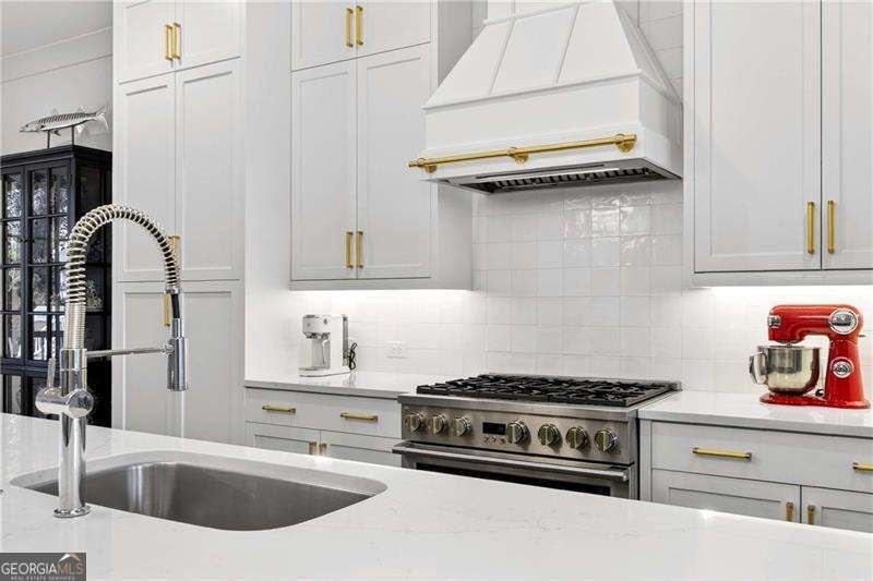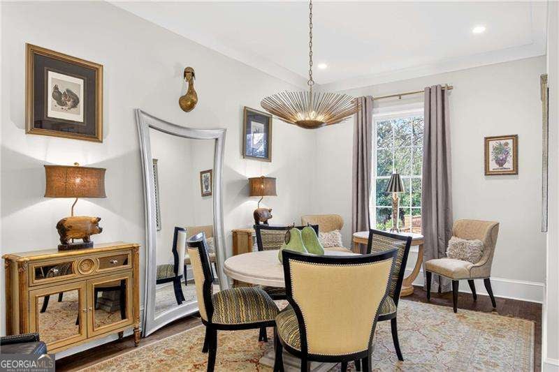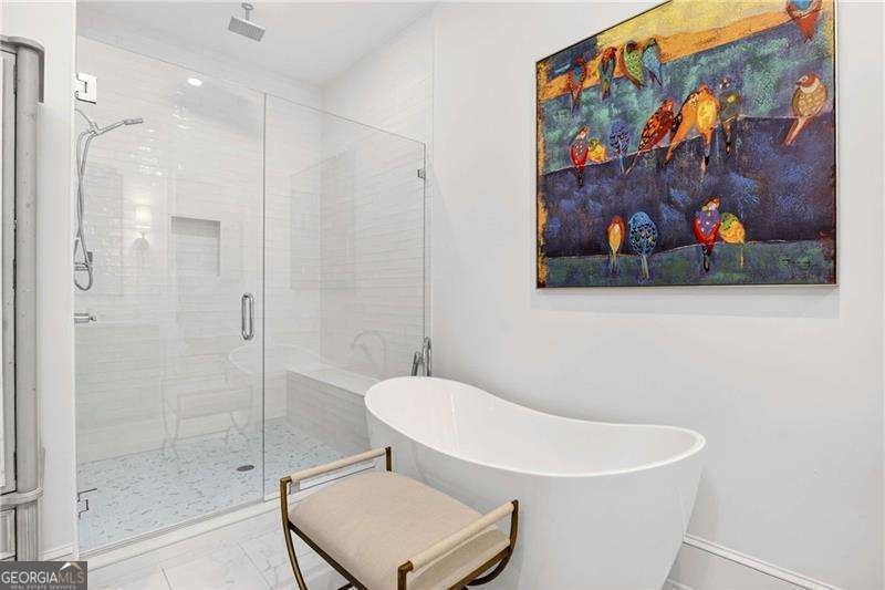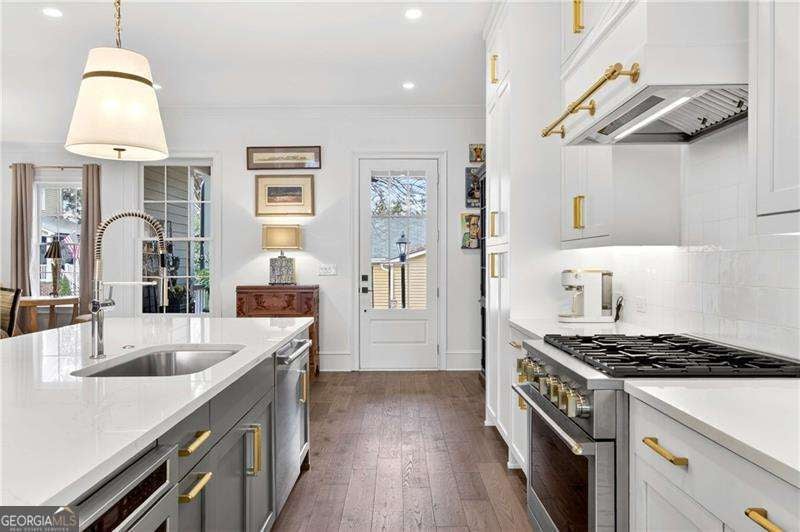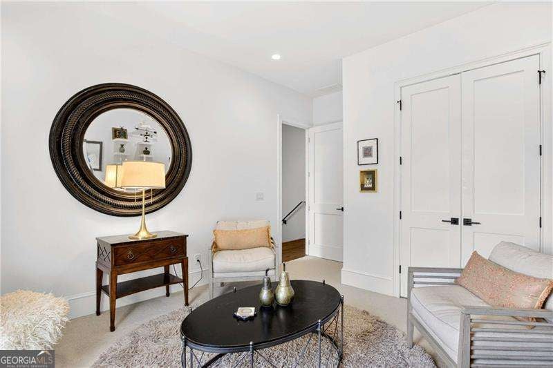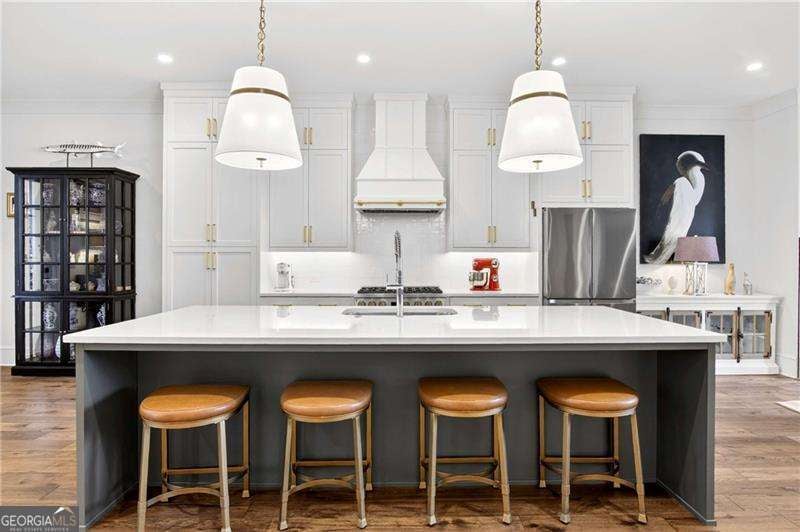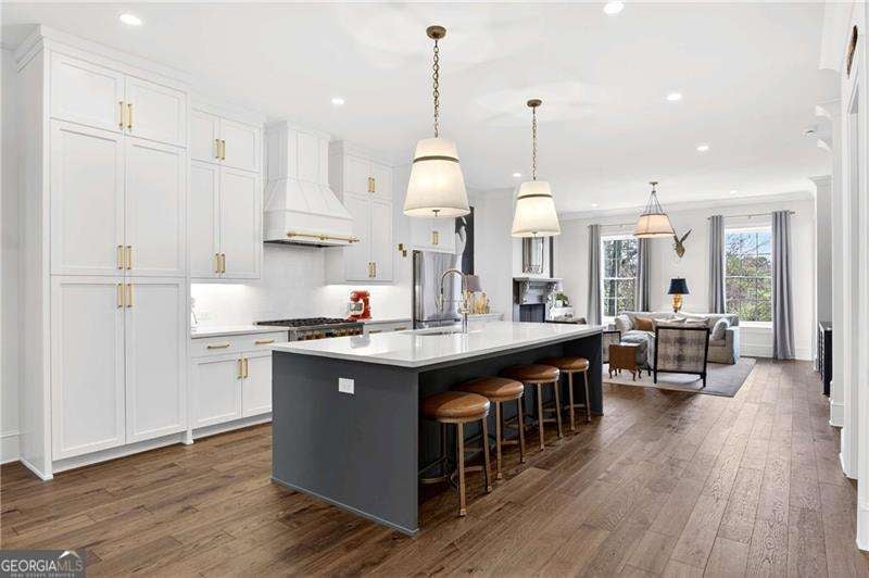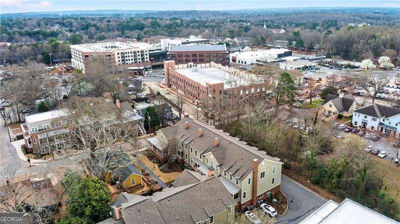 Nestled within the coveted Blacksmith Row enclave, this extraordinary townhome presents an unparalleled fusion of artisan craftsmanship and effortless sophistication - mere moments from the illustrious Canton Street corridor in Downtown Roswell. Spanning over 3,200 square feet of meticulously curated living space, every detail has been orchestrated with discerning precision. The main level unveils sweeping hardwood floors that guide you into a culinary masterpiece of a kitchen - appointed with bespoke cabinetry, a professional gas range, statement French hood, and a grand center island designed for both intimate gatherings and lavish entertaining. An exquisite wine and coffee bar adds an air of indulgence, while the open-concept living and dining spaces are crowned by a distinguished antique mantel of remarkable provenance. The upper sanctuary reveals a sumptuous primary suite complete with a spa-inspired en suite - featuring a premium soaking tub, artisanal tilework, couture lighting, and designer mirrors. A bespoke wood built-in closet system exemplifies refined organization. Two additional bedrooms offer gracious accommodations for family or distinguished guests. The terrace level presents a versatile bonus retreat - ideal as a private cinema, wellness studio, or guest quarters complemented by a full bathroom and a two and half -car garage with direct Canton Street access and an EV charging station. Thoughtfully designed to accommodate a future residential elevator serving all three levels, with stacked closets framed and ready for conversion. Thoughtful owner enhancements - from curated window treatments, lighting and upgraded hardware to meticulous trim work - reflect an unwavering devotion to excellence throughout. Beyond your threshold, Fellows Cafe, Monkey 68, The Pie Hole, and an array of acclaimed establishments await, with Heart of Roswell Park beckoning for leisurely weekend retreats. This is refined, maintenance-free living at its most distinguished.