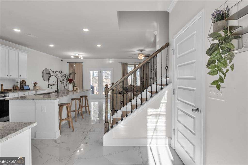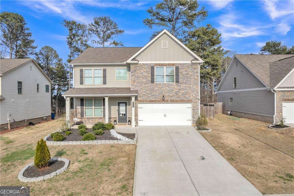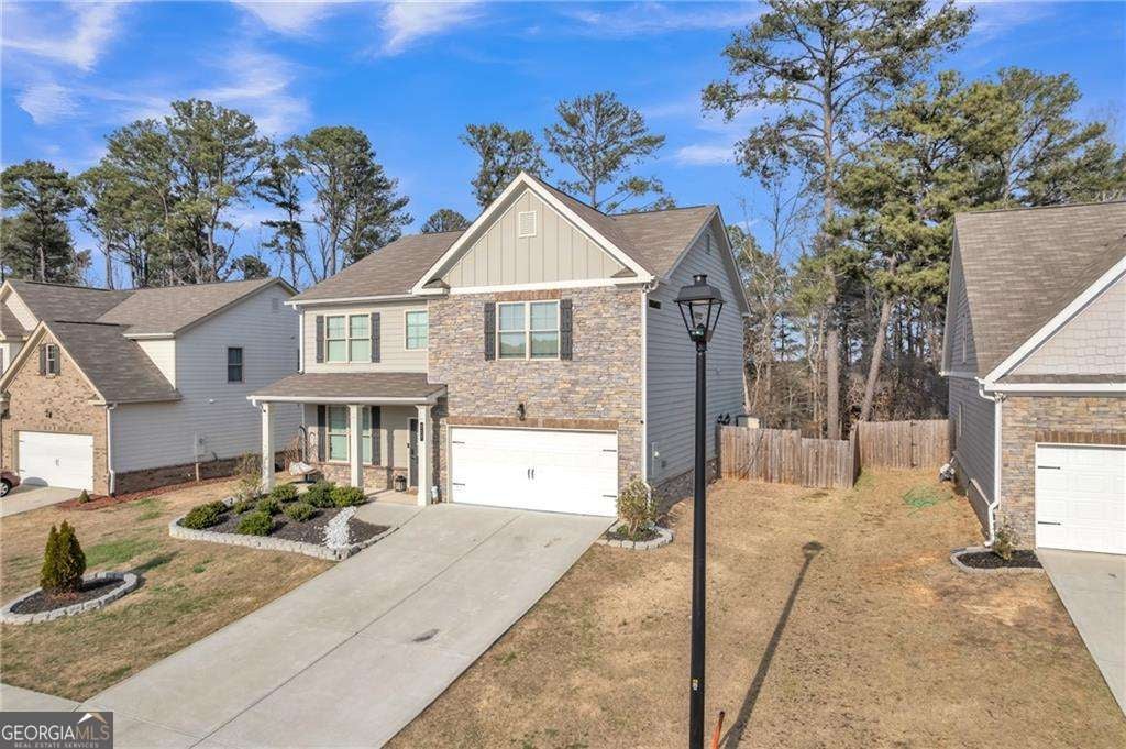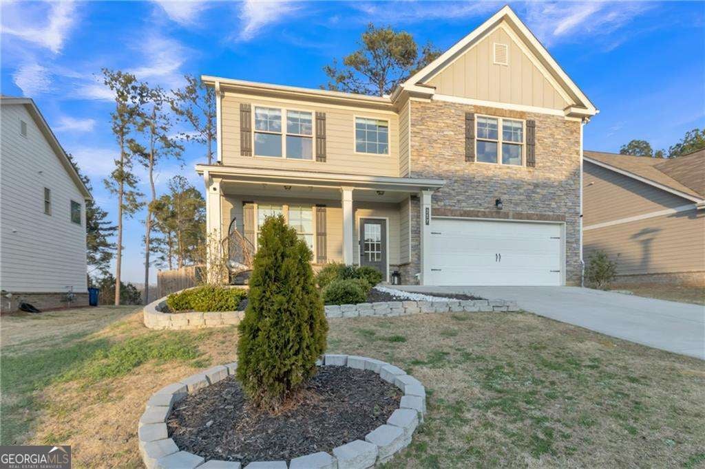 Beautiful and move-in ready home located in the desirable Hinton Farm community in Dacula. This spacious residence features an open-concept layout with elegant tile flooring throughout the main level, abundant natural light, and a modern kitchen with granite countertops, stainless steel appliances, a large island, and walk-in pantry overlooking the inviting living area with fireplace. The main level also offers a formal dining space and a convenient guest bedroom with full bath. A standout architectural feature is the modern staircase with integrated LED lighting, adding a stylish contemporary touch to the home. Upstairs you will find a versatile loft ideal for a media room or office along with a spacious primary suite featuring a large walk-in closet and a spa-like bathroom with double vanity, soaking tub, and separate shower. Enjoy outdoor living with a covered patio and fully fenced backyard, perfect for relaxing or entertaining. The garage features modern hexagon LED lighting, creating a versatile space ideal for a gym, workshop, or showroom-style garage. Residents of Hinton Farm enjoy community amenities including a swimming pool, cabana, playground, sidewalks, and green spaces, and the home is conveniently located near Dacula Park, Highway 316, US-29, shopping, dining, and top Gwinnett County schools, offering the perfect combination of comfort, style, and convenience.