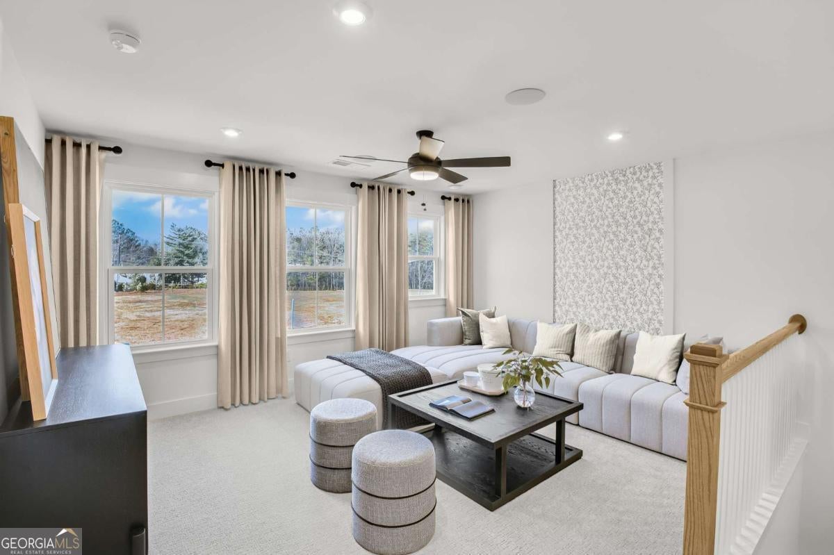 Welcome home to the Riverton at Berkeley Mill by Pulte Homes-one of the only communities in Cumming offering true resort-style amenities, weekly lawn care, and AT&T Fiber internet INCLUDED in the HOA, all just one mile from GA-400. Location matters, and this one checks every box. You're five minutes to Cumming City Center, 10 minutes from Lake Lanier, and perfectly positioned for easy access to Alpharetta, top Forsyth County schools, dining, and everyday conveniences such as Costco, Publix, and other major retailers. Berkeley Mill stands apart from the competition. It's rare to find a neighborhood this close to the interstate that also offers a pool with cabana, playground, firepit, and nearly three miles of scenic walking trails-without the burden of maintaining your own yard. Inside, the Riverton blends classic design with modern functionality. A welcoming foyer leads to a private main-level guest suite with full bath with walk-in shower, ideal for visitors or multi-generational living. At the front of the home, a formal dining room provides flexibility for hosting, while the private library with glass French doors creates the perfect work-from-home space. The open-concept main level is designed for entertaining, featuring a spacious gathering room with fireplace and a gourmet kitchen complete with an oversized island, abundant cabinetry, and bright breakfast area. An oversized sunroom addition off the kitchen floods the home with natural sunlight and expands your living space even further. Upstairs, a generous loft offers additional living space for a media room, playroom, or second lounge area. The owner's suite is thoughtfully tucked away and features a spacious walk-in closet and a spa-inspired bath with double vanities, tiled walk-in shower with bench, linen closet, and private water closet. The second-floor laundry room is located adjacent to the owner's suite. Berkeley Mill offers the full package with its unbeatable location, resort-style amenities, low-maintenance living, and thoughtful floor plans-all in one of Cumming's most desirable communities. Estimated June-July 2026 completion. Ask about our limited time builder promotions with preferred lender!