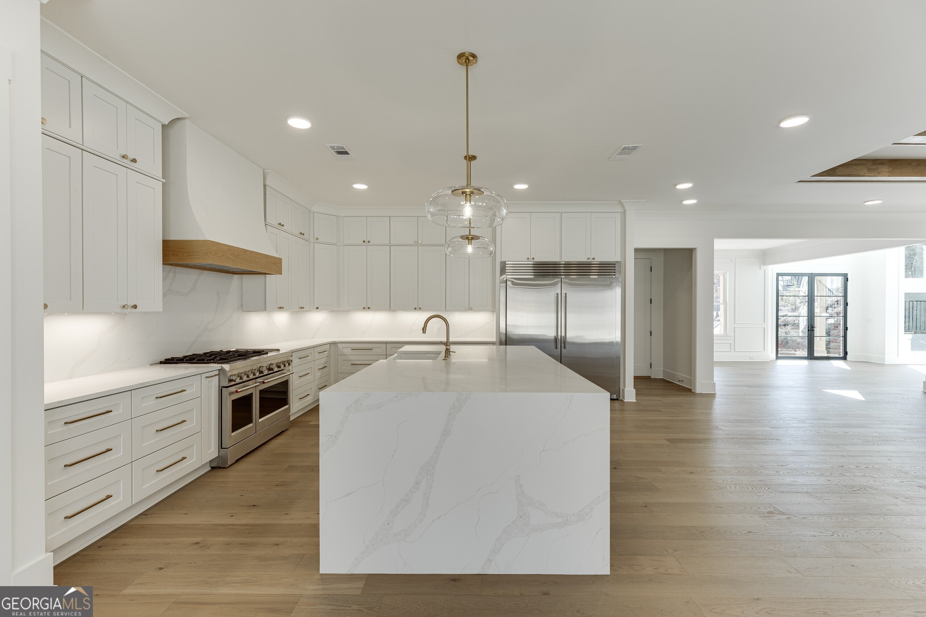 New Construction in the City of Buford! This custom-built home has an open concept floor plan that features a large kitchen with tons of cabinetry to the ceiling, an extended island with waterfall, quartz counter-tops, stainless-steel appliances, including a 48'' slide-in oven/griddle, and a double 32'' refrigerator and freezer units and a spacious keeping/dining area with floor-to-ceiling windows. HUGE walk-in pantry/scullery room (2nd kitchen) with built-in wood shelving, stainless appliances, and Quartz c-tops. Family Room with a 4-panel sliding door, fireplace flanking built-in bookshelf units and stained ceiling beams. Separate open formal dining area. Guest bed with private full bath on main. Private powder room tucked away from the living areas. Mud room with bench seating, storage cubbies and pantry closet off the garage. Hardwood floors on the main level, upstairs hallway, master suite, bath, and closet. The unique grand staircase with hardwood treads allows natural daylight to radiate into the foyer and a unique open stairway to the basement. The upstairs features a master suite with ceiling beams and a luxurious master bath with separate vanities and champagne bronze fixtures, an additional vanity area, tiled shower and free-standing tub share a huge tiled area with transom and floor-to-ceiling windows that are enclosed with frameless glass, access to the laundry room and a HUGE walk-in closet with full size mirrors, loads of wood hanging & adjustable shelving. Three large additional upstairs secondary bedrooms, all with private baths and walk-in closets. Upstairs laundry room filled with cabinetry and sink. Huge 24' x 14' covered rear porch with fireplace and extended grilling area. 10' ceilings & 8' doors on main level, 8' aluminum clad front doors, brick on four sides, upgraded trim details, tankless water heater, deep 3-car garages, and so much more. Please note pictures are of a previous build, so there will be differences from what is actually built.