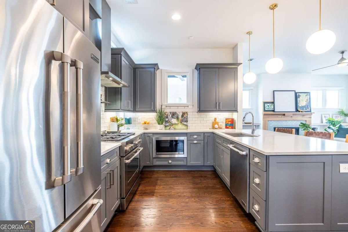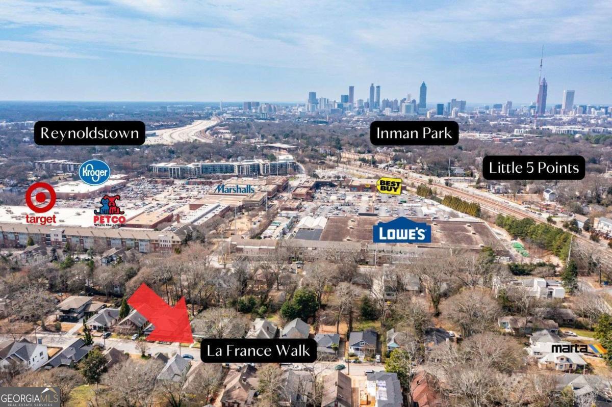 Dream Location-Exceptional Features to Match. On one of Atlanta's most beloved intown streets with the largest front porch on La France Walk-perfect for morning coffee, evening conversations, and true neighborhood porch culture. Just two blocks to Foxtail Coffee and minutes to everything: .03 to MARTA, .03 to Kroger, .02 to Lowe's, .03 to VinATL, and .9 to El Tesoro, with easy access to Candler Park, Kirkwood Village, Inman Park, Madison Yards, and the BeltLine. Highlights include an 8.61 kW solar system with dual Enphase batteries for low power bills and backup power, spray-foam insulation, whole-home water filtration, surge protection, and gutter guards. The JennAir chef's kitchen overlooks living spaces anchored by a gas fireplace with handcrafted Fireclay tile. Additional features include a main-level Murphy bed flex room, custom closets, abundant storage, EV-ready driveway, hot tub with outdoor TV lounge, rainwater tank, and a primary suite with motorized Shade Store blinds and Jacuzzi soaking tub. La France Walk is a pocket community located in Edgewood and was winner of the 2018 Atlanta Regional Commission Development of Excellence Award. Community was self-developed & designed by renowned Kronberg Urban Architects. There is a gathering spot with swings just above the mailboxes as well as a bike pumping station. There is a fenced dog park in the rear of the community. The sweetest house, in a special neighborhood with shops, restaurants and all sorts of festivities nearby.