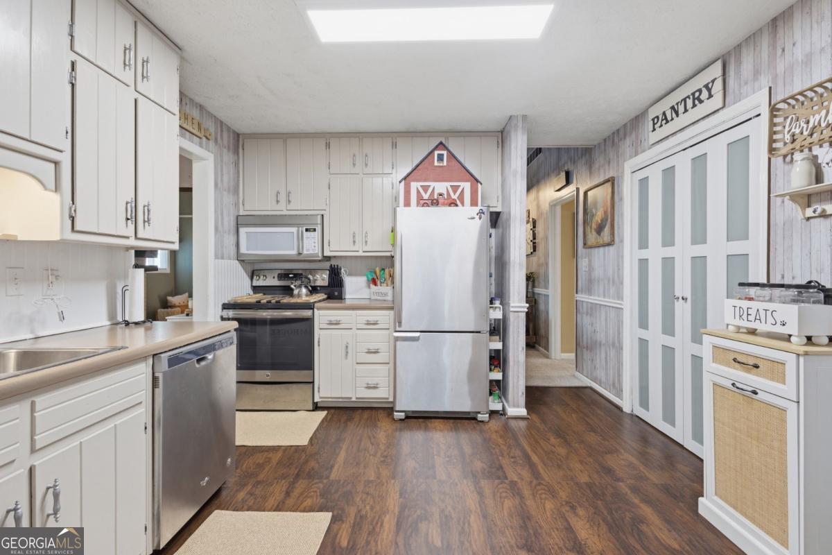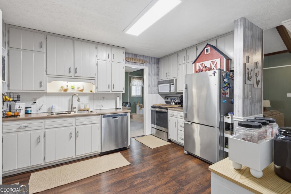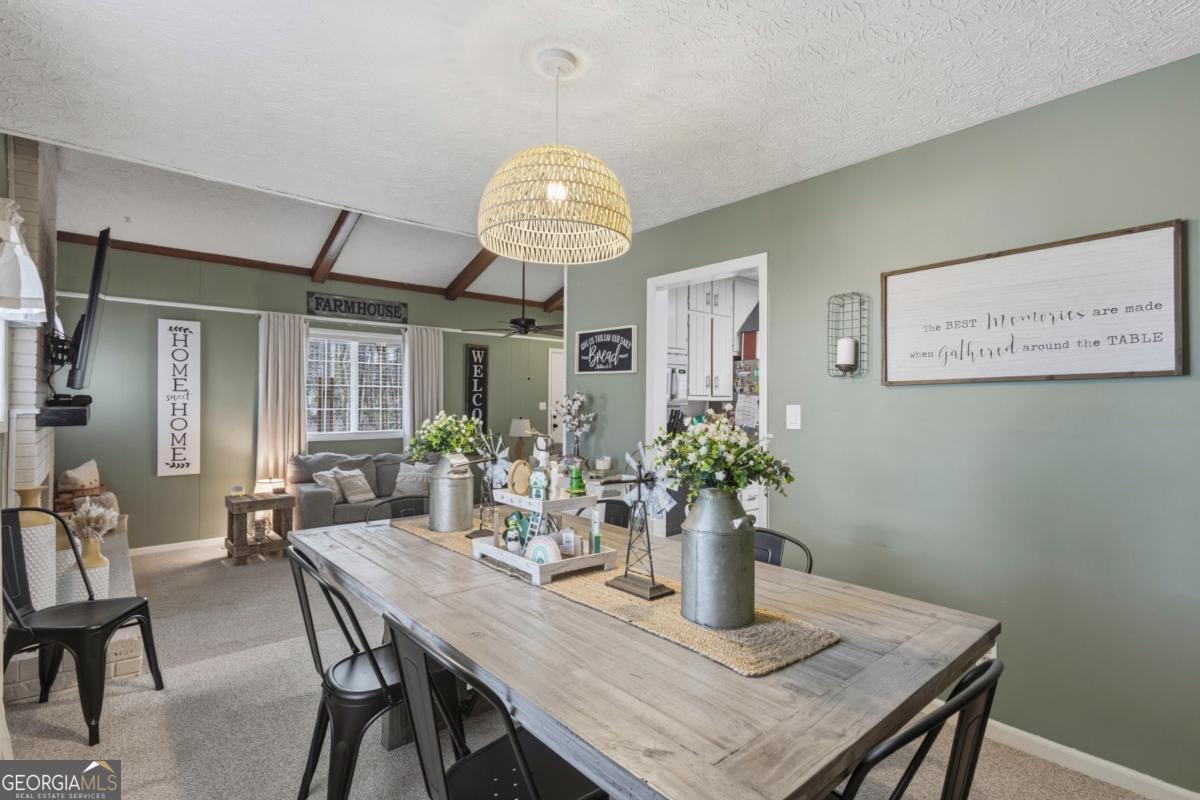 Tucked among mature hardwoods on a large, level lot, 1341 Sommerset offers the rare combination of space, flexibility, and freedom that today's buyers are searching for. With no HOA restrictions, this property provides the ability to truly enjoy your home and land, whether that means extra parking for multiple vehicles, room for a boat or trailer, or simply the freedom to create your own outdoor retreat. The welcoming front porch sets the tone for relaxed living, while the expansive yard and peaceful surroundings create a setting that feels private yet conveniently located near The Mall of GA Exchange with New shopping, and dining plus top Golf, Social Pickle and Andrettis. Inside, the home offers a comfortable and inviting layout highlighted by vaulted ceilings with exposed wood beams and a sunken living room that serves as the heart of the home. Natural light fills the space while the raised dining area and kitchen connect seamlessly for everyday living and entertaining. Toward the rear of the home, a generous flex space provides a standout feature that expands the living area significantly. This versatile room can easily function as a second family room, media room, home office, hobby space, or playroom, giving homeowners the flexibility to adapt the space to their lifestyle. The area also offers abundant built-in storage, making it ideal for keeping seasonal items, household supplies, and hobbies organized while maintaining a clean and functional living environment. Outdoor living is just as appealing, with a spacious backyard that invites gatherings and relaxation. A dedicated patio entertaining area with gazebo provides the perfect place for outdoor dining, grilling, or hosting friends, while the fire pit creates a cozy setting for evenings under the trees. The outdoor shed is included and HAS ELECTRICITY! The large, usable yard offers endless possibilities for gardening, recreation, pets, or simply enjoying the natural surroundings. Combined with major system updates including a newer HVAC system, roof and exterior paint within recent years, and a recently serviced septic system, this property presents a wonderful opportunity for buyers seeking both comfort and lifestyle. Whether you're looking for your first home, a place to grow, or a property with room to spread out and entertain, 1341 Sommerset offers the kind of flexibility and freedom that is increasingly hard to find.