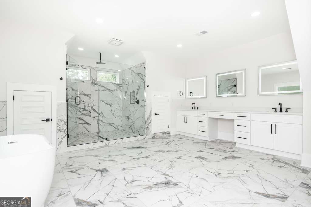 STOP - HAVE A LOOK - Beautiful luxury property. Location is everything... Conveniently located within a mile of I-285, Perimeter Mall, CHOA, Marist School, Murphey Candler Park, and much more. Upon entering the home, you are greeted by a grand foyer that extends past the formal dining room. As you move through the foyer, the space opens into a large family room, dining area, and kitchen, creating an inviting and modern open layout. The home features a HUGE kitchen island with an open floor plan, white oak hardwood floors, and oversized windows that fill the space with natural light. The main level features a separate formal dining room, keeping room, study, chef's kitchen w/ classic custom cabinetry w/ soft close mechanism, under cabinet lighting, pot filler, quartz counters, wine/beverage refrigerator, and high-end SS appliances, an eat-in breakfast area for everyday dining, and is open to the family room. A guest en-suite completes the main floor. An oversized deck makes for perfect indoor/outdoor entertaining space. Also enjoy a fenced private backyard - perfect for relaxation or entertaining. (big enough to add in a pool as well) Upper level includes an expansive media space, wired for surround sound, 3 spacious en-suites w/ walk in closets, & laundry room. The primary suite delivers a dream Walk-in custom his & hers closet, & humongous bathroom with a rain shower, separate soak in tub, and dual vanities. LED mirrors in all bathrooms. Additional storage in the master bath. This one will not last long. Come and take a look.