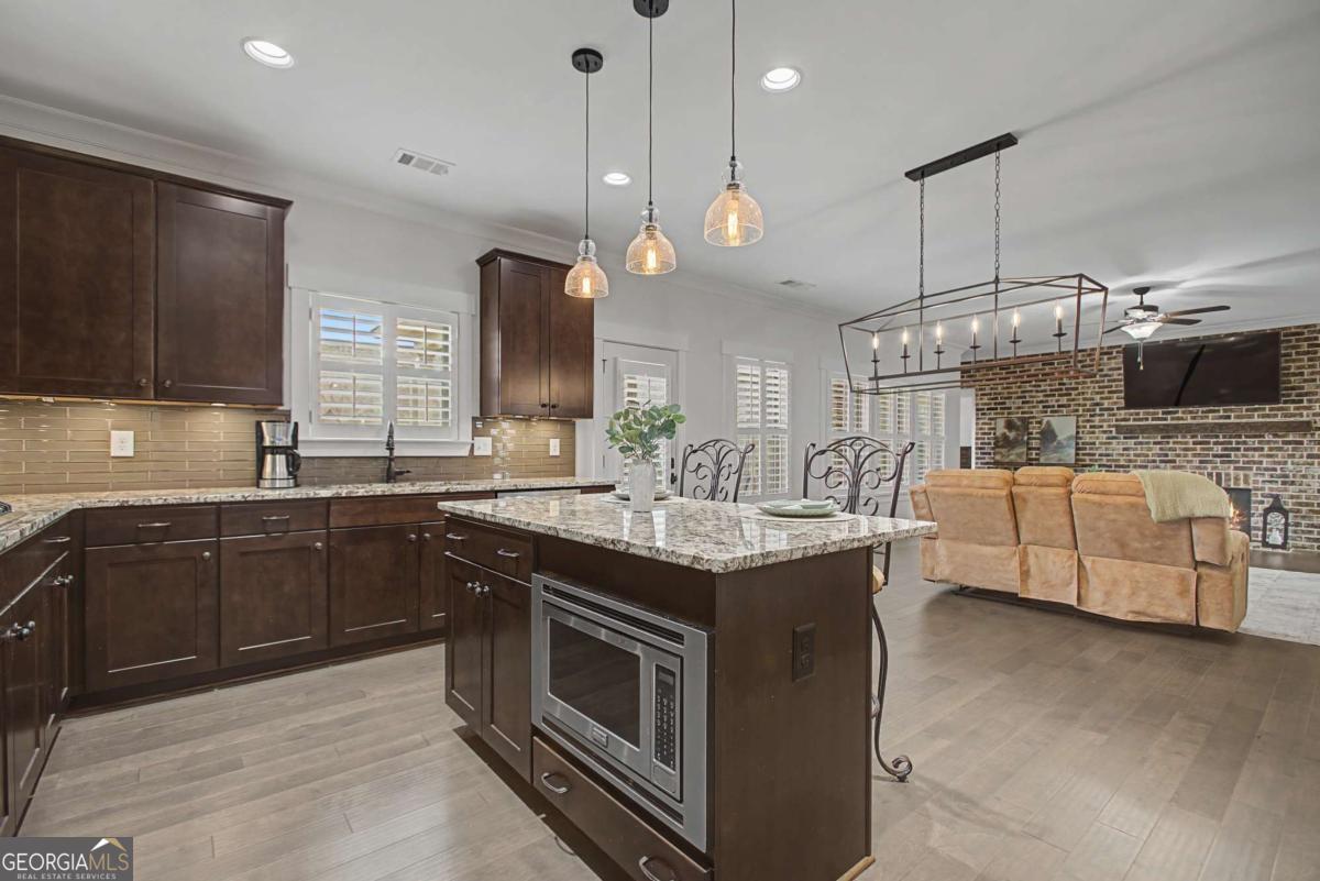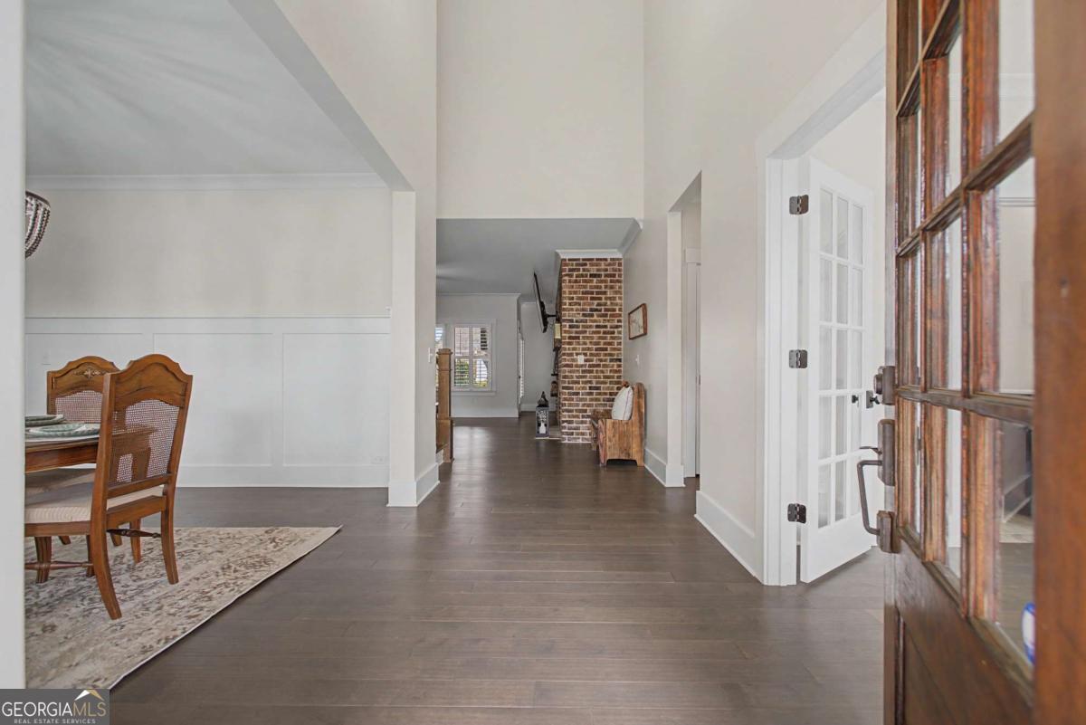 Better Than Brand New! This gorgeous home with Owner's Suite on the main level is located in sought after Traditions Of Braselton Golf Community! This wonderful home includes a total of 4 Spacious Bedrooms, 3.5 Bathrooms, Large Bonus Room, Fabulous Interior Plantation Shutters and Craftsman Moldings. Step onto the inviting front porch and through the front door into the impressive foyer with soaring ceiling and large chandelier. A lovely Guest Bedroom with double French doors, full bath and walk-in closet is on the right and the elegant Dining Room with chandelier is on the left. Foyer flows seamlessly into the Open Concept living area that includes a large Family Room with a brick wall fireplace, wooden mantel/shelving and Chef's Kitchen with island/breakfast bar and pendant lighting. Kitchen also includes a dining area with chandelier, stainless steel appliances, double ovens, microwave oven, gas cooktop, stylish cabinet vent hood, tile backsplash, under counter lighting, granite counters and walk-in pantry. Sizable Owner's Bedroom Suite with tray ceiling provides a peaceful retreat graciously designed for comfort, style and convenience. Owner's Bathroom includes a luxurious free standing soaking tub, 2 separate vanities, tile flooring/shower and amazing custom walk-in closet. The Laundry Room including cabinets for storage and charming 1/2 Bath are also located on the main floor. Upper level includes 2 generous size Bedrooms, full Bath and huge Bonus/flex room that could be used as a Bedroom, Office, Playroom, Mediaroom etc. Enjoy spending time on the back covered porch that includes a rock fireplace with raised hearth, tie back curtains, beadboard ceiling with fan and epoxy floor with view of the perfectly landscaped backyard. This property includes an irrigation system and is on a corner lot with a curved driveway that would allow for the owner to enter/exit from the garage onto the main road or road with cul-de-sac. This home is in a great location in the neighborhood being a short drive to the Country Club amenities that include a Clubhouse, Restaurant, Golf Course, Junior Olympic Size Pool, Splash Zone, Fitness Center and So Much More! Located close to Shopping, Restaurants, Pharmacy And I-85 & I985. You don't want to miss the opportunity to make this exceptional home your own!
