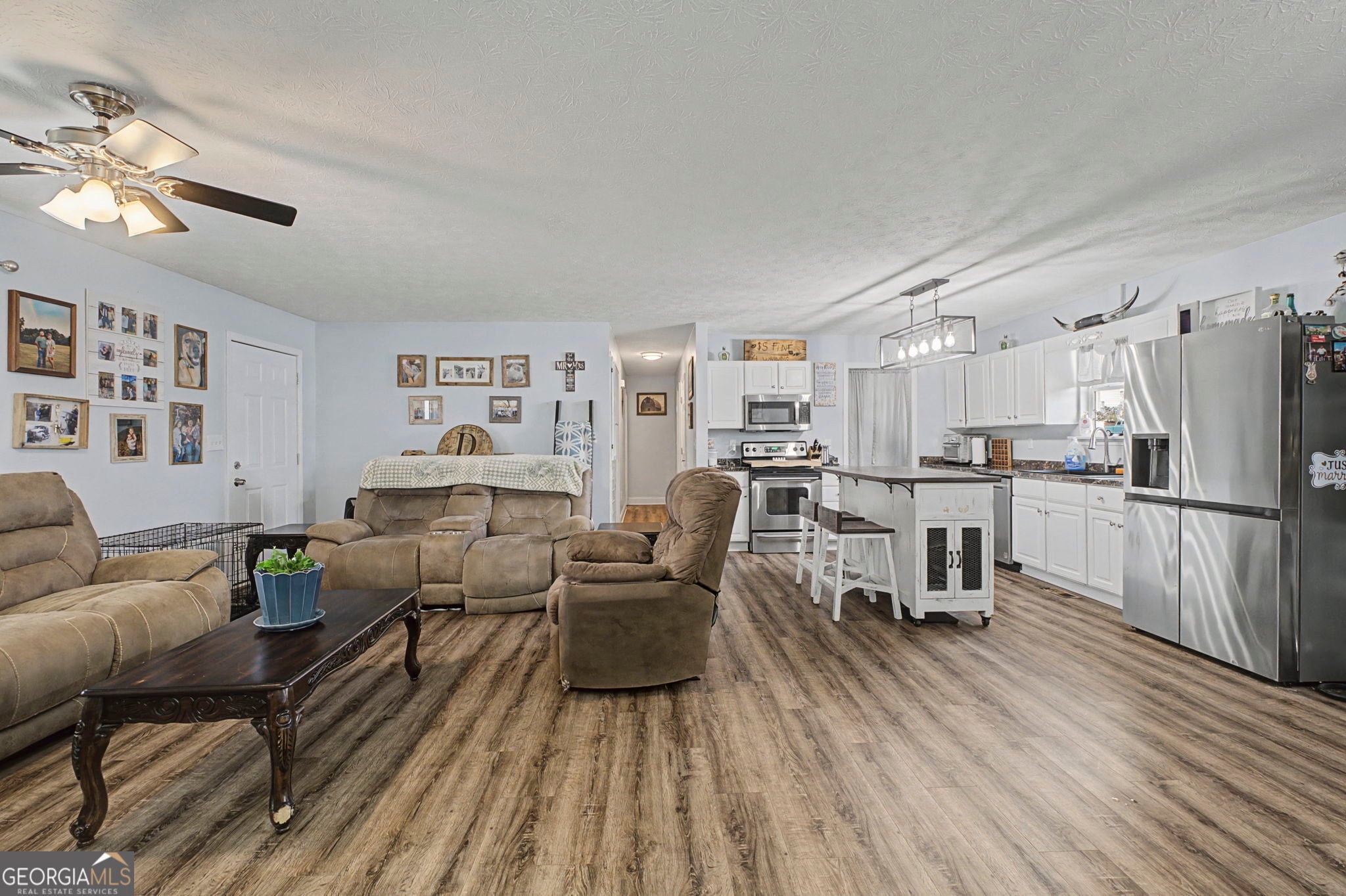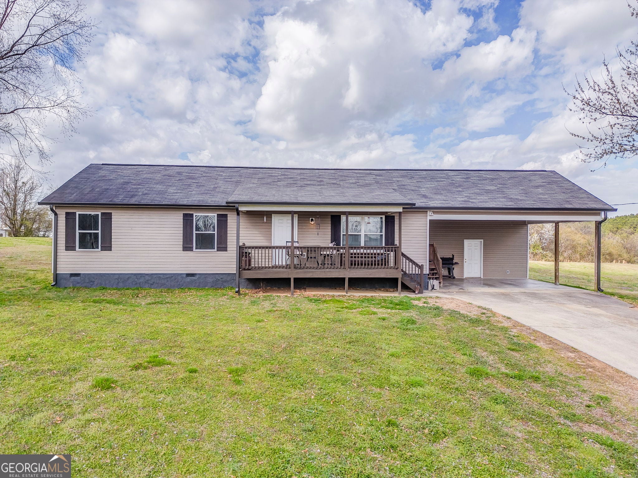 This move-in ready 2-bedroom, 2-bathroom home features an inviting open-concept layout and is tucked away in a quiet cul-de-sac on 2.6 acres, offering both privacy and room to enjoy. The spacious primary suite includes a beautiful tile shower, while the kitchen offers plenty of counter space and cabinet storage. Enjoy relaxing mornings on the rocking chair front porch or entertaining on the new back deck. A carport with ample storage space provides room for tools, equipment, or hobbies. The large yard offers plenty of space to spread out and enjoy the outdoors, complete with an outbuilding and the perfect garden spot. Conveniently located in a rapidly growing area near Buc-ee's and Interstate 75, this property combines country-style living with easy access to shopping, dining, and travel routes. A great opportunity in a fantastic location!