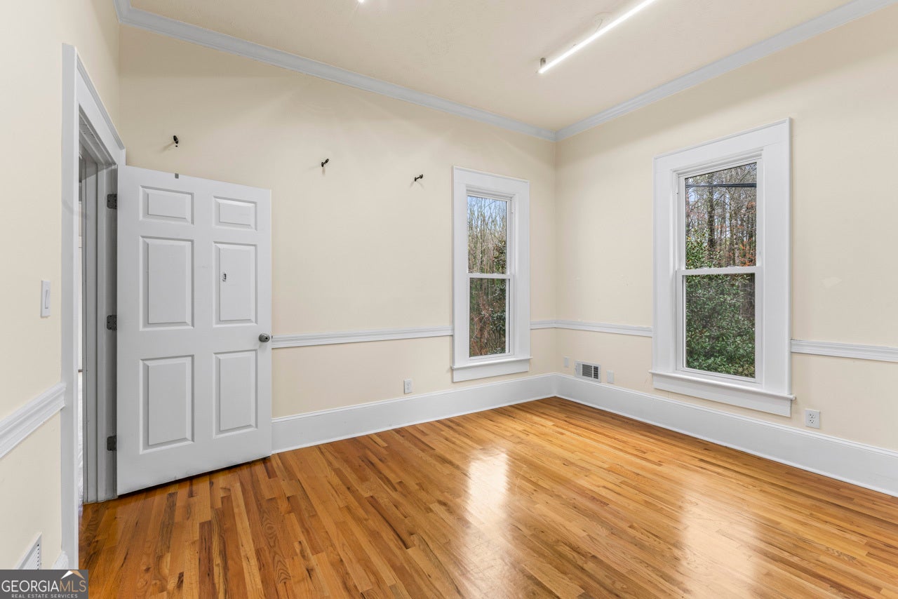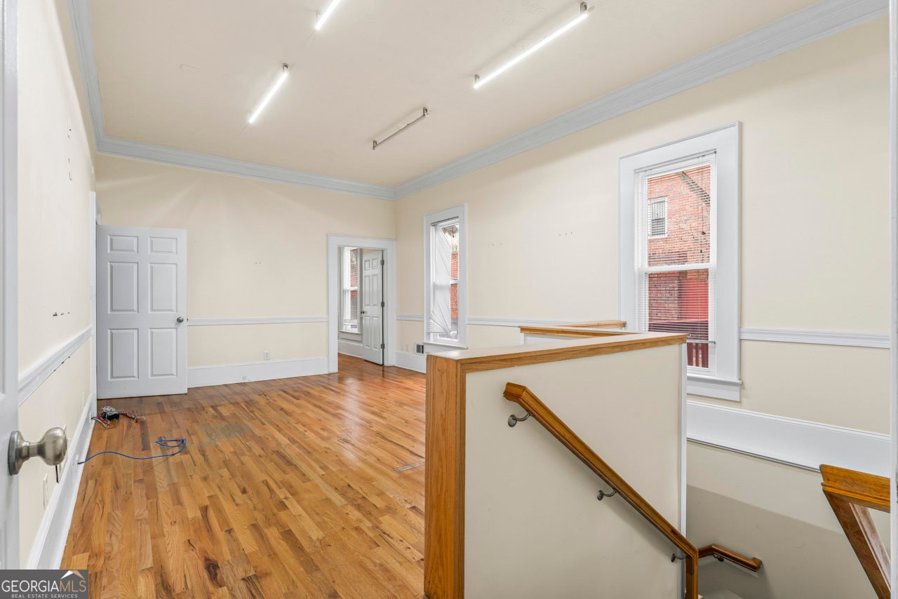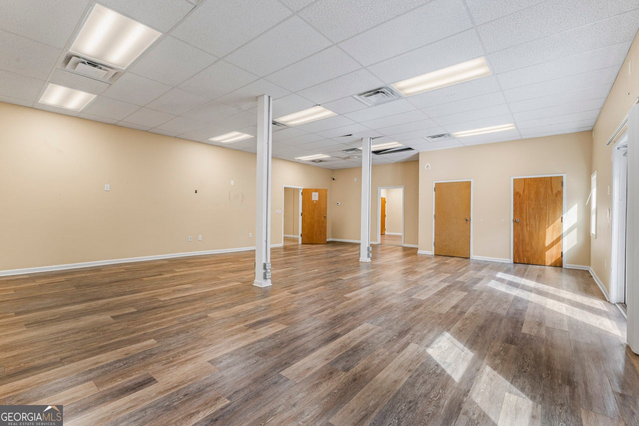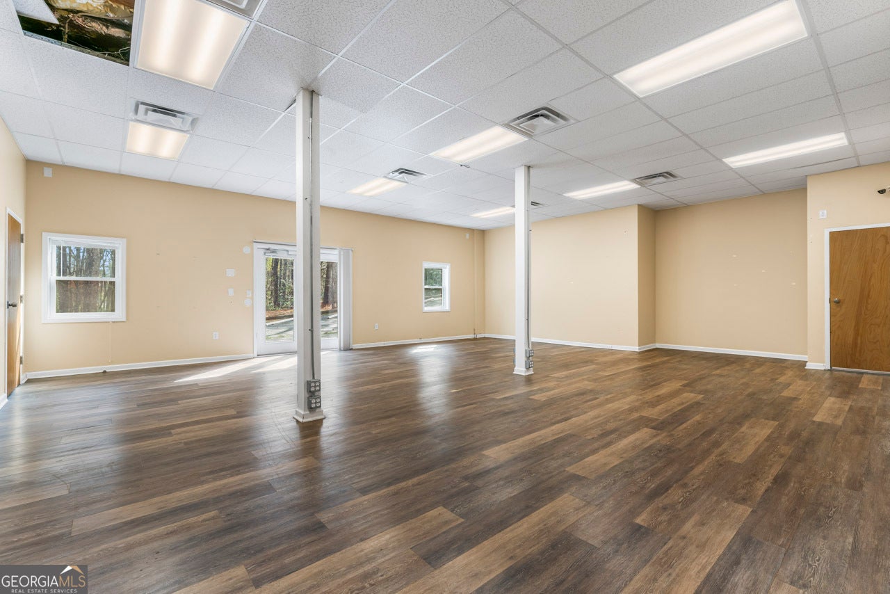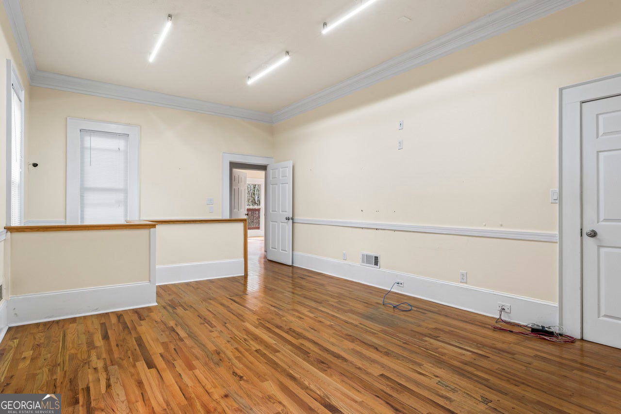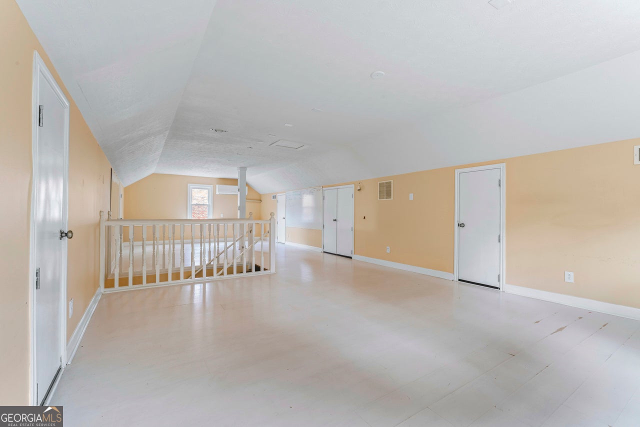 This building is a wonderful opportunity for any professional or investor to be in the heart of it all! Perfect for any large professional office that needs space to work and connection to the outdoors, especially with spring on the way! This four-story Brick/Frame building has approximately 7,700 total square feet spread across 3 stories and a full finished lower level w private entrance and a full usable attic. The main level features four large private offices, two ADA bathrooms, staircase leading upstairs and a kitchen. To the rear, a 16x20 conference room with glass walls on two sides allows plenty of natural light and doors opening up to the large walkout deck. The second floor offers a primary executive office (or secondary conference room) highlighted by an arched ceiling crafted from red cedar tongue-and-groove planks. This level also includes four additional private offices, a private bathroom. Elegant Built-in cabinetry and shelving in the secondary executive office. The top floor provides a versatile, open-concept space configured as a bullpen or as a large meeting area. The ground floor is equally impressive, featuring a 25x45 open classroom or collaborative office space with a separate, private entry, two ADA bathrooms, as well as an adjacent private office with a patio and direct access to the parking lot. Positioned near I-85, Highway 78, and I-285, the property offers privacy while maintaining convenient access to major transit. Don't miss your opportunity to be in the middle of it all, while being away from the noise of traffic.