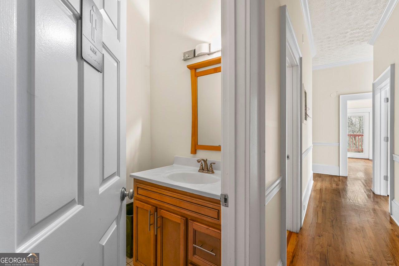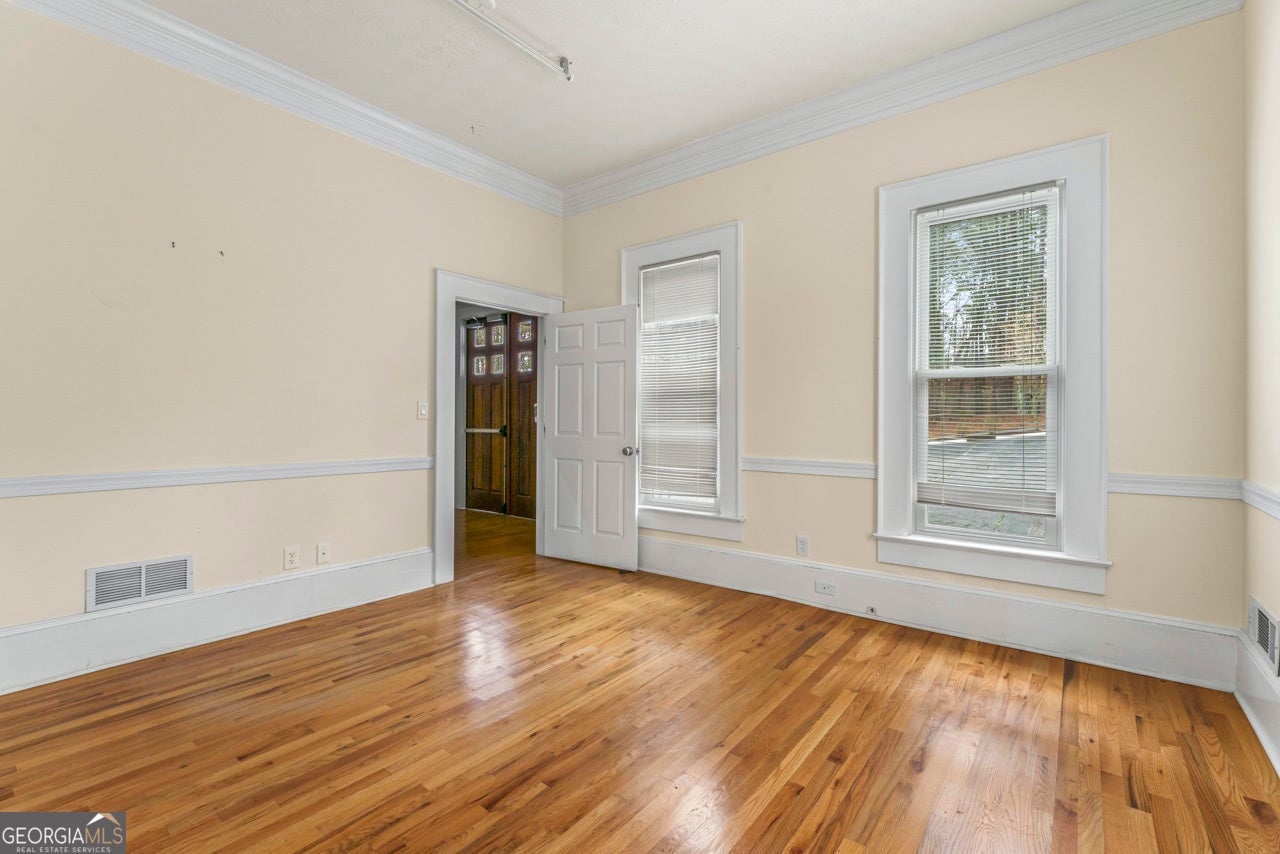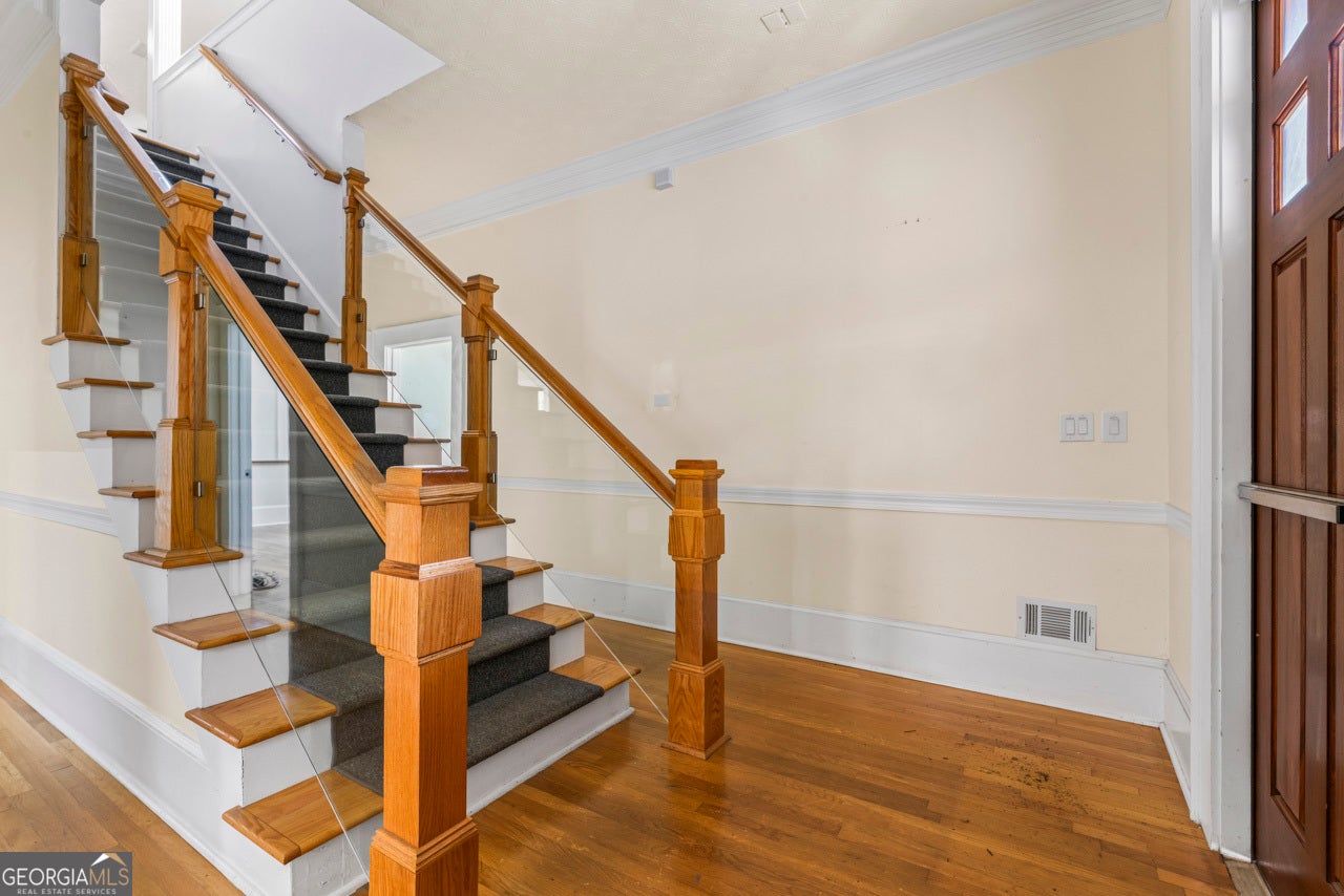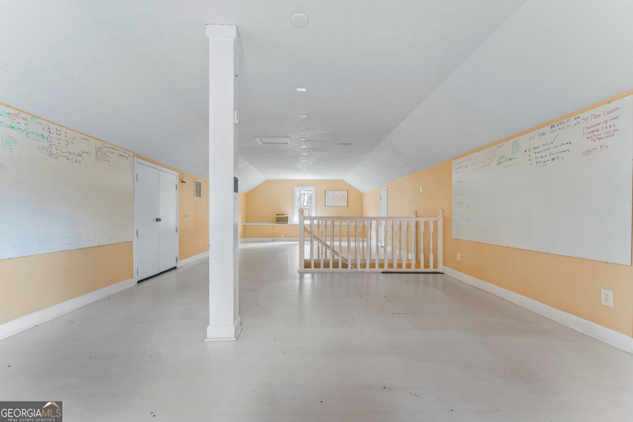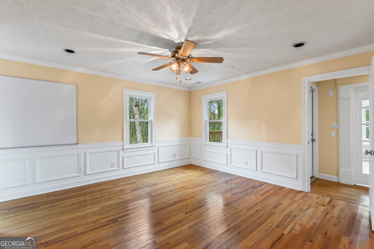 This building is a wonderful opportunity for any professional or investor to be in the heart of it all! Perfect for any large professional office that needs space to work and connection to the outdoors, especially with spring on the way! This four-story Brick/Frame building has approximately 7,700 total square feet spread across 3 stories and a full finished lower level w private entrance and a full usable attic. The main level features four large private offices, two ADA bathrooms, staircase leading upstairs and a kitchen. To the rear, a 16x20 conference room with glass walls on two sides allows plenty of natural light and doors opening up to the large walkout deck. The second floor offers a primary executive office (or secondary conference room) highlighted by an arched ceiling crafted from red cedar tongue-and-groove planks. This level also includes four additional private offices, a private bathroom. Elegant Built-in cabinetry and shelving in the secondary executive office. The top floor provides a versatile, open-concept space configured as a bullpen or as a large meeting area. The ground floor is equally impressive, featuring a 25x45 open classroom or collaborative office space with a separate, private entry, two ADA bathrooms, as well as an adjacent private office with a patio and direct access to the parking lot. Positioned near I-85, Highway 78, and I-285, the property offers privacy while maintaining convenient access to major transit. Don't miss your opportunity to be in the middle of it all, while being away from the noise of traffic.