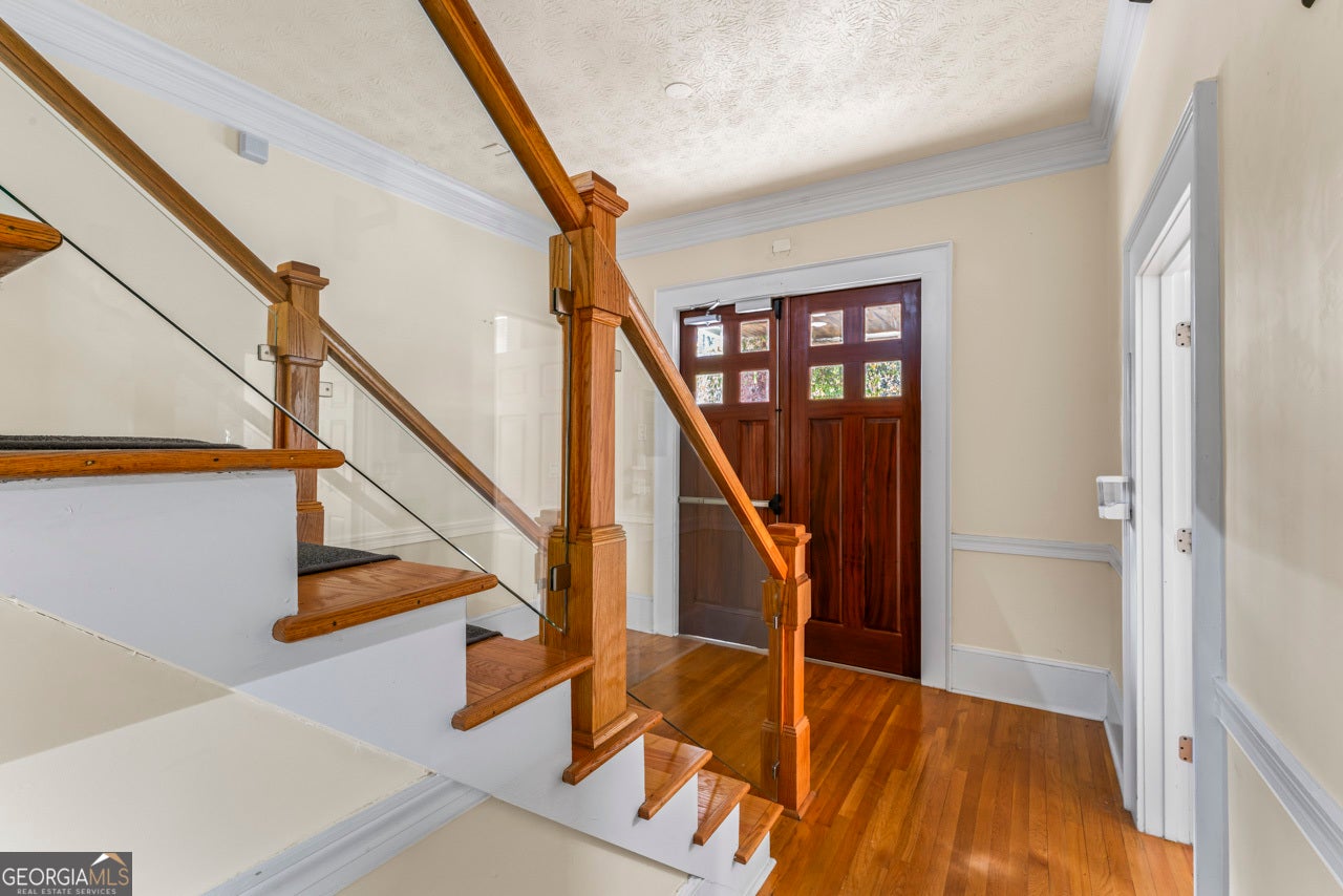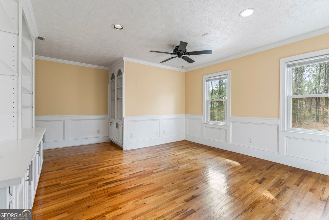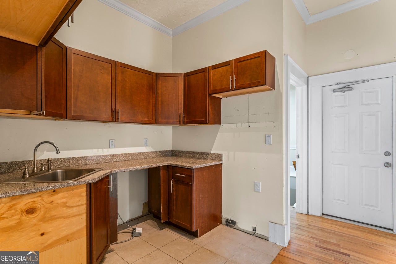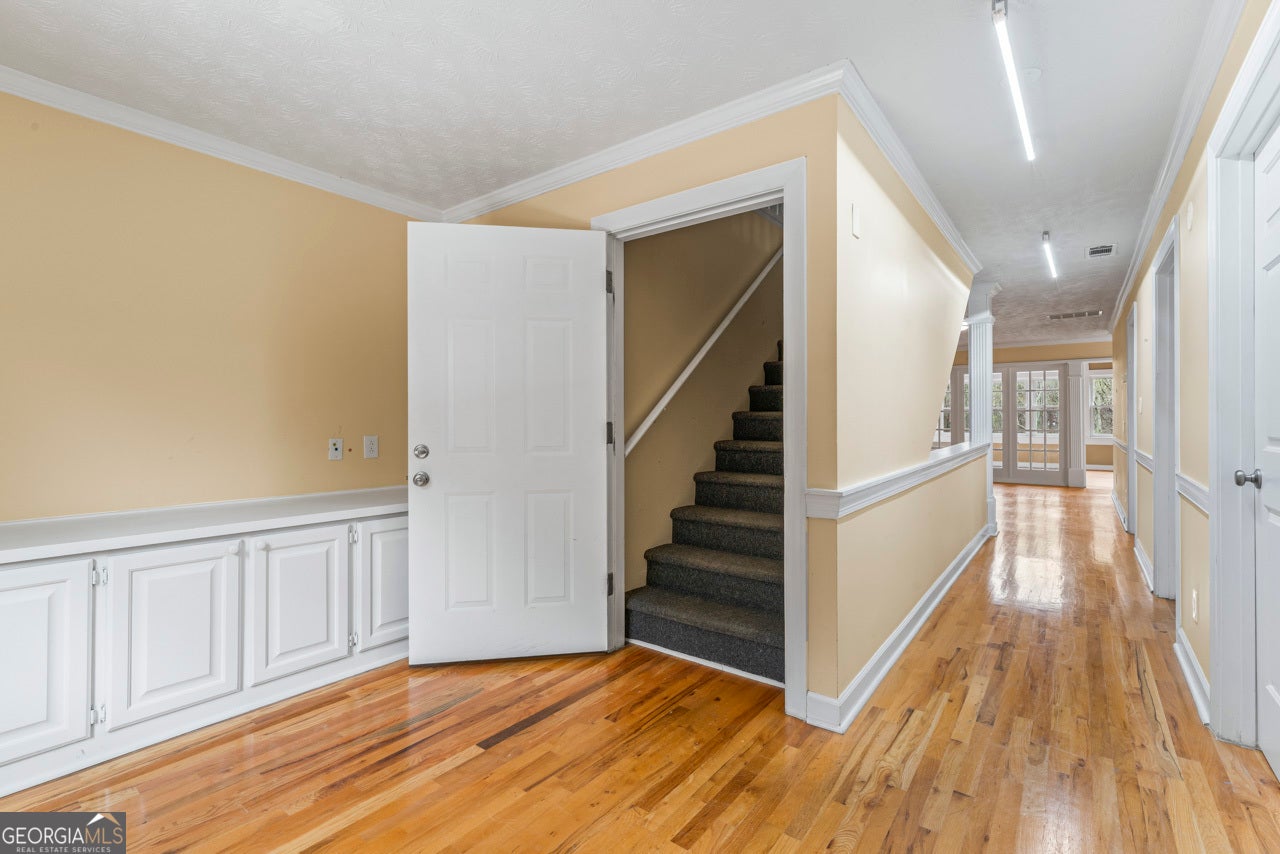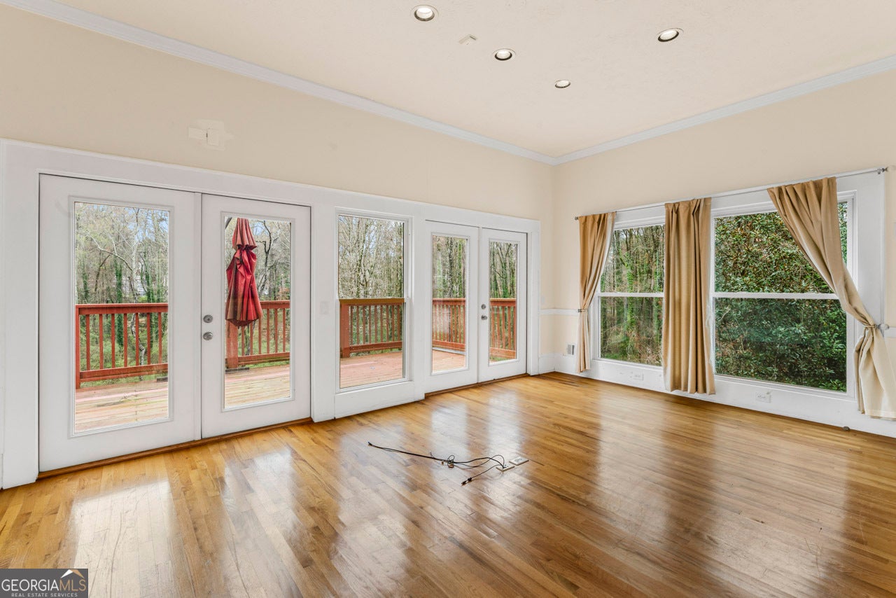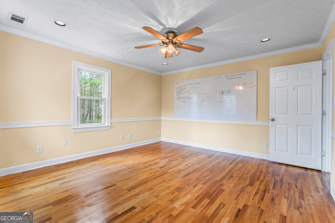 This building is a wonderful opportunity for any professional or investor to be in the heart of it all! Perfect for any large professional office that needs space to work and connection to the outdoors, especially with spring on the way! This four-story Brick/Frame building has approximately 7,700 total square feet spread across 3 stories and a full finished lower level w private entrance and a full usable attic. The main level features four large private offices, two ADA bathrooms, staircase leading upstairs and a kitchen. To the rear, a 16x20 conference room with glass walls on two sides allows plenty of natural light and doors opening up to the large walkout deck. The second floor offers a primary executive office (or secondary conference room) highlighted by an arched ceiling crafted from red cedar tongue-and-groove planks. This level also includes four additional private offices, a private bathroom. Elegant Built-in cabinetry and shelving in the secondary executive office. The top floor provides a versatile, open-concept space configured as a bullpen or as a large meeting area. The ground floor is equally impressive, featuring a 25x45 open classroom or collaborative office space with a separate, private entry, two ADA bathrooms, as well as an adjacent private office with a patio and direct access to the parking lot. Positioned near I-85, Highway 78, and I-285, the property offers privacy while maintaining convenient access to major transit. Don't miss your opportunity to be in the middle of it all, while being away from the noise of traffic.