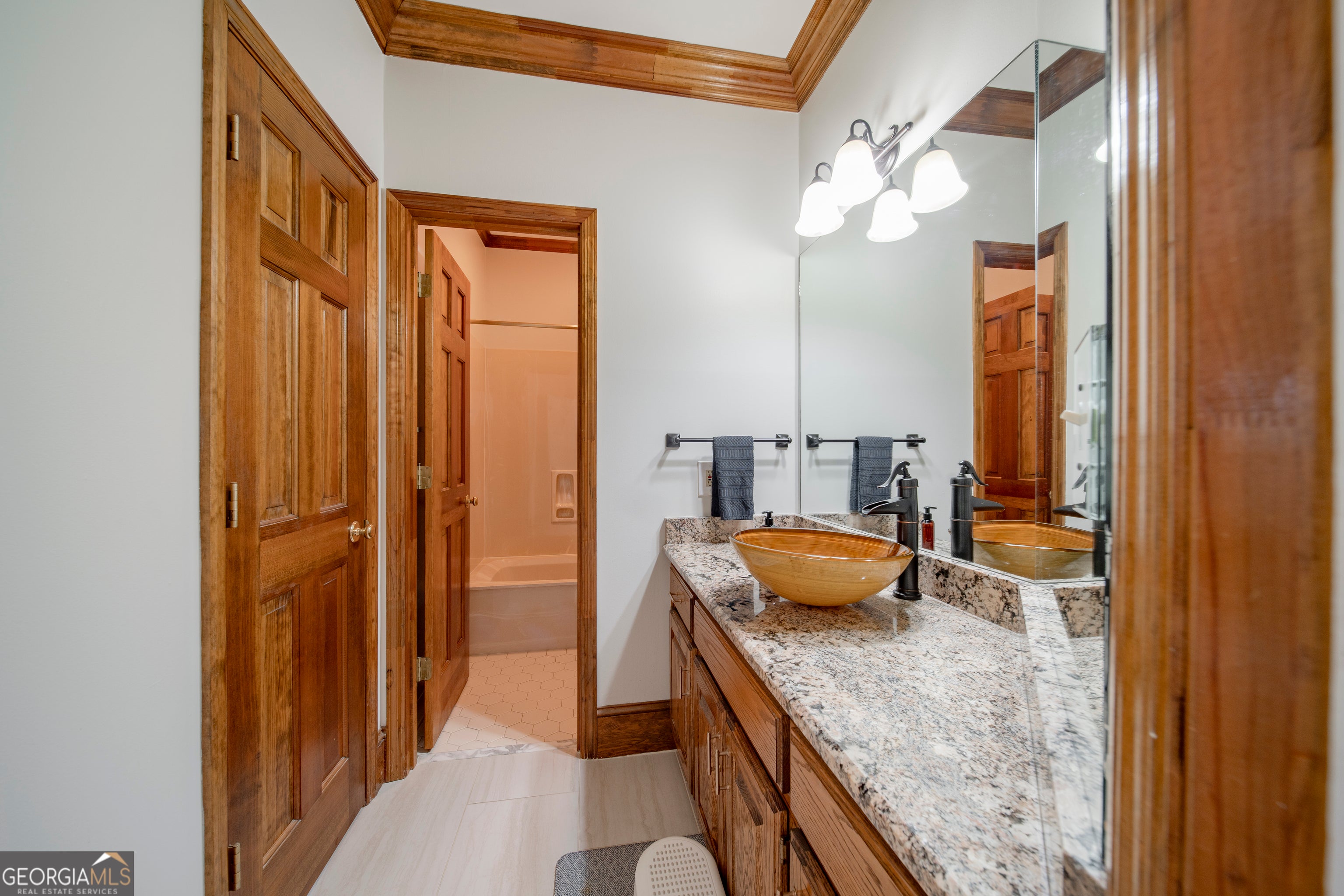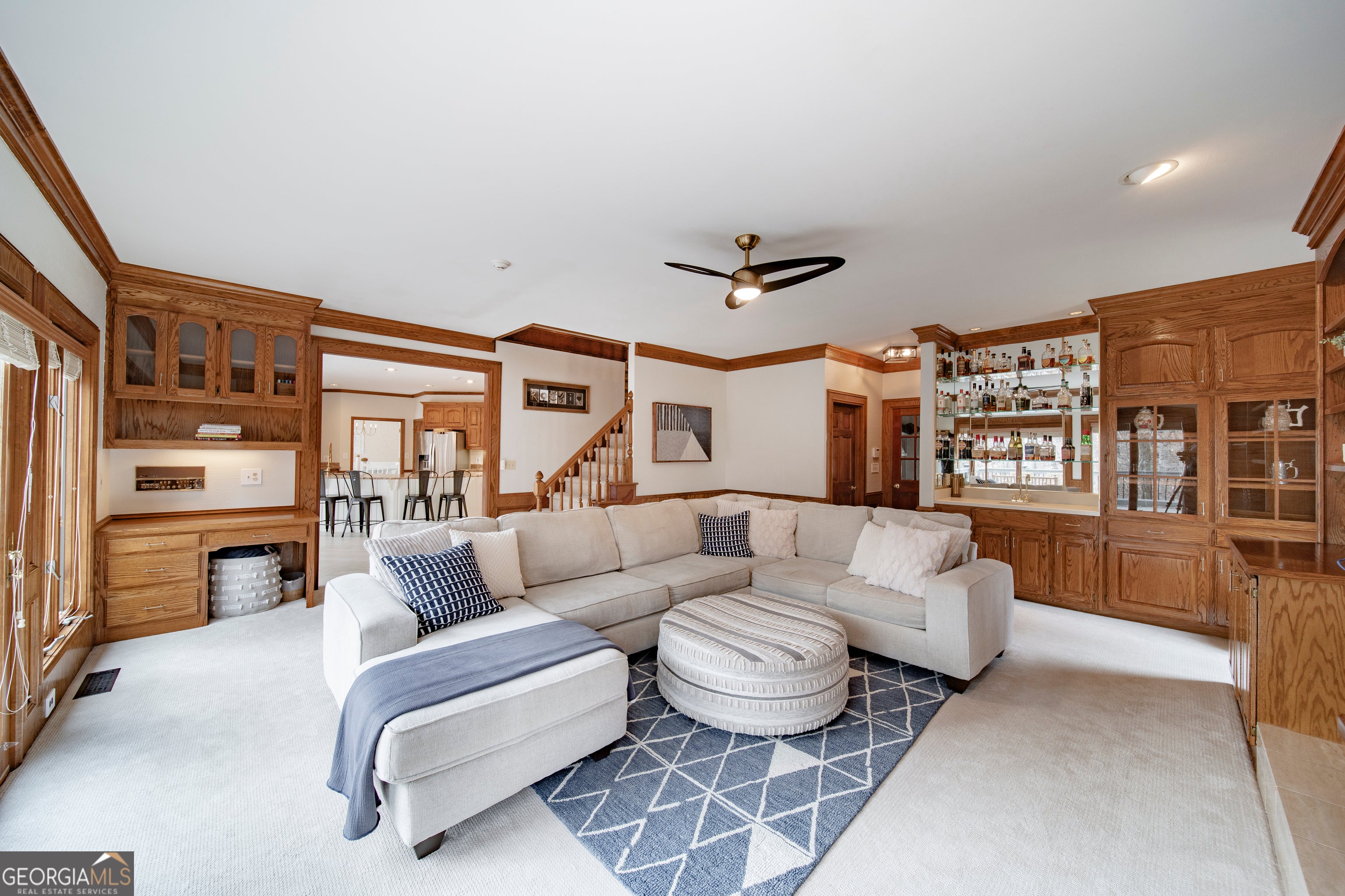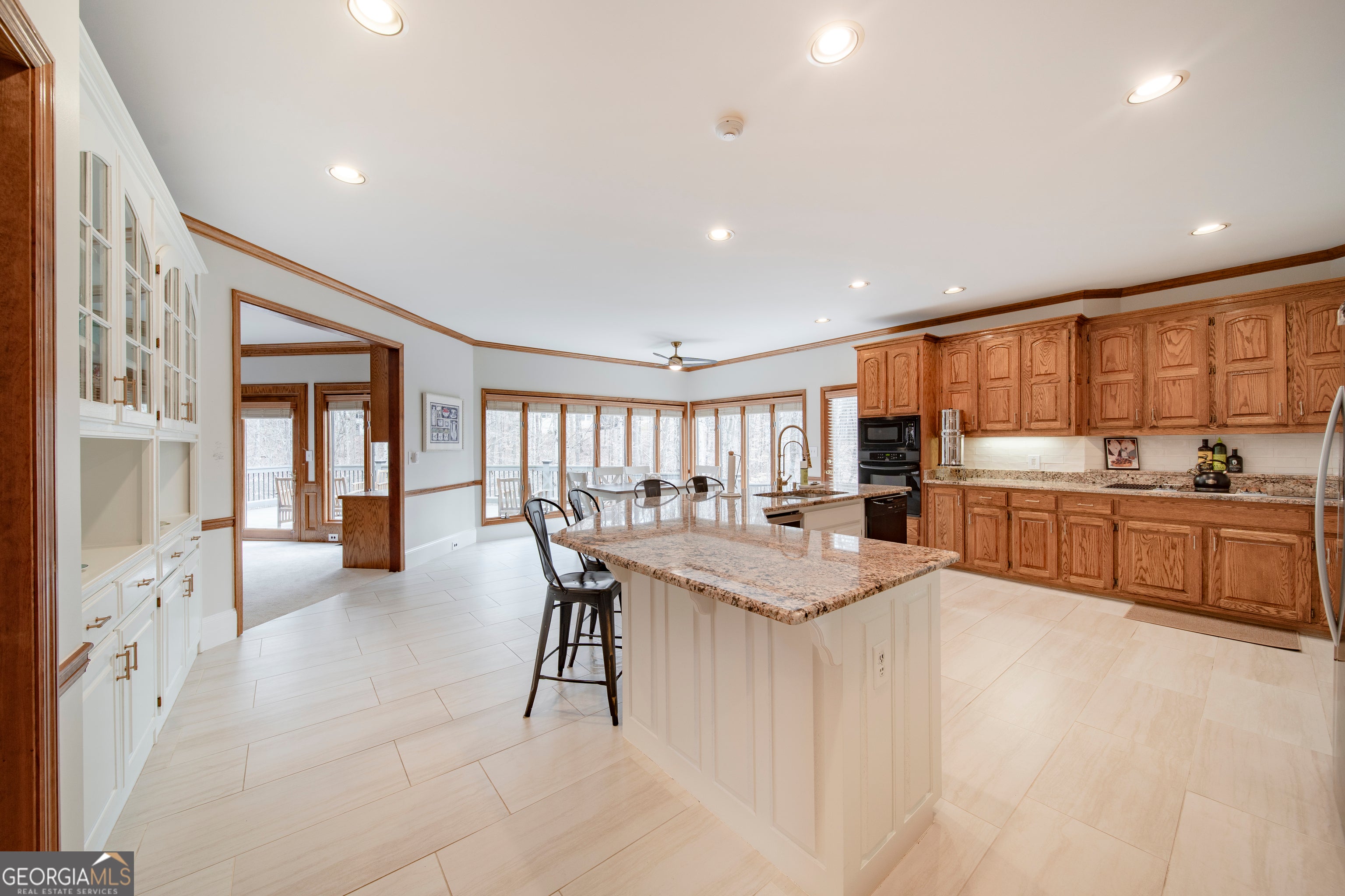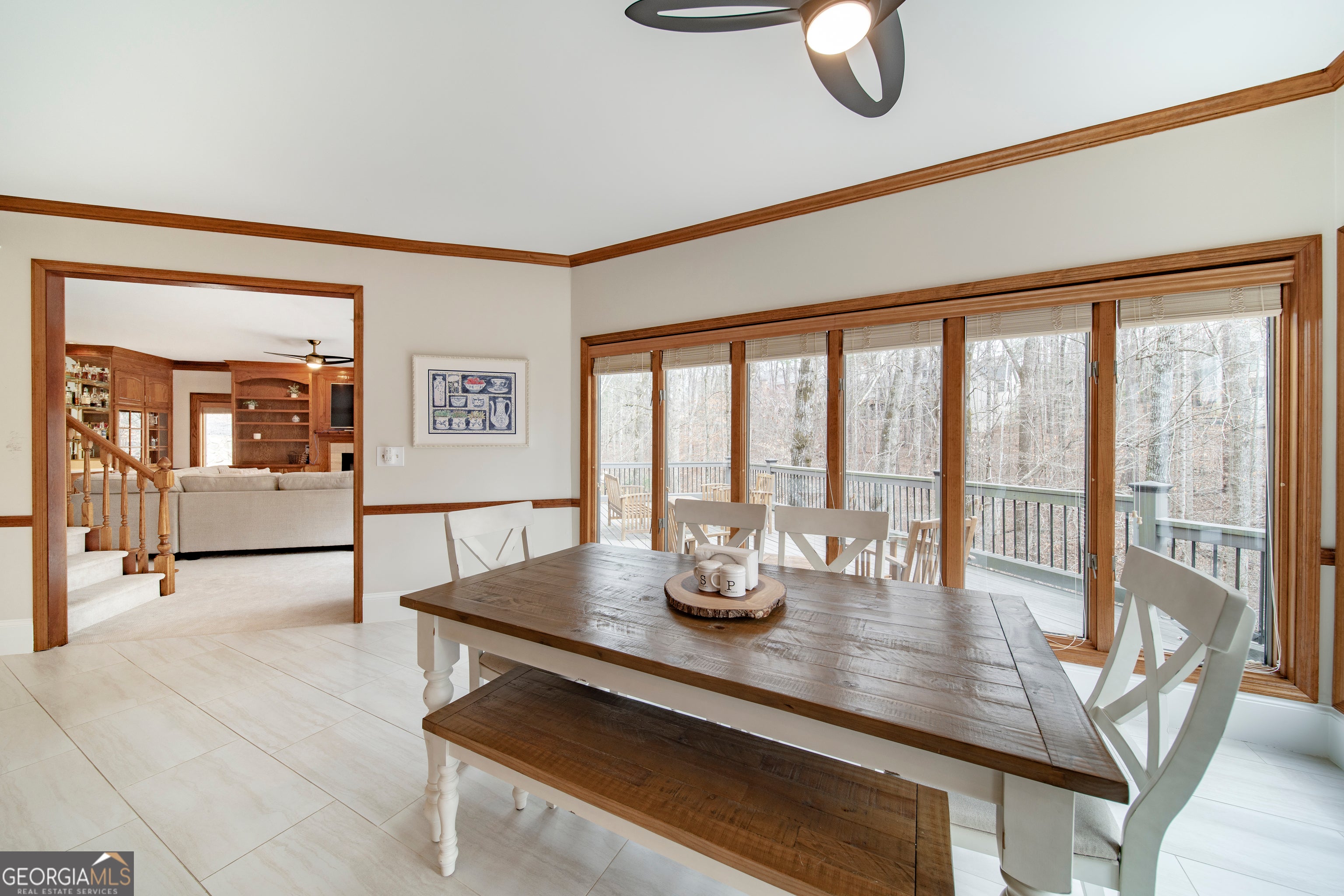 Tucked within the sought-after Estates section of Horseshoe Bend, this beautifully maintained residence blends timeless architecture with thoughtful modern updates, creating a home that feels both refined and welcoming. Situated on a private 3/4-acre wooded lot, the property offers exceptional separation from neighboring homes and serene, retreat-like views from the expansive rear windows and deck. A grand two-story foyer and sweeping staircase set the tone upon entry, opening to elegant formal living and dining spaces designed for effortless entertaining. The heart of the home is the spacious kitchen, featuring a large granite island, generous cabinetry, and a sun-filled breakfast area surrounded by oversized windows overlooking the peaceful backyard. The kitchen flows seamlessly into the inviting family room with custom built-ins, cozy fireplace, and wet bar ideal for entertaining also featured on the main floor is the perfect home office or guest bedroom with ensuite. Upstairs, the oversized primary suite offers a private retreat with dual vanities, a whirlpool tub, and separate shower. Secondary bedrooms are generously sized, including one with an ensuite bath, two connected by a Jack-and-Jill bath, and a unique flex space perfect for a reading nook, playroom, or study area. An additional bonus room with walk-in closet provides the flexibility for a potential fifth upstairs bedroom, office, or media space. The finished terrace level expands the home's versatility, featuring stained concrete floors, a large entertaining area, additional bedroom, full bath, home gym, and extensive storage. Recent improvements totaling over $100,000 include a newer roof, updated flooring, fresh paint, lighting, fixtures and more enhancing both the beauty and functionality of the home while preserving its solid craftsmanship. Step outside onto the expansive decks where the wooded setting creates a peaceful, almost cabin-like escape, making outdoor living and entertaining effortless year-round. Beyond the decks, the sloped wooded backyard and creek create a stunning natural backdrop, offering the opportunity to expand usable outdoor space or simply enjoy the beauty and privacy of nature at its finest. Located within the prestigious Horseshoe Bend community, residents enjoy optional membership to the renowned Horseshoe Bend Country Club, offering championship golf, tennis, swim, fitness facilities, dining, and a vibrant social calendar all just minutes from historic downtown Roswell, top schools, parks, and shopping.