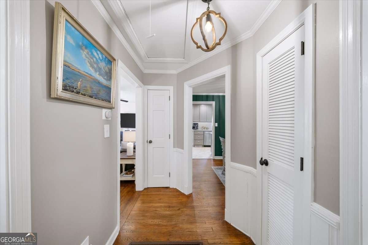 Tucked away on a quiet cul-de-sac in a prime Smyrna location near Smyrna Village, this charming home blends comfort, convenience, and beautifully updated spaces throughout. A welcoming front porch offers the perfect spot to enjoy peaceful neighborhood views. Inside, the cozy living area features beautiful hardwood floors that flow seamlessly into the rest of the home. The completely updated kitchen is both spacious and stylish, boasting sleek stainless steel appliances, a farmhouse sink, and plenty of room to prepare your favorite meals. A separate dining area makes hosting and everyday living easy. The primary bedroom provides a relaxing retreat with an ensuite bathroom featuring a custom double vanity and a glass-enclosed shower. Secondary bedrooms are generously sized and versatile-perfect for guests, a home office, or creative space. The mudroom offers abundant storage, helping keep everything organized and tucked away. Step outside to an expansive, private fenced backyard ideal for quiet afternoons, cookouts, and entertaining. The detached garage doubles perfectly as a workshop or a man cave, offering great space for hobbies, projects, or additional storage.Thoughtfully upgraded with a smart home security system, the property includes three floodlight cameras, a Ring doorbell, and a Nest thermostat with a central docking station that connects and manages the system seamlessly. Paired with a new HVAC system and updates throughout, this home is truly move-in ready.
