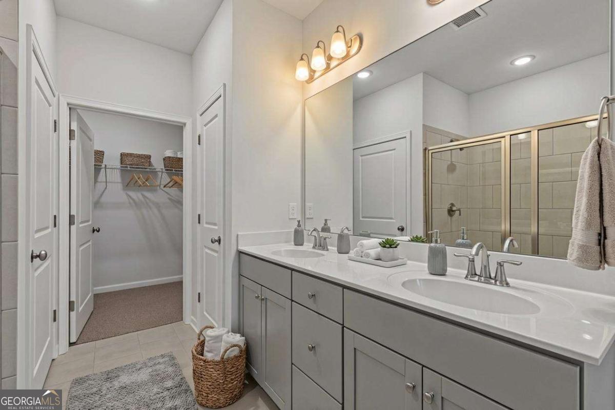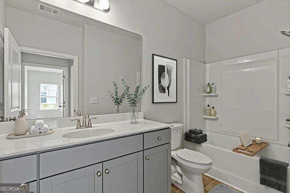 Welcome to Creekwood by Paran Homes, a gated 55+ community in Powder Springs, Cobb County. The Augusta plan at 3908 Shelleydale Dr is an attached ranch villa featuring a 2-car garage with extra storage, a covered front porch, and a screened porch-perfect for morning coffee or relaxing throughout the day. The open and airy floor plan includes upgraded cabinets, stainless steel appliances, laminate flooring, 9' ceilings with crown molding, a large granite island, and a separate eat-in area. The spacious primary suite offers a tray ceiling, room for an oversized king bed, and ample furniture space. The primary bath features a stepless tiled shower with bench, walk-in closet, linen closet, private water closet, and dual vanities. Two secondary bedrooms on the opposite side of the home share a full bath with gentleman's-height vanity and tub/shower combo. Conveniently located near Publix, Home Depot, pharmacies, restaurants, and the Silver Comet Trail. Builder incentives available with preferred lender. Ready to close!
